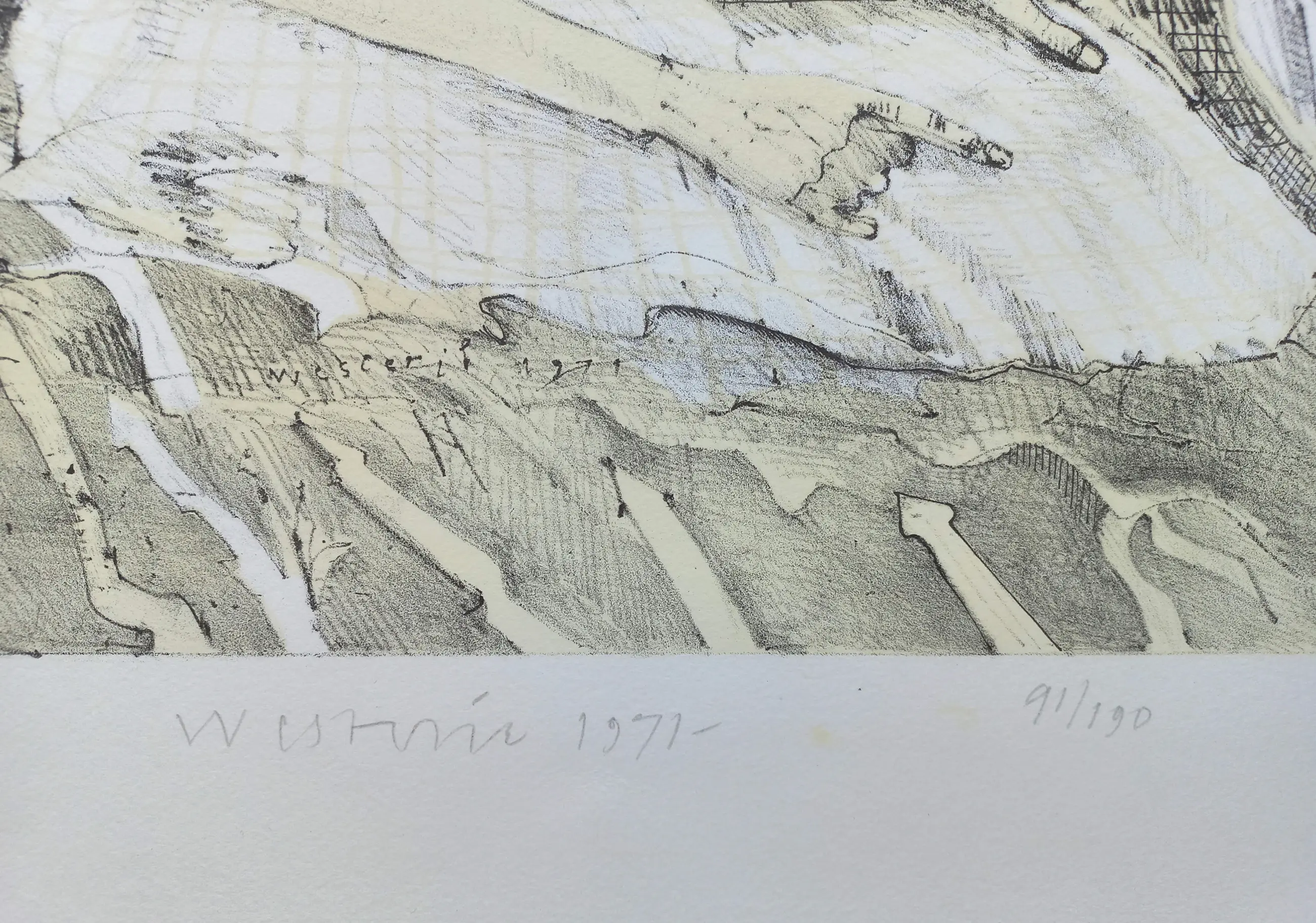 Afmetingen: 66cm x 51cm (blad), 42cm x 31cm (litho)