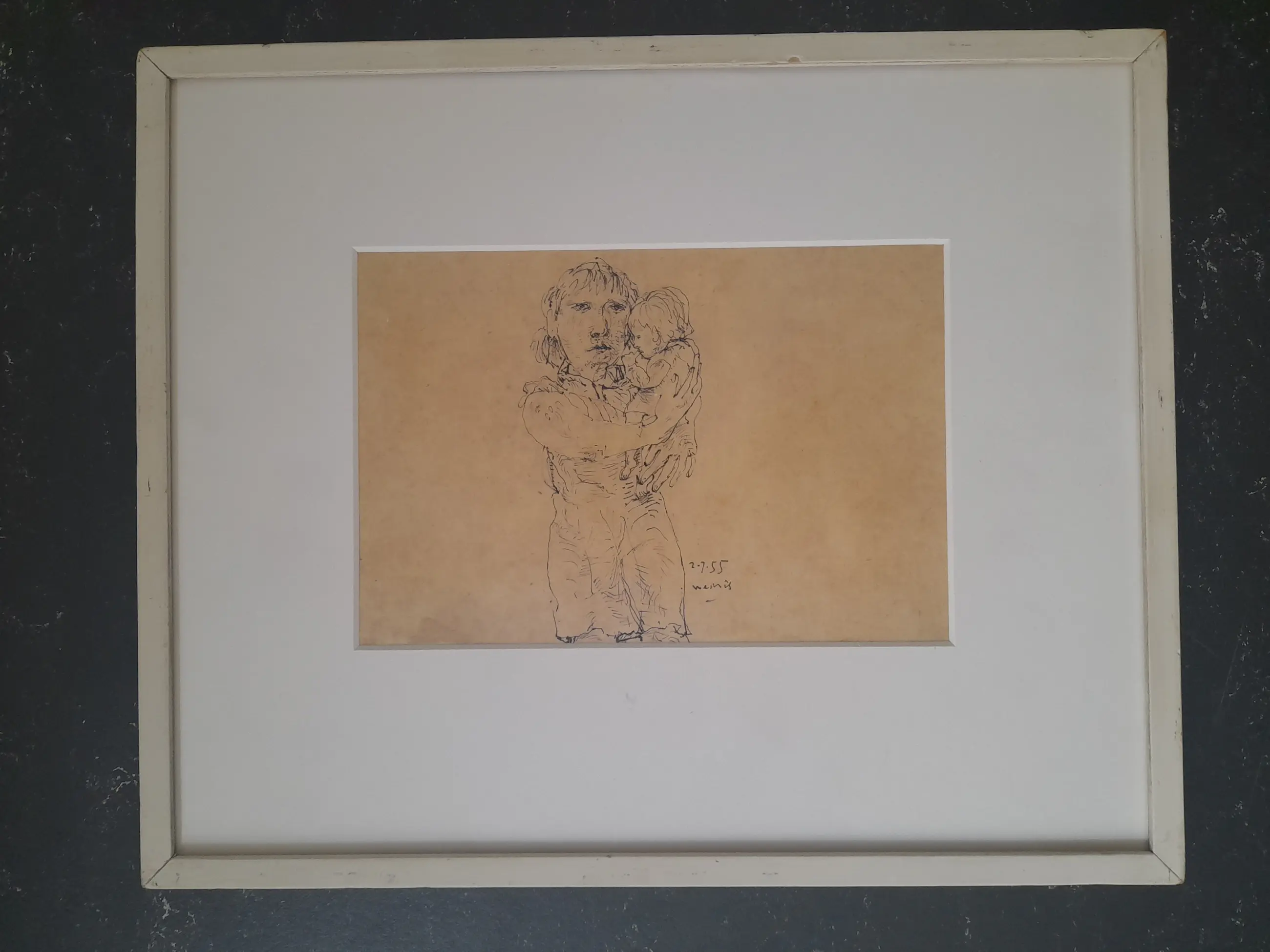 Originele vroege pentekening uit 1955 van Co Westerik. Titel: 'De Zusjes' (zijn eigen kinderen). Werk is afkomstig uit de erfenis van Henk Peeters, met wie Westerik een leven lang bevriend is geweest. Ze waren jaargenoot op de Haagse Kunstakademie (later Koninklijk...) De tekening is onlangs gerestaureerd om vergeling tegen te gaan en een halt toe te roepen. De originele lijst is gehandhaafd.