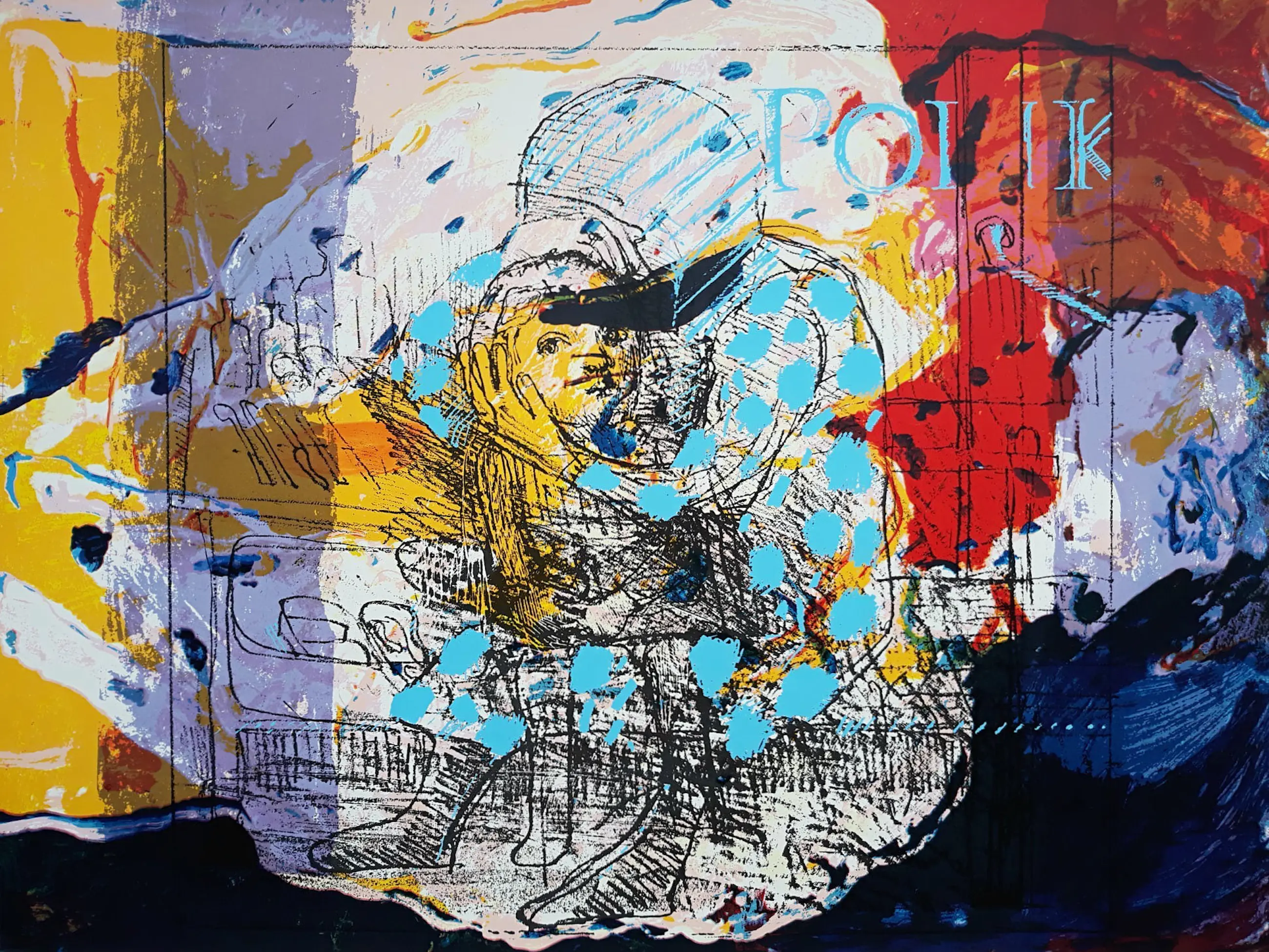 De Westerik druk is gebaseerd op een zeldzame, niet uitgegeven litho uit 1969-1970 (literatuur: Co Westerik Grafiek no. 61) maar deze uitvoering heeft al elementen van de uiteindelijke uitvoering (literatuur: Co Westerik Grafiek no. 93), o.a. de letters “Polik”. De proefdruk van Kees van Bohemen is groter dan de proefdruk van Co Westerik en loopt voorbij de originele compositie van Westerik.