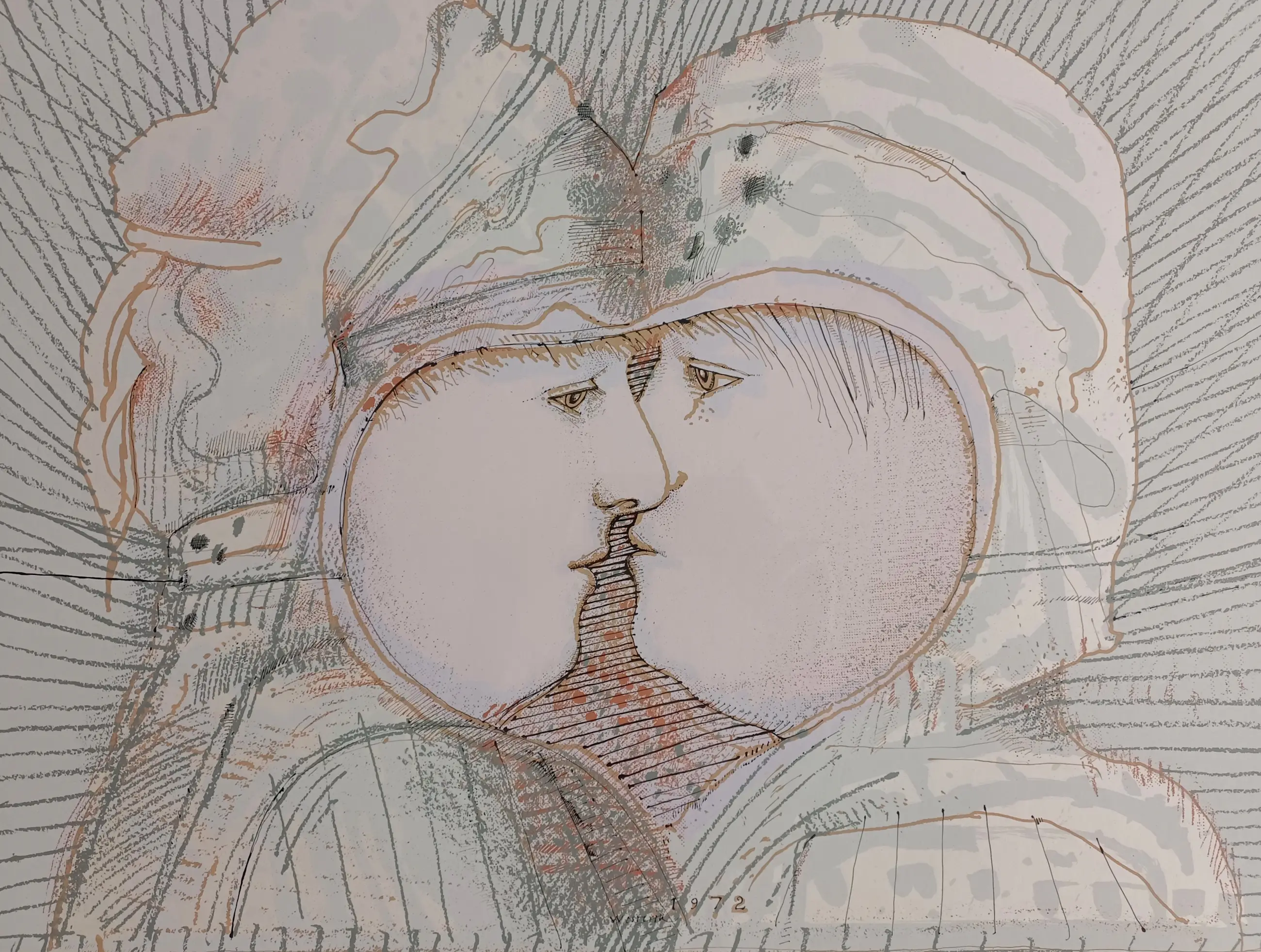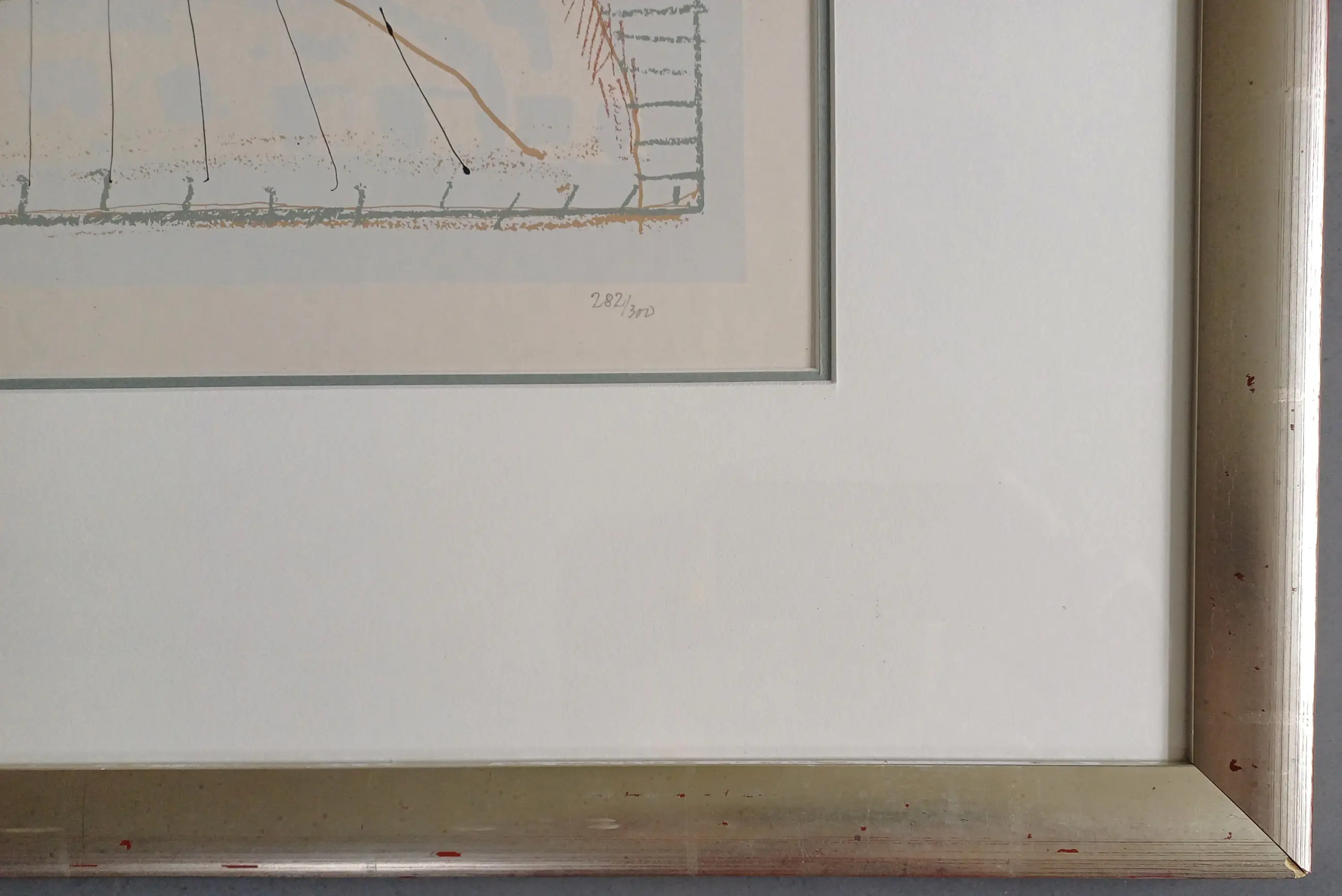 Gesigneerde zeefdruk van de kunstenaar Co Westerik (1924-2018), gedrukt in een oplage van 300 stuks. In het midden is het werk gesigneerd in potlood en 1972. Rechts 182/300. Afmeting werk 50 x 63.5 cm (hxb) Afmeting lijst 82 x 94 cm. (hxb) Het werk is in prima staat. De lijst heeft een aantal kleine beschadigingen.