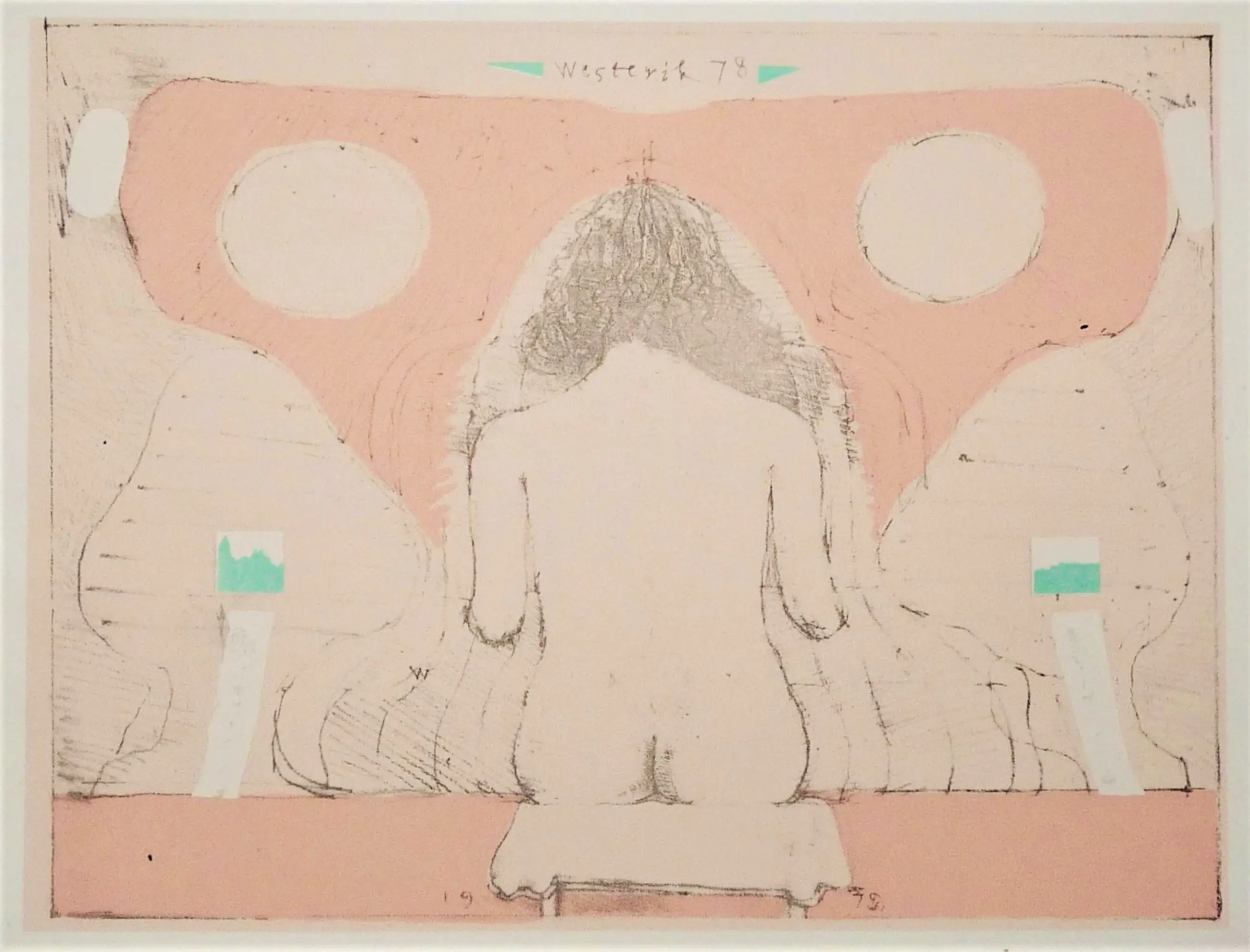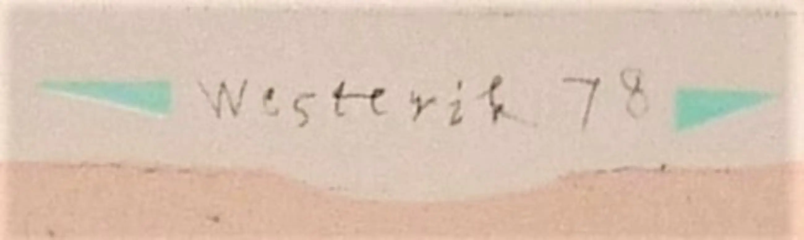 *Fraaie zeefdruk uit 1978 van de bekende Nederlandse kunstenaar Co Westerik. Het werk is gesigneerd en gedateerd in de plaat en betreft een goede proefdruk van Henk van der Vet, destijds uit zijn collectie geveild. Met stempel achterzijde: Atelier Henk van der Vet *Beeldmaat 19,5 x 25,5 cm. Papiermaat ong 38 x 50 cm.