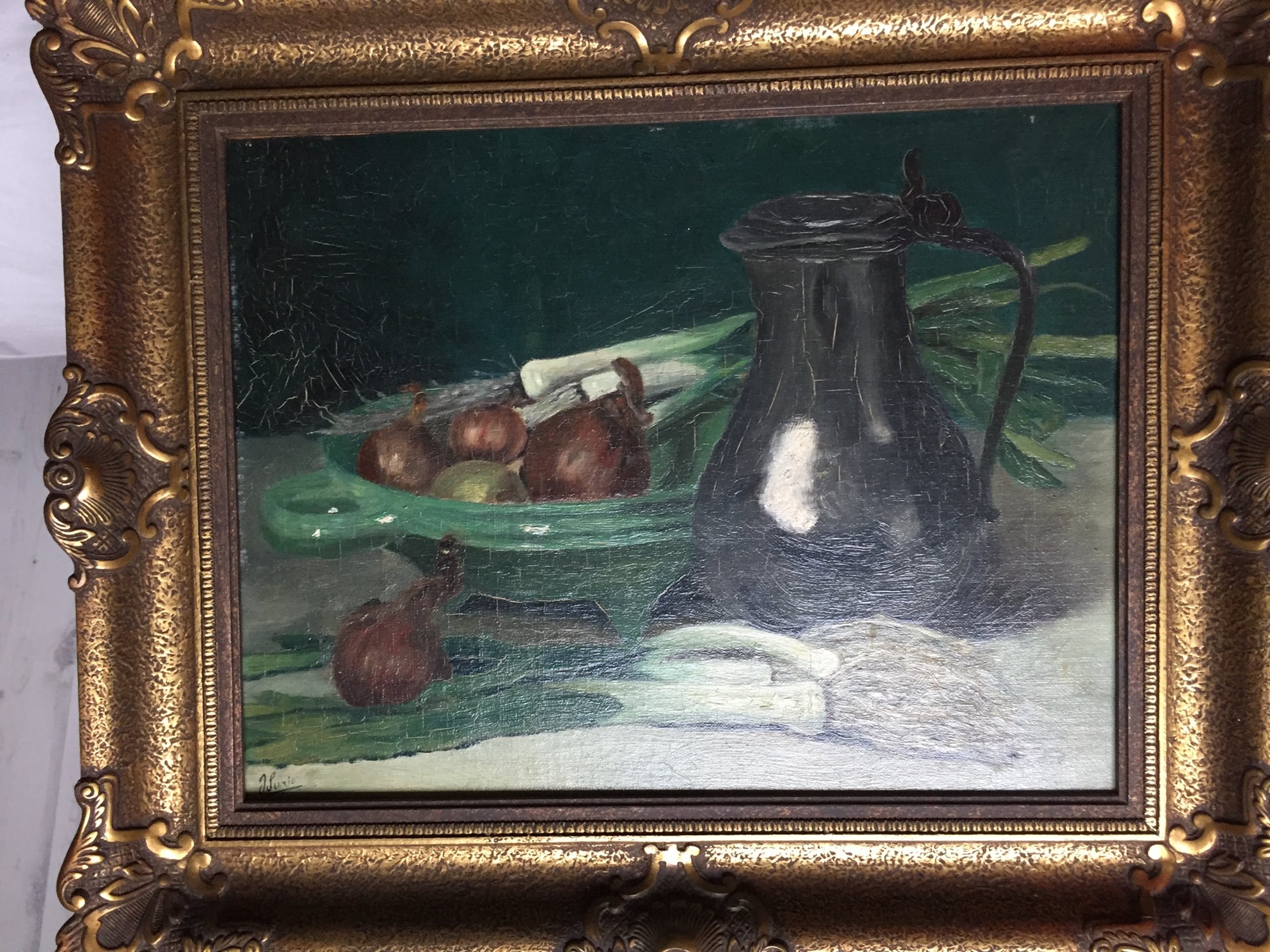 Stilleven van de gerenommeerde schilderes Jacoba Surie. Zij was een van de Amsterdamse Joffers, een groep welgestelde dames, die rond 1900 furore maakten als impressionistische schilderessen uit Amsterdam. Het schilderij is 35 bij 45 cm. Lizzy Ansingh en Coba Ritsema