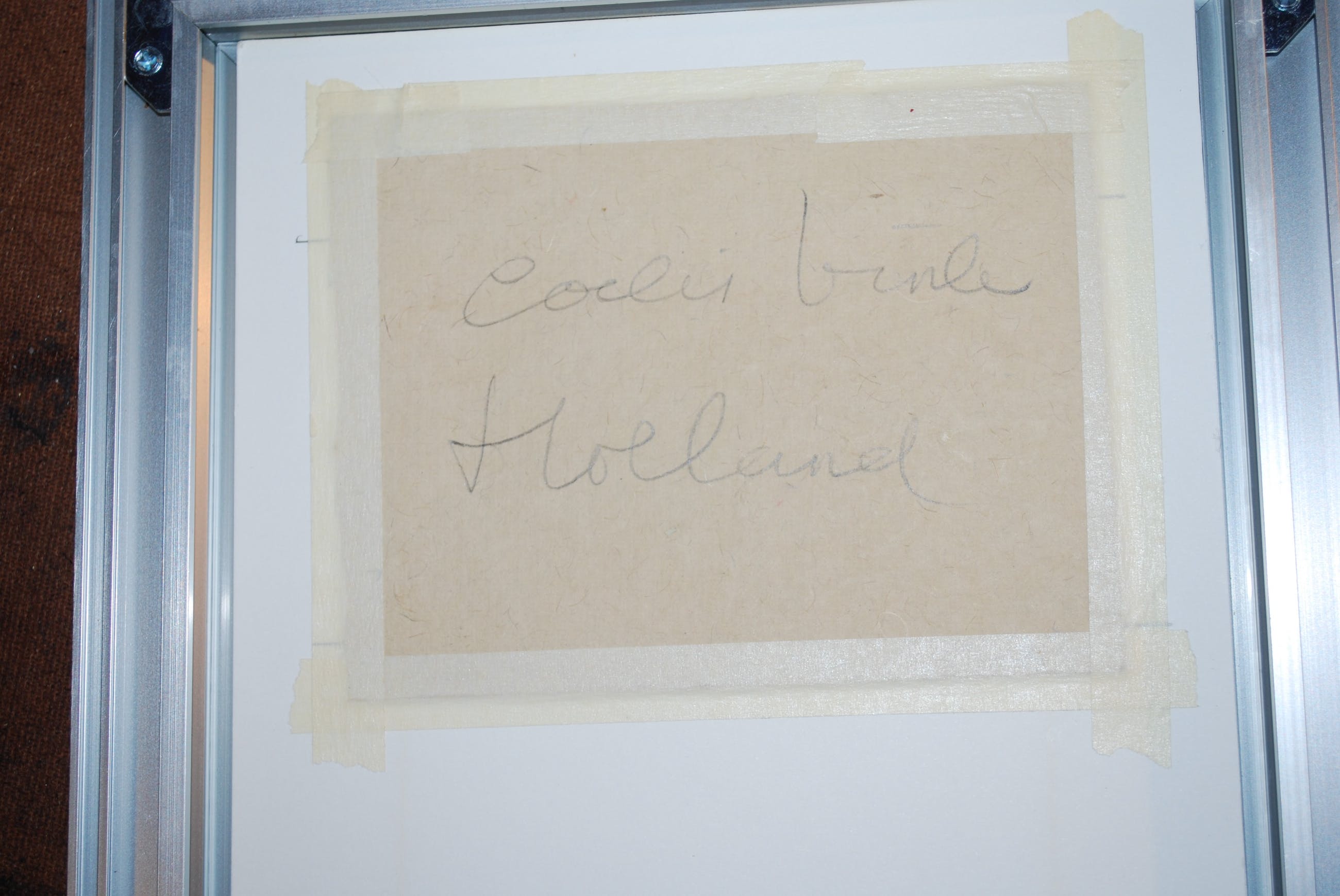 achter passepartout en glas in een fraaie aluminium lijst (wat krasjes)