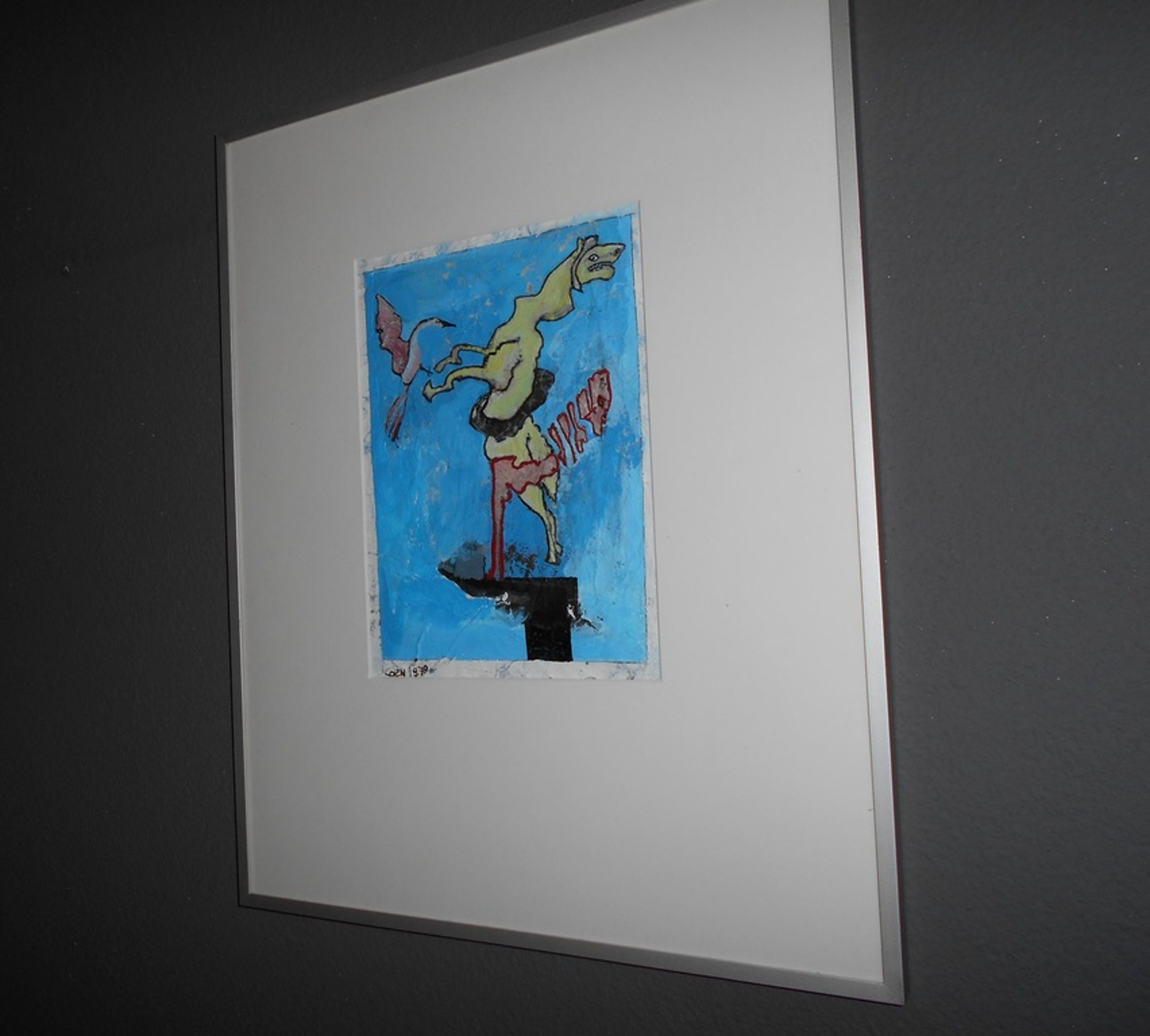 Lijst, ontspiegeld glas en ophamgerk. Kan zo aan de muur.