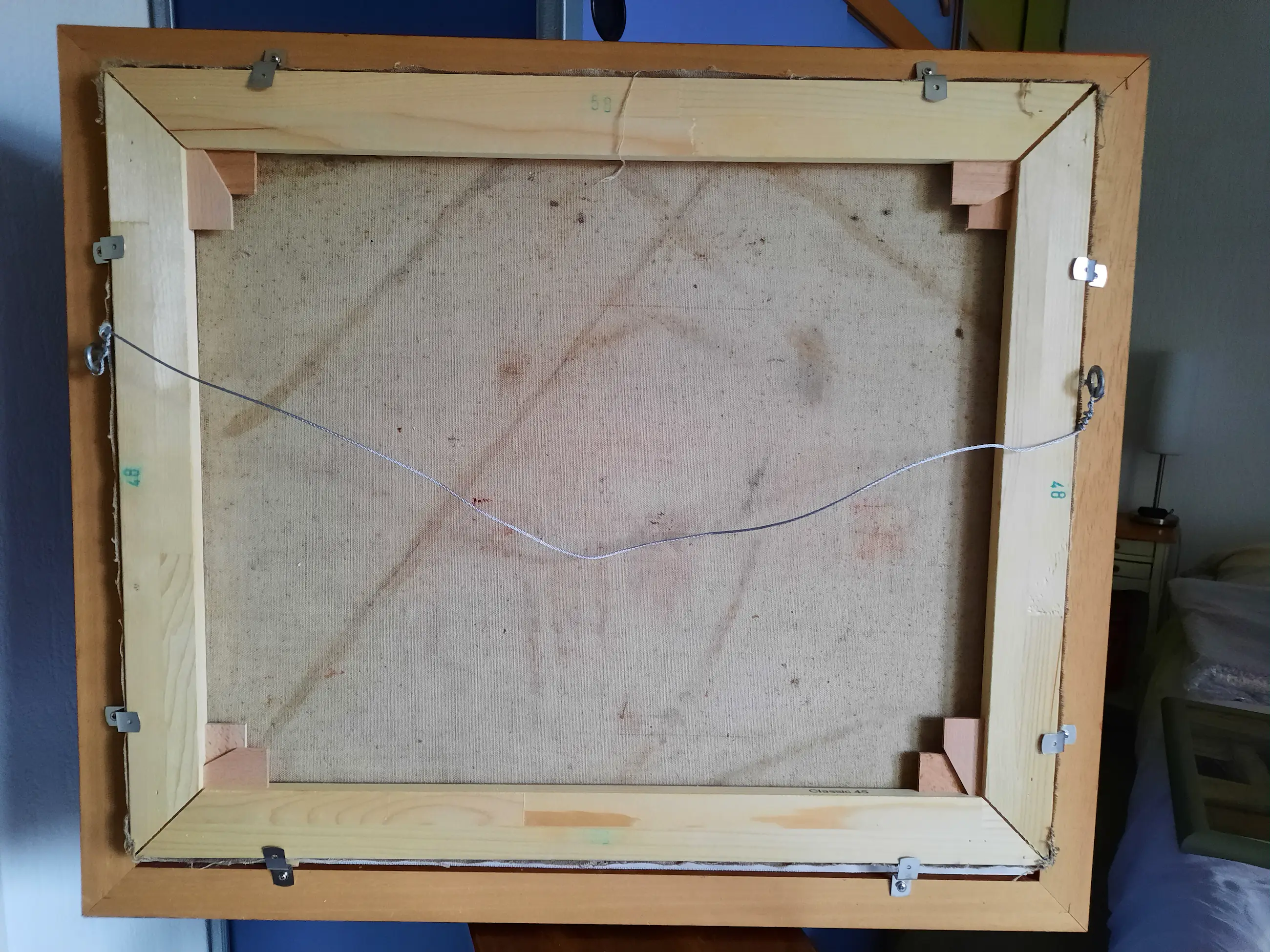 Schilderij is in goed conditie, wit plekje rechtsonder is verf.