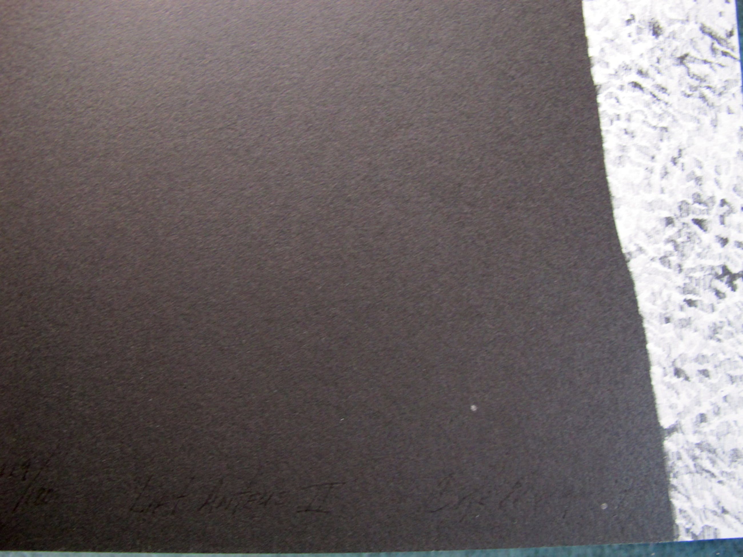 handgesigneerd met potlood. Moeilijk te lezen in de zwarte ondergrond.