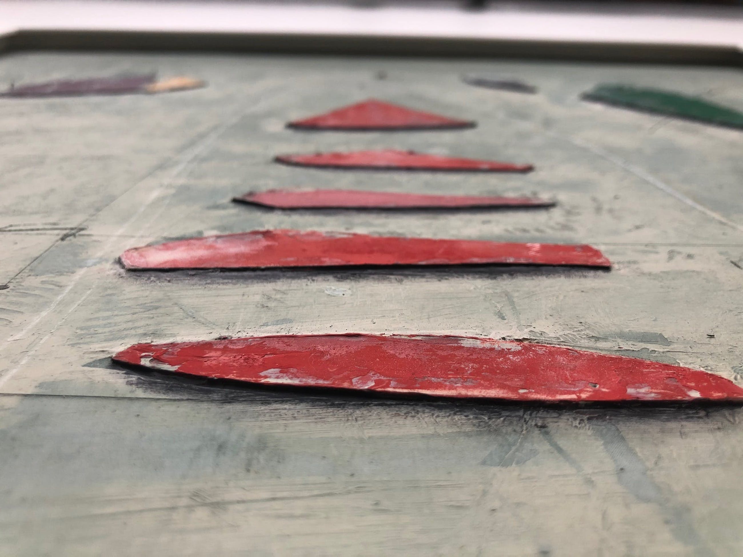 wetmatigheden. Schelpen, veren, steentjes, stukjes papier, karton of