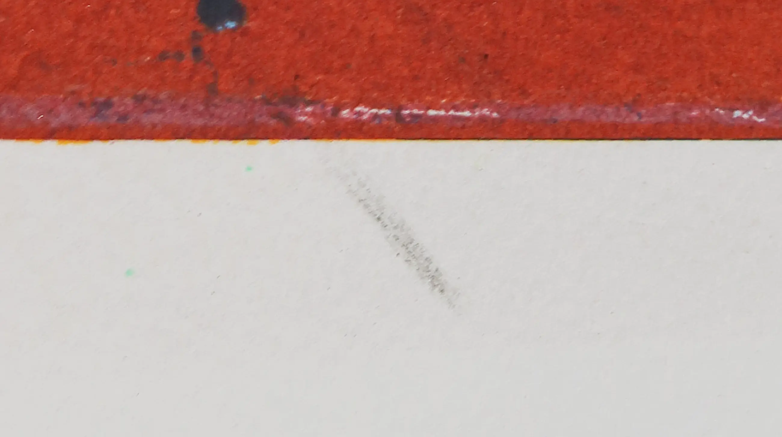 | Wat minimale veegjes in het witte kader. Daarnaast is er rondom de compositie een lichte verkleuring van het witte kader te zien waar de lijst heeft gezeten. | |