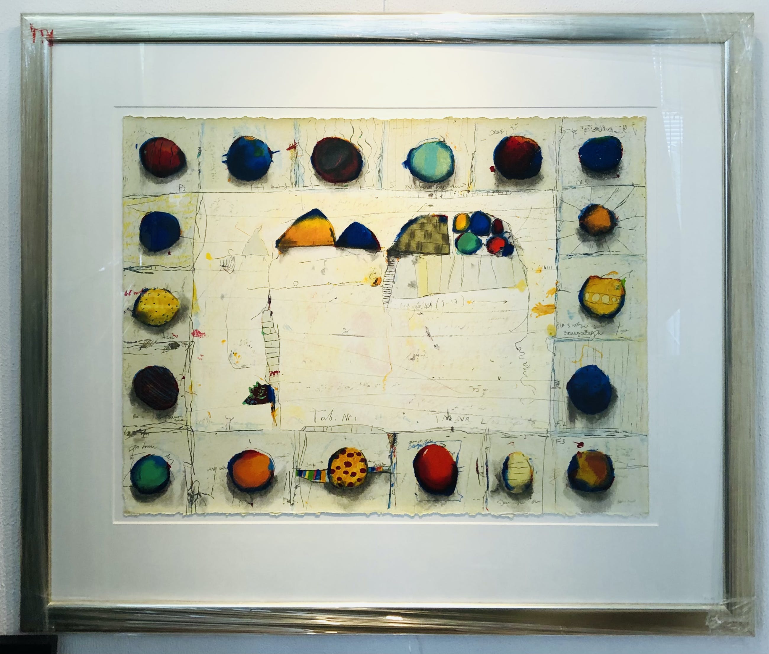 Mooi abstract werk van Cole Morgan met lijst. Een werk dat zo aan de muur kan worden gehangen! U kunt het werk vooraf komen bekijken in de Schatkamer van galerie Rotor in Gorcum, na aankoop afhalen of verzenden per koerier met lijst of zonder lijst per aangetekende post toegestuurd krijgen. Het werk zit in een prima maar gebruikte lijst. De foto is door het glas van de lijst heen genomen.
