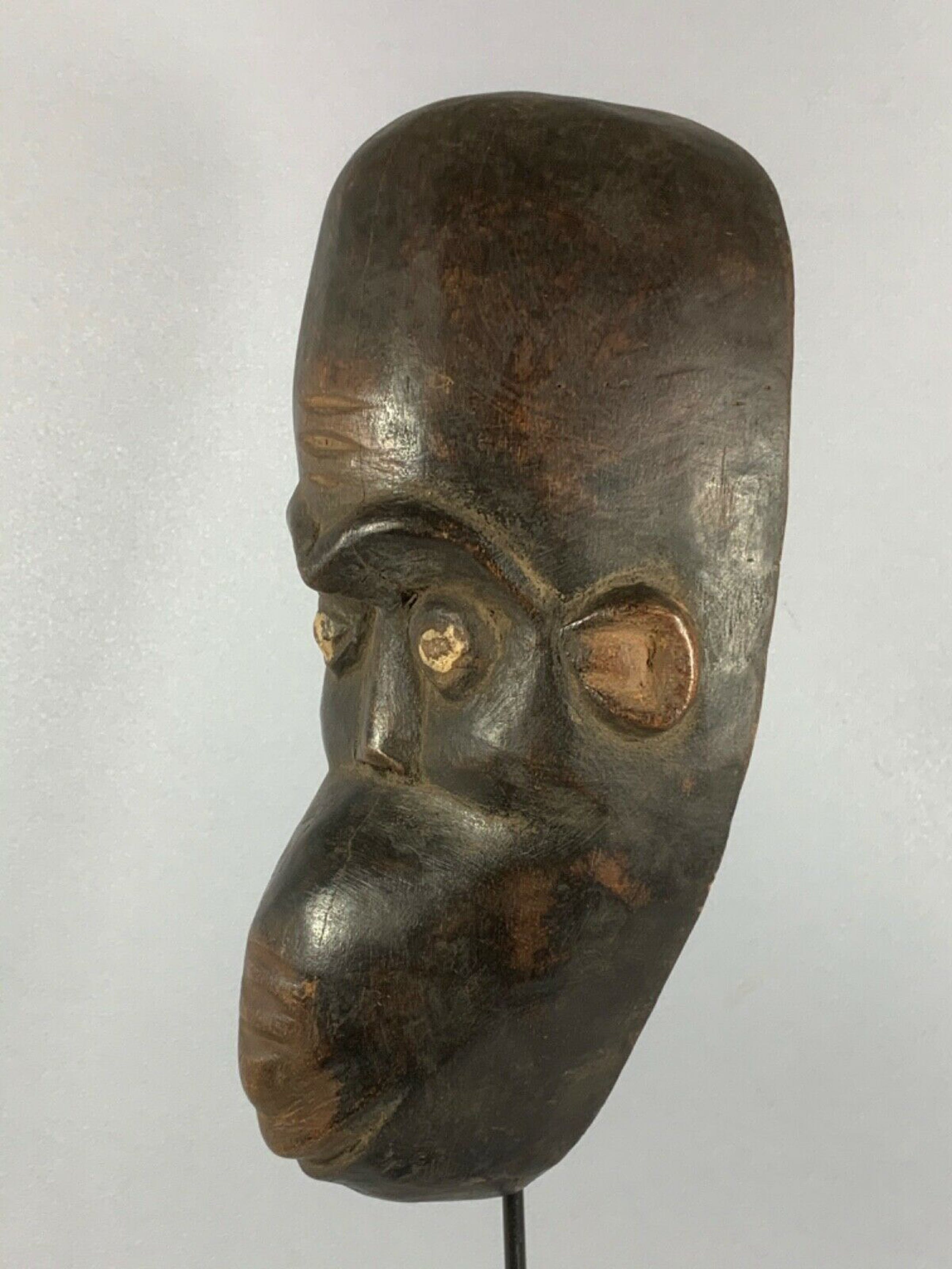 Most of their masks are in the form of a human face, or animals some with horns. They have geometrically formed human heads, mostly colored white and black.