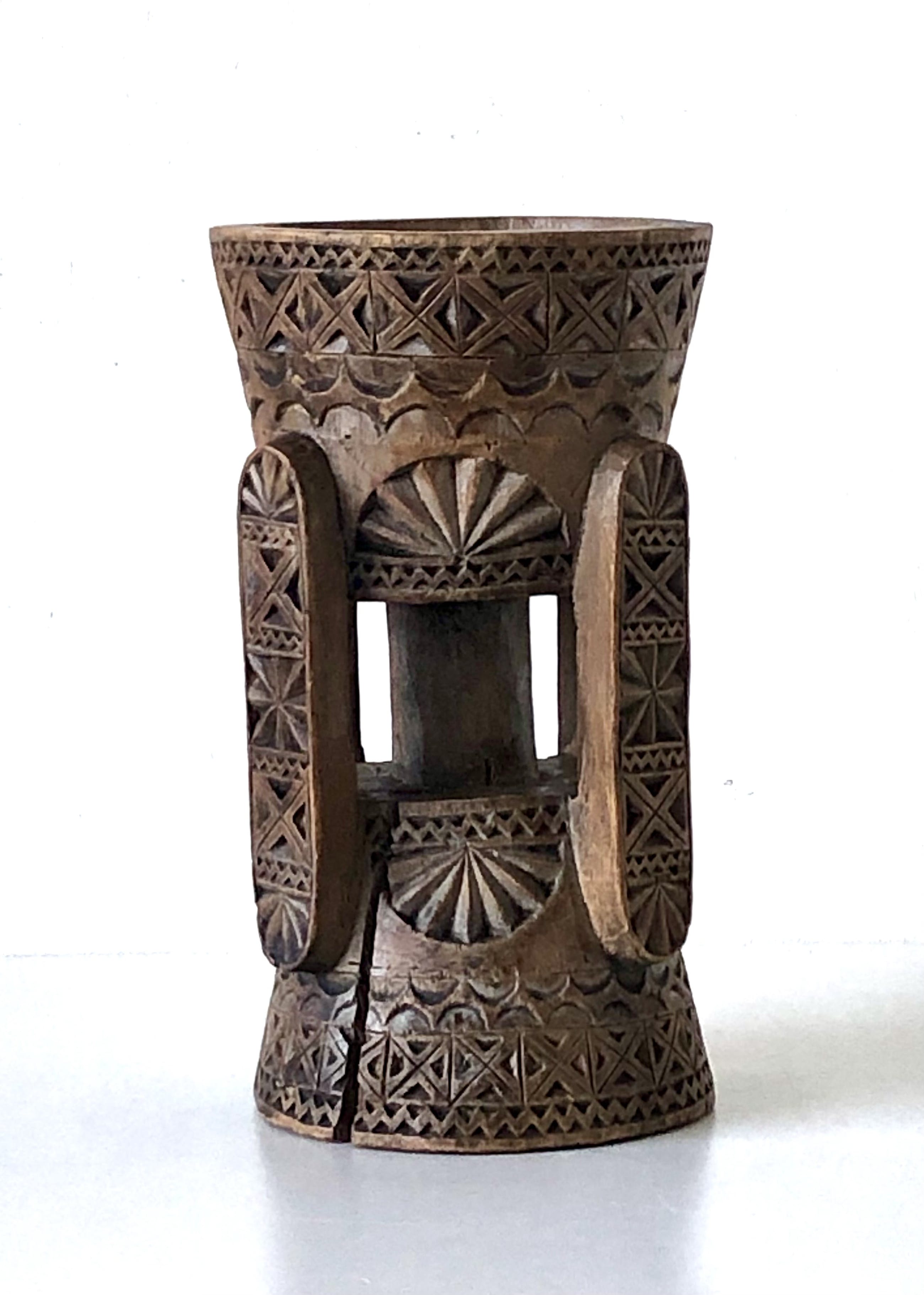 Uit één stuk gehakte/gesneden offerbeker met prachtige details.