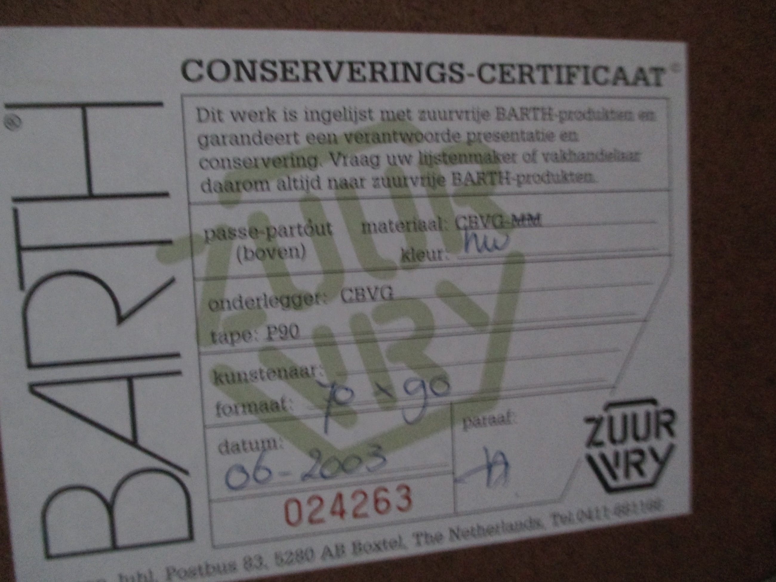 | Incl. lijst | 93 x 73 cm (h x b) |
