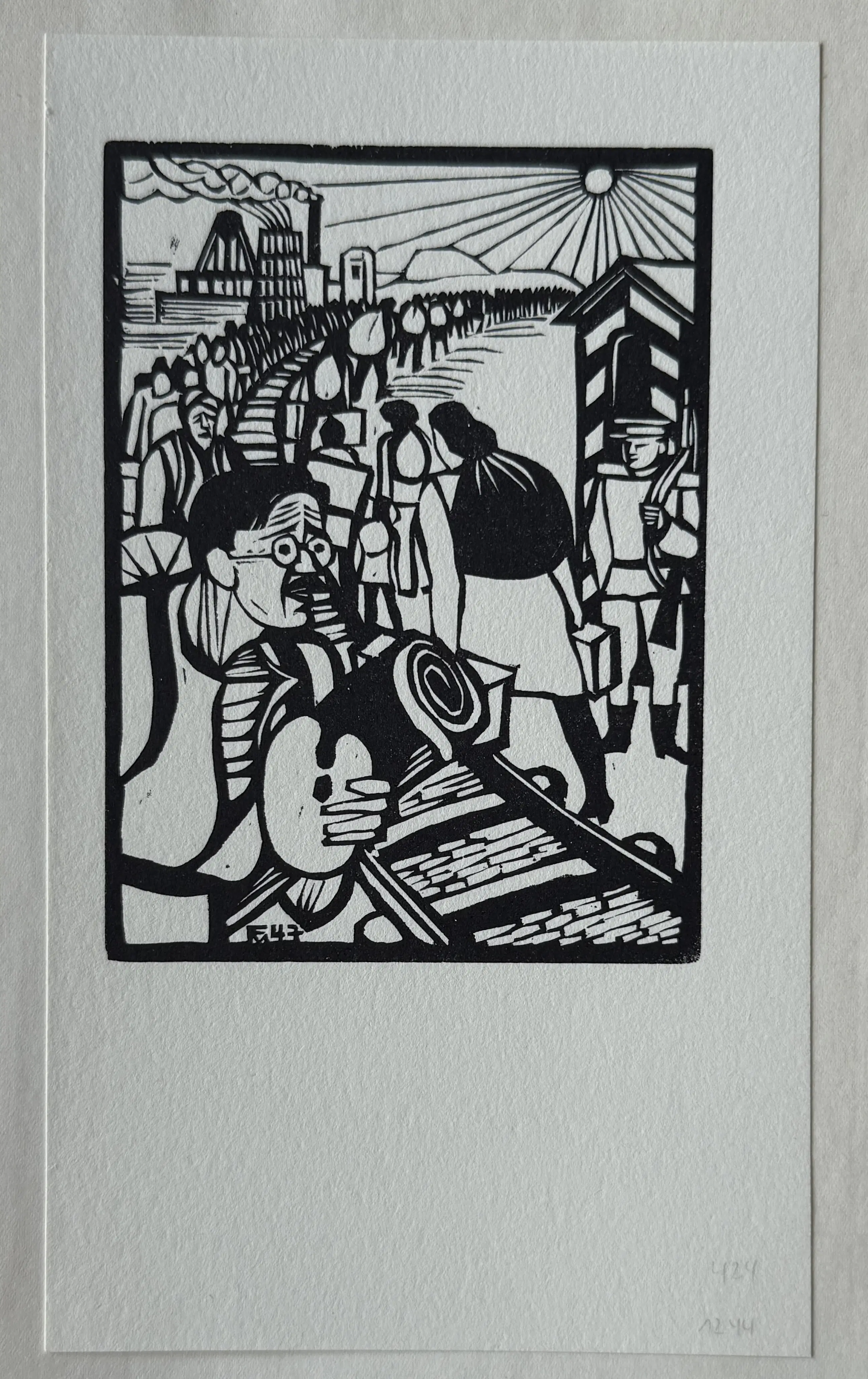 Felixmüller schrijft over deze houtsnede: "In juni stak ik illegaal de grens over met vluchtelingen, langs de Sovjetcontroleposten, beladen met mijn schilderspullen, een rol schilderijen onder mijn arm – als een kanonsloop. Ik wil de schilderijen verkopen en zo mijn zoon Titus in staat stellen om in Flensburg te studeren."