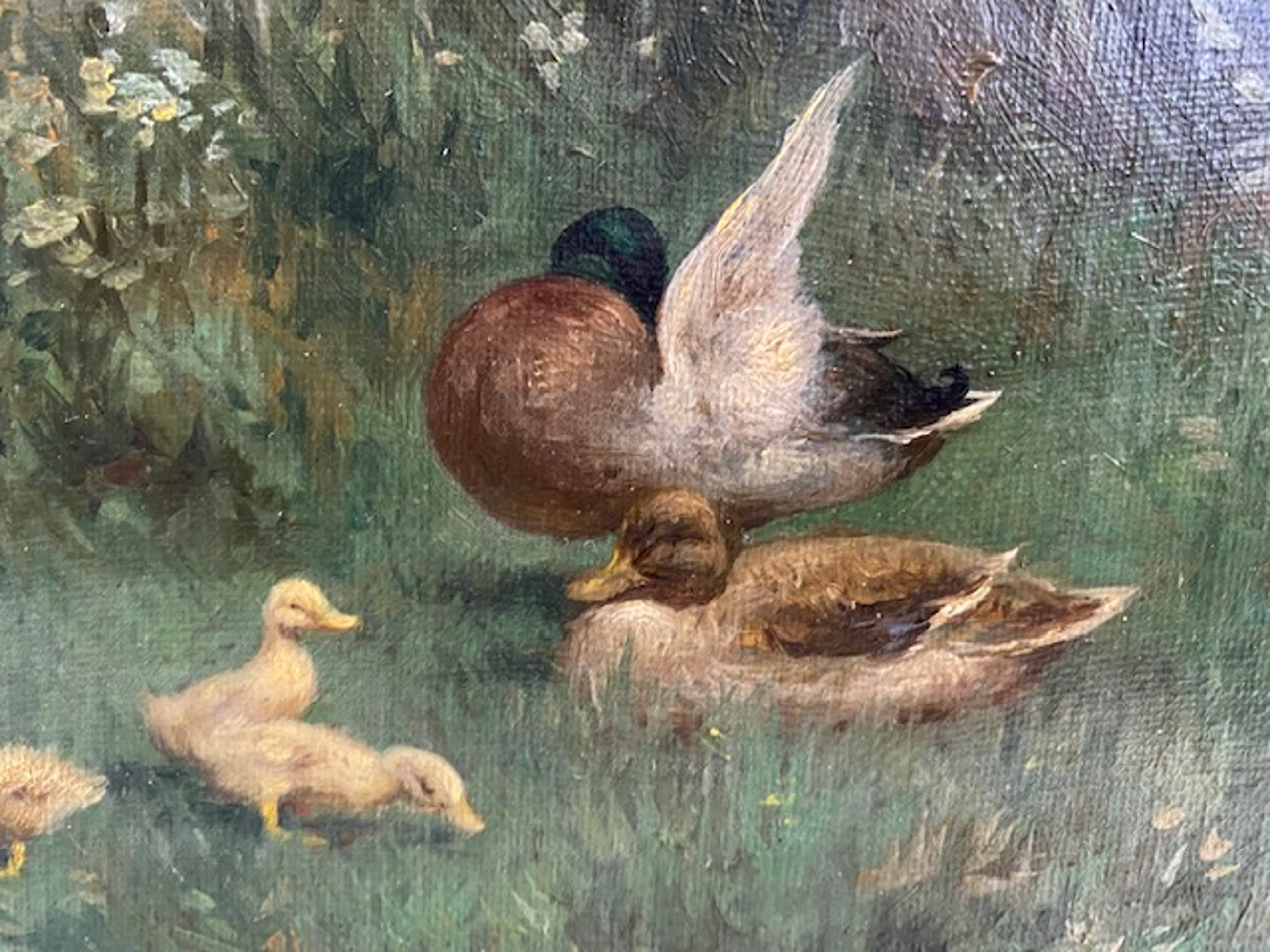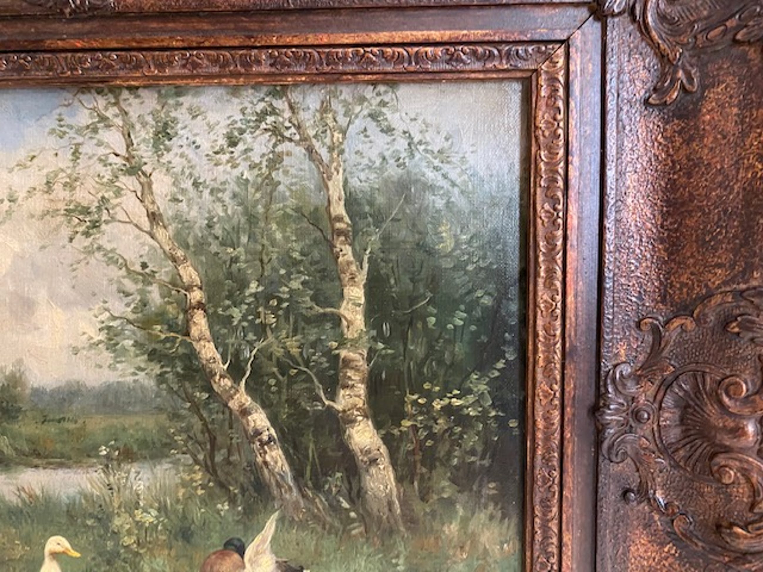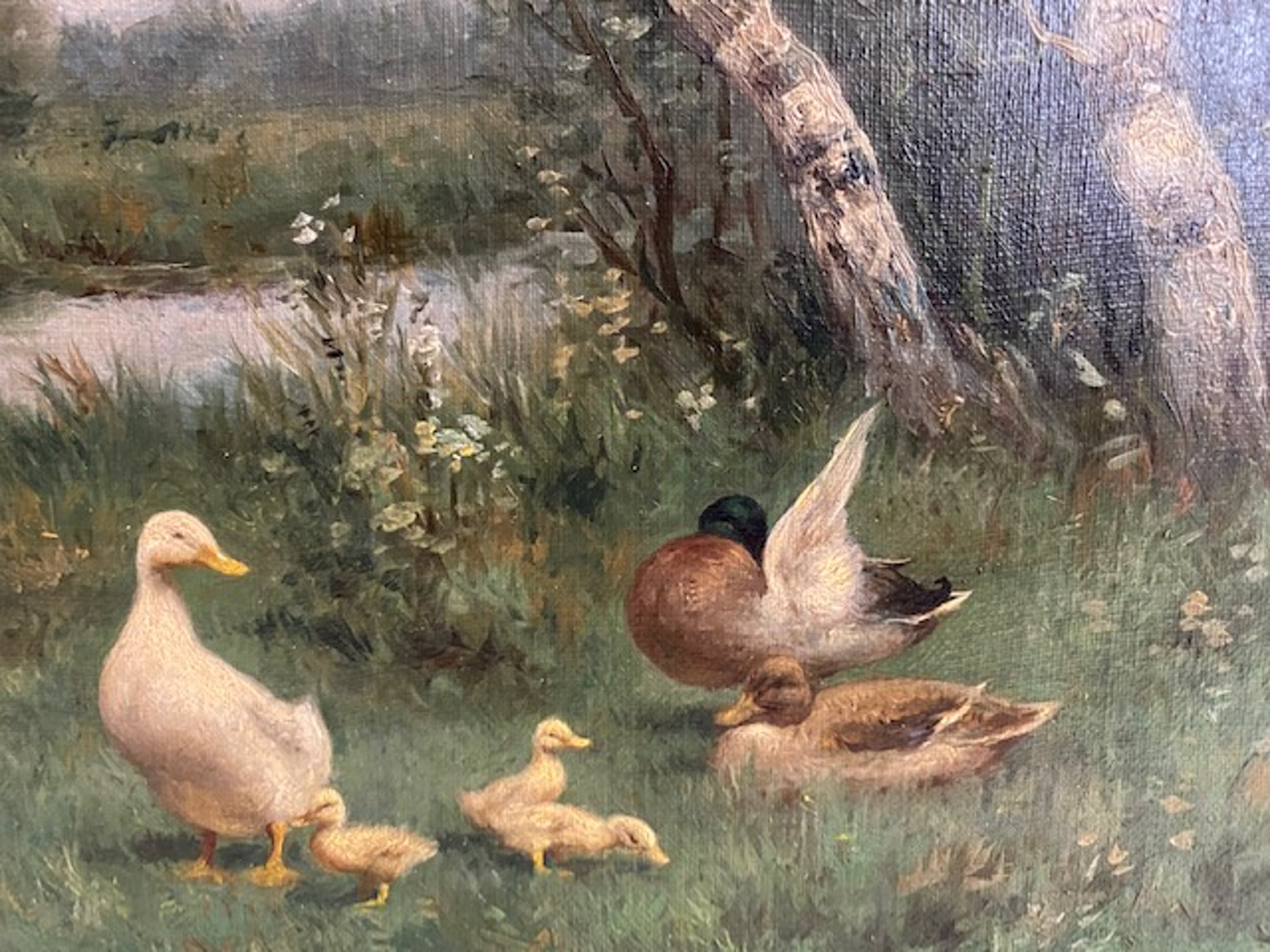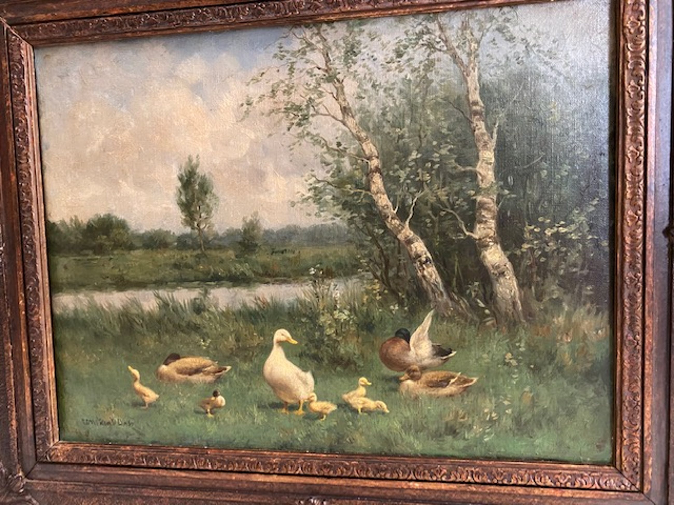 Aangeboden prachtwerk van Constant Artz (1870-1951) “Eenden aan de waterkant”. Rechts onder met hand gesigneerd. Doek en list bevindt zich in goede staat. Constant Artz werd in 1870 in Parijs geboren. Hij is vooral bekend geworden om zijn vele watergezichten met eenden. Leerling van Willem Maris Tevens was Constant Artz een goed aquarellist. Hij wist op meesterlijke wijze eenden met hun kuikens weer te geven. Behalve eenden heeft hij ook Hollandse landschappen geschilderd Constant Artz was de zoon van de Haagse School-schilder D.A.C. Artz. Constant Artz overleed in 1951 in Soest. Diverse musea bezitten werk van hem.