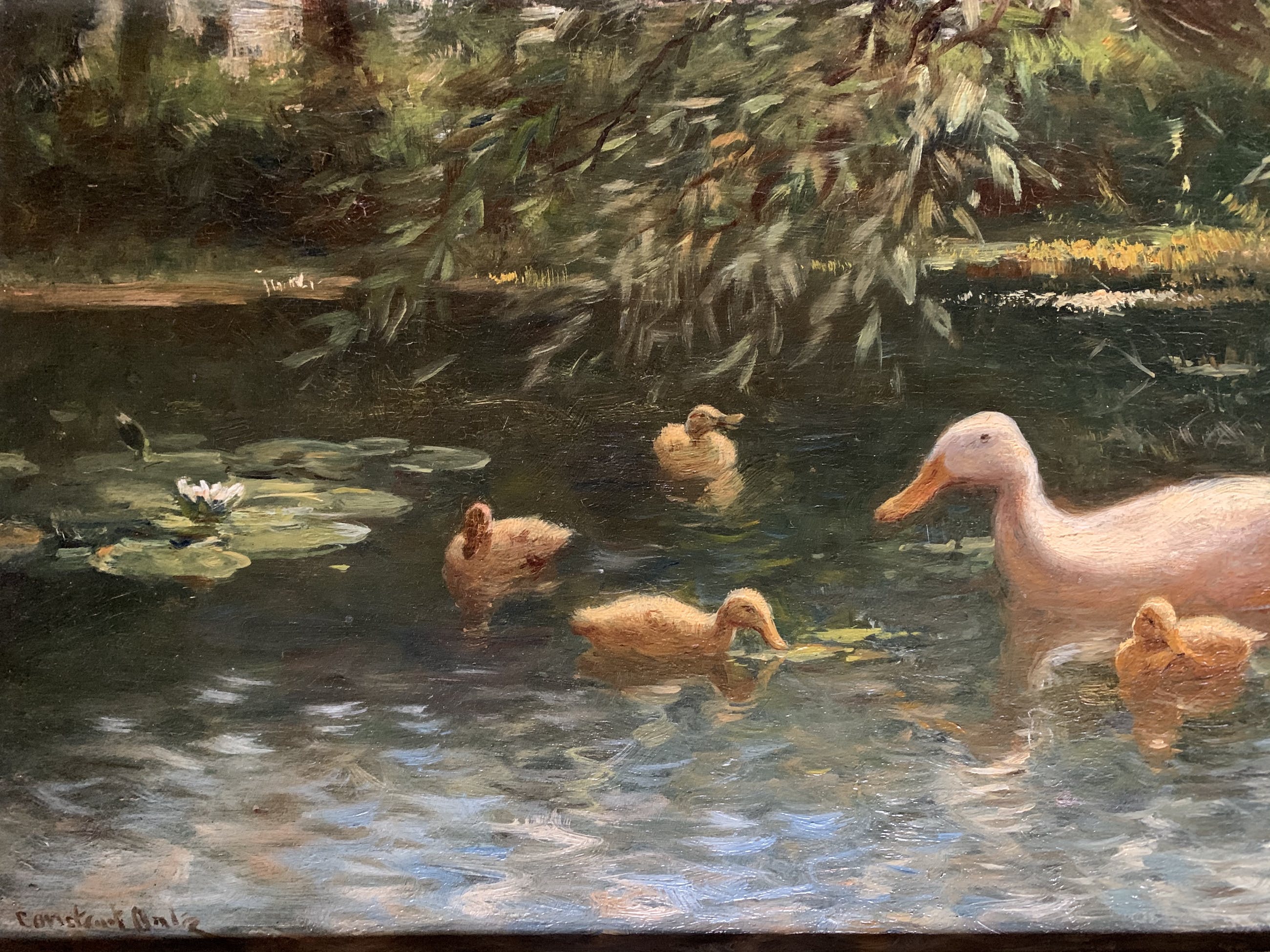 De kunstschilder Constant Artz werd in 1870 in Parijs geboren. Hij is vooral bekend geworden om zijn ontelbare watergezichten met eenden. Het eendenmotief gaf hij in steeds weer andere variaties weer. Met vlotte toets en sterke lichtwerking maakte hij zijn schilderijen, als een bijzonder knap observeerder van de natuur, met gedetailleerd eendenfamilies in hun natuurlijke omgeving. Constant Artz was de zoon van de Haagse School-schilder D.A.C. Artz. Constant overleed in 1951 in Nederland, in Soest.