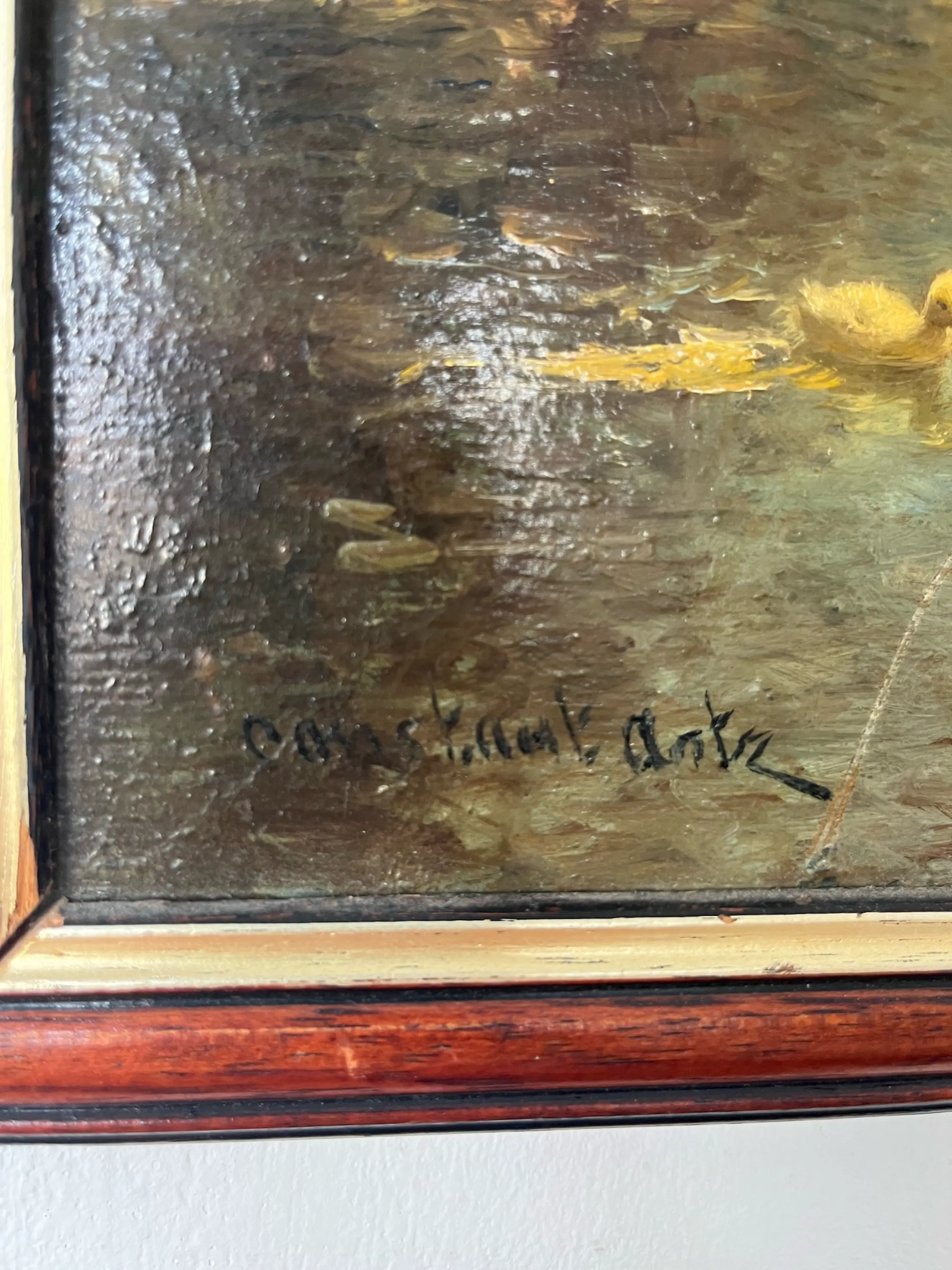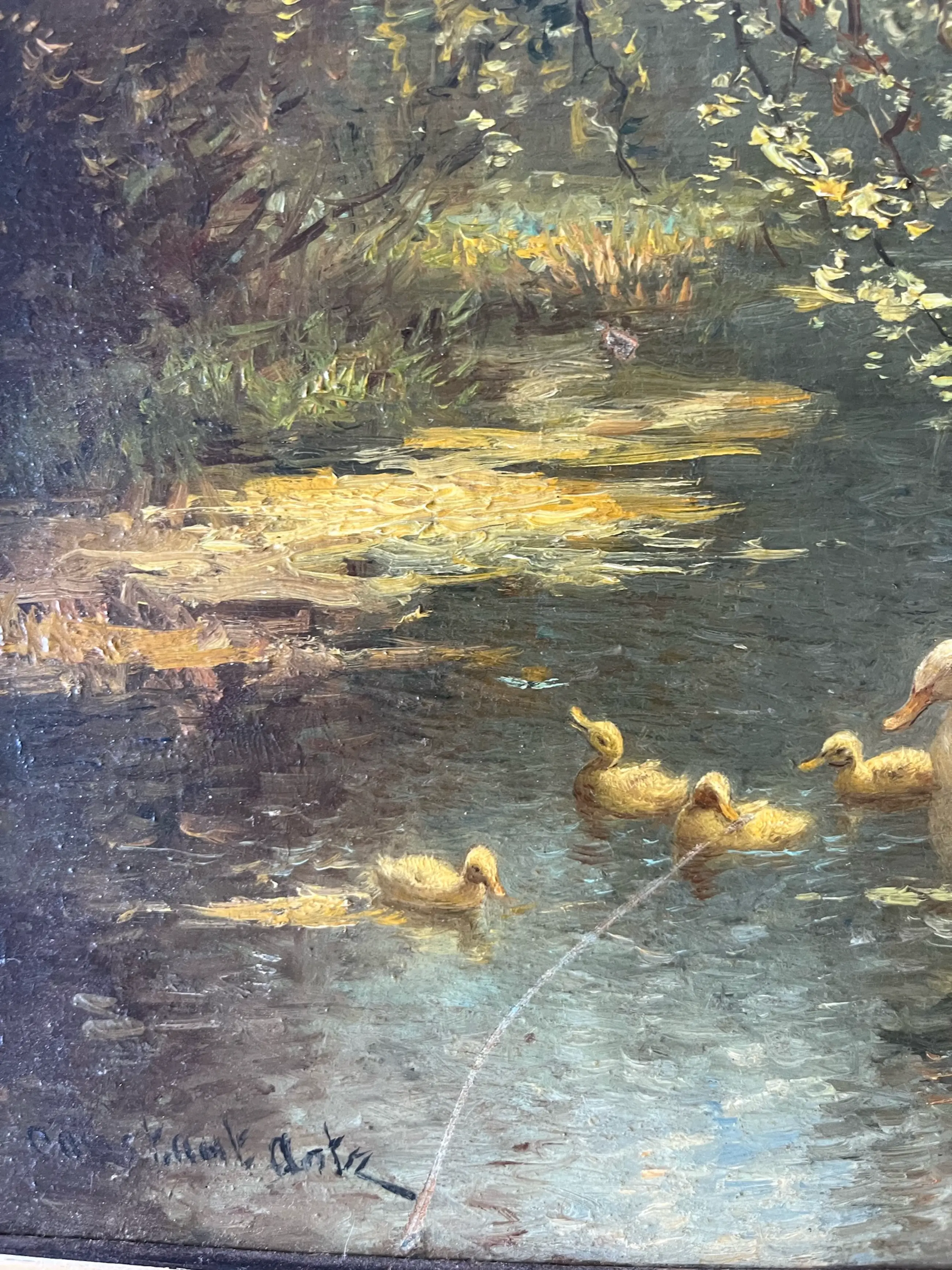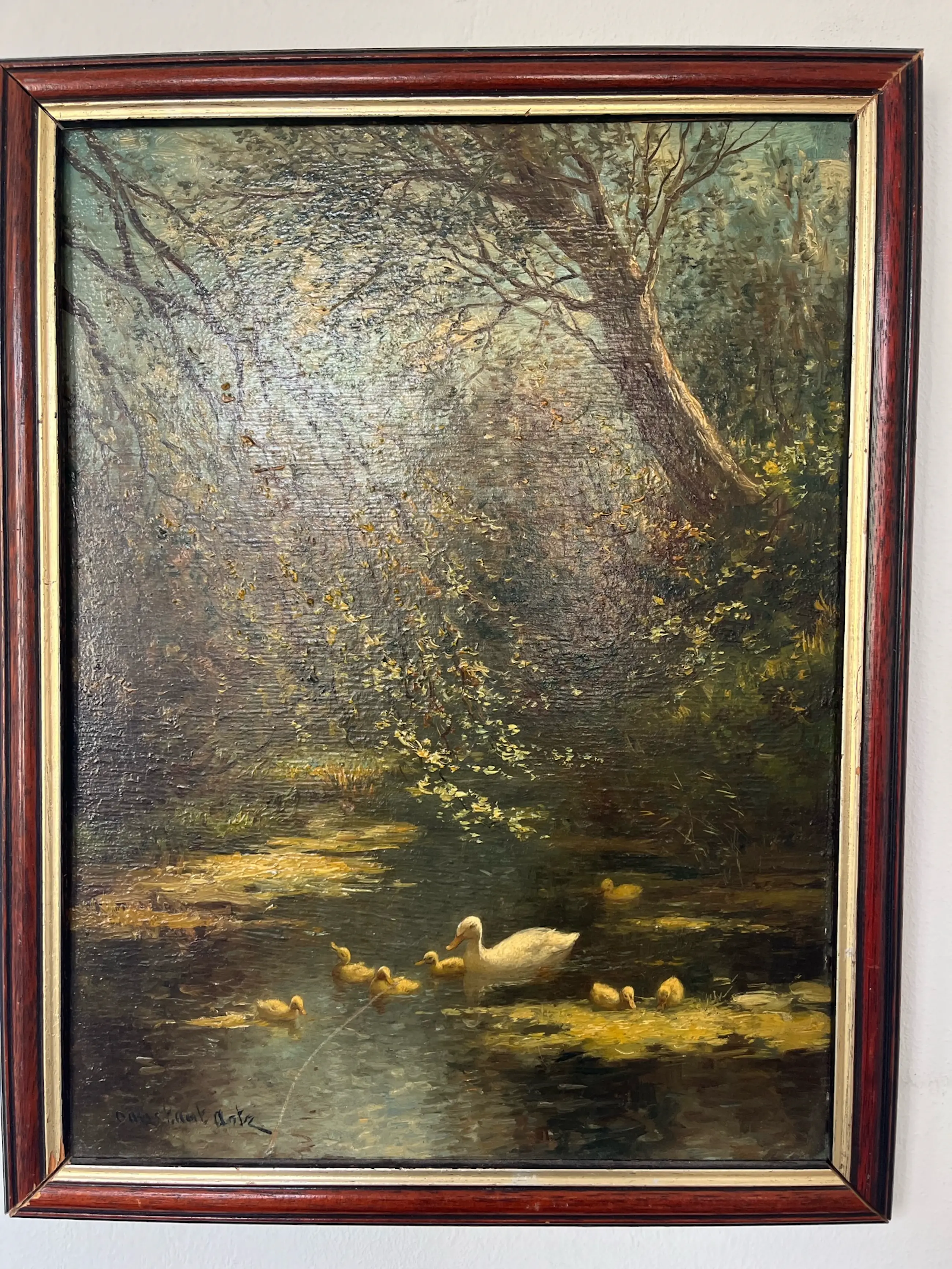 Dit prachtige schilderij van moedereend met 7 kleine eendjes heeft lang bij mij aan de muur gehangen. Het is een erfenis van mijn vader maar het is tijd om het te verkopen.