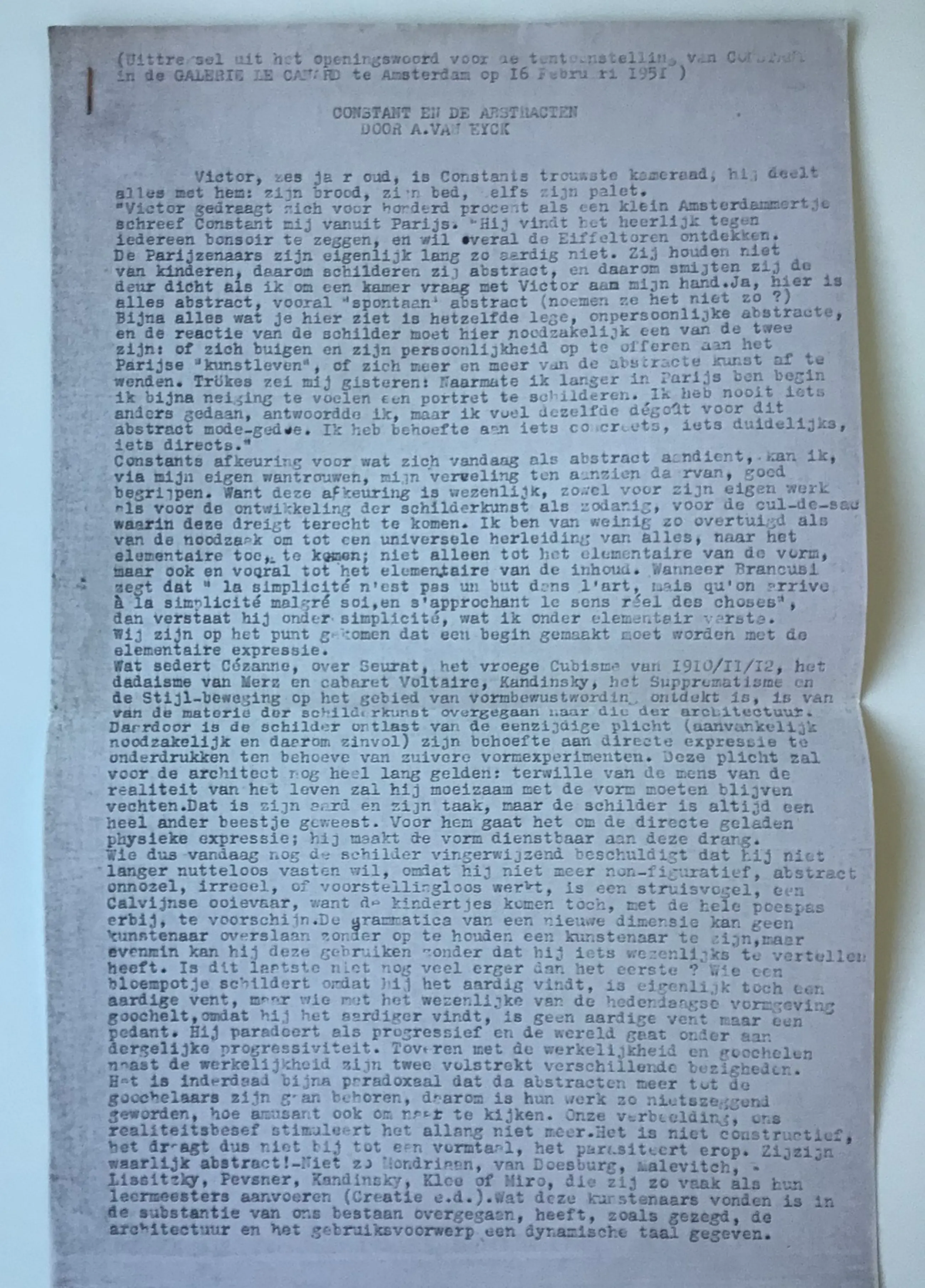 1951 Openingswoord op 16 februari 1951 door Aldo van Eyck.