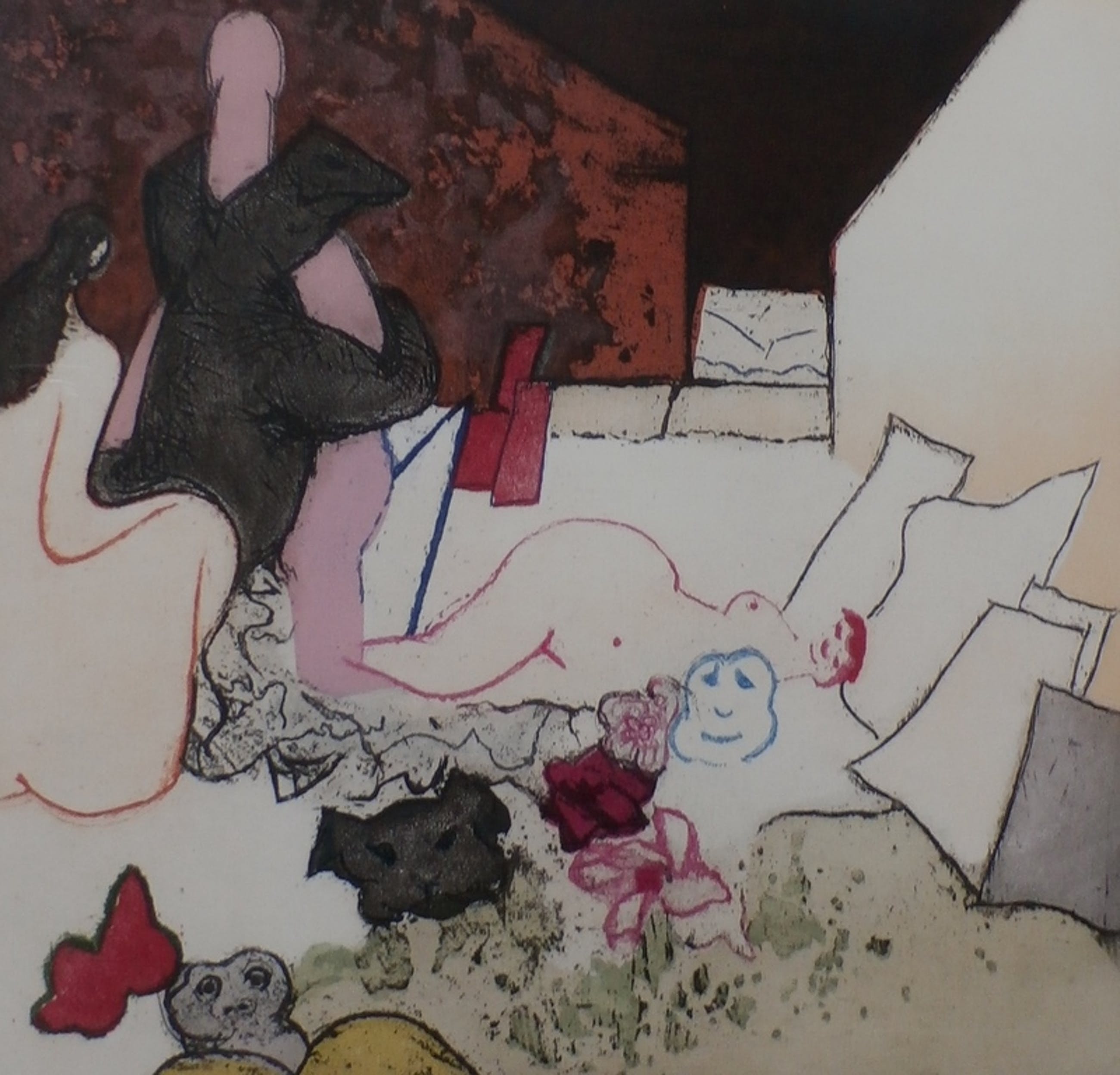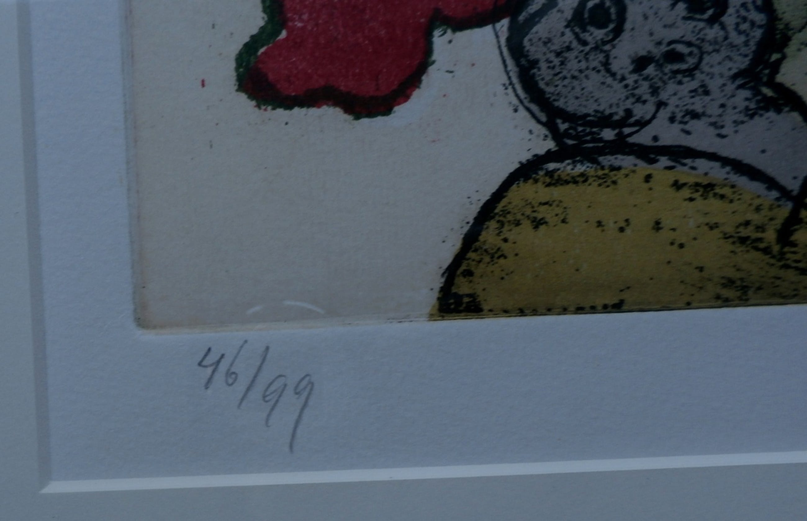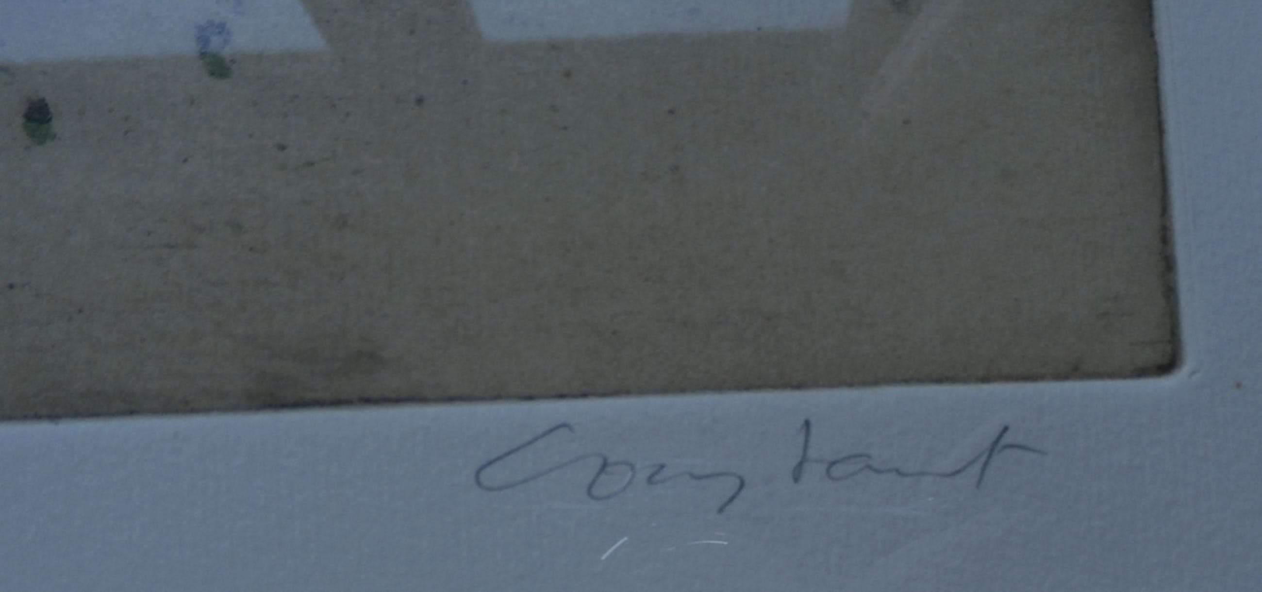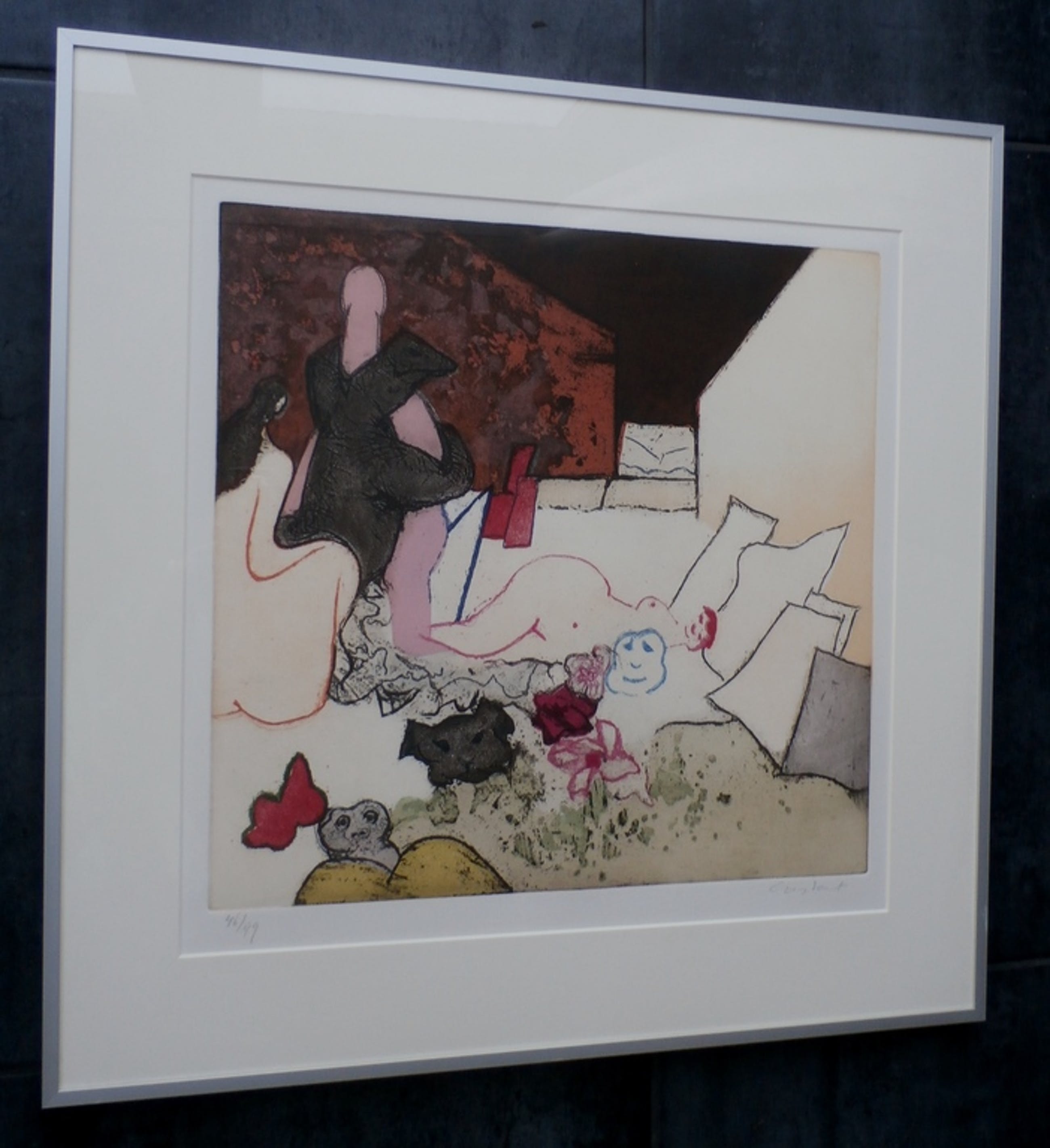 Ingelijste ets en aquatint van Constant. Titel: Het bondgenootschap tussen casanova en de moraal. Uit de serie Plaisir et Tristesse de l'Amour. Afmetingen werk incl lijst: H62 x b61 cm. Afmetingen werk: H41 x b42.5. Nummer: 46/99. Het werk is rechtsonder met potlood gesigneerd. De authenticiteit van het aangeboden werk wordt voor 100% gegarandeerd. Een certificaat van echtheid kan, op aanvraag, worden meegestuurd. Conditie: in goede staat. Lijst kan zo aan de muur. Beschadigingen aan lijsten worden niet beschreven. Indien een werk achter glas is ingelijst en het glas is kapot, zal dit worden vermeld. Let bij verzenden wel op het risico van glasbreuk!