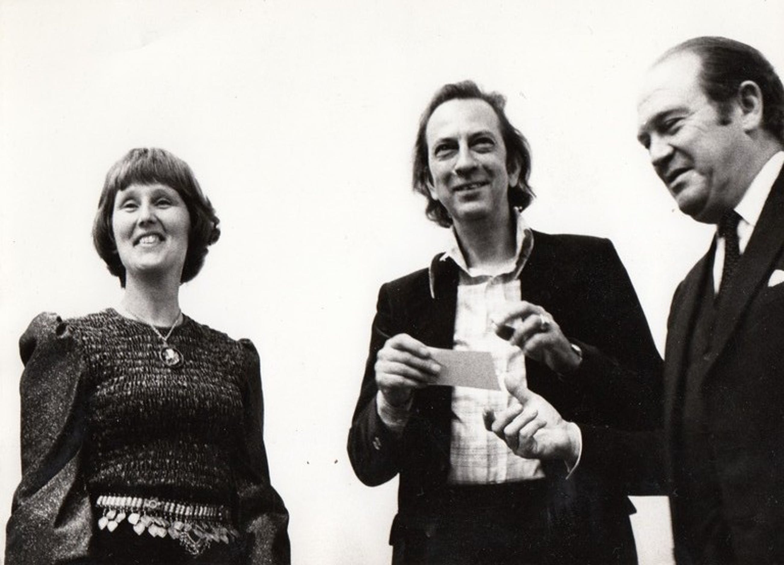Constant Nieuwenhuys met echtgenote & voorzitter Prins Bernard cultuurfonds 1973.