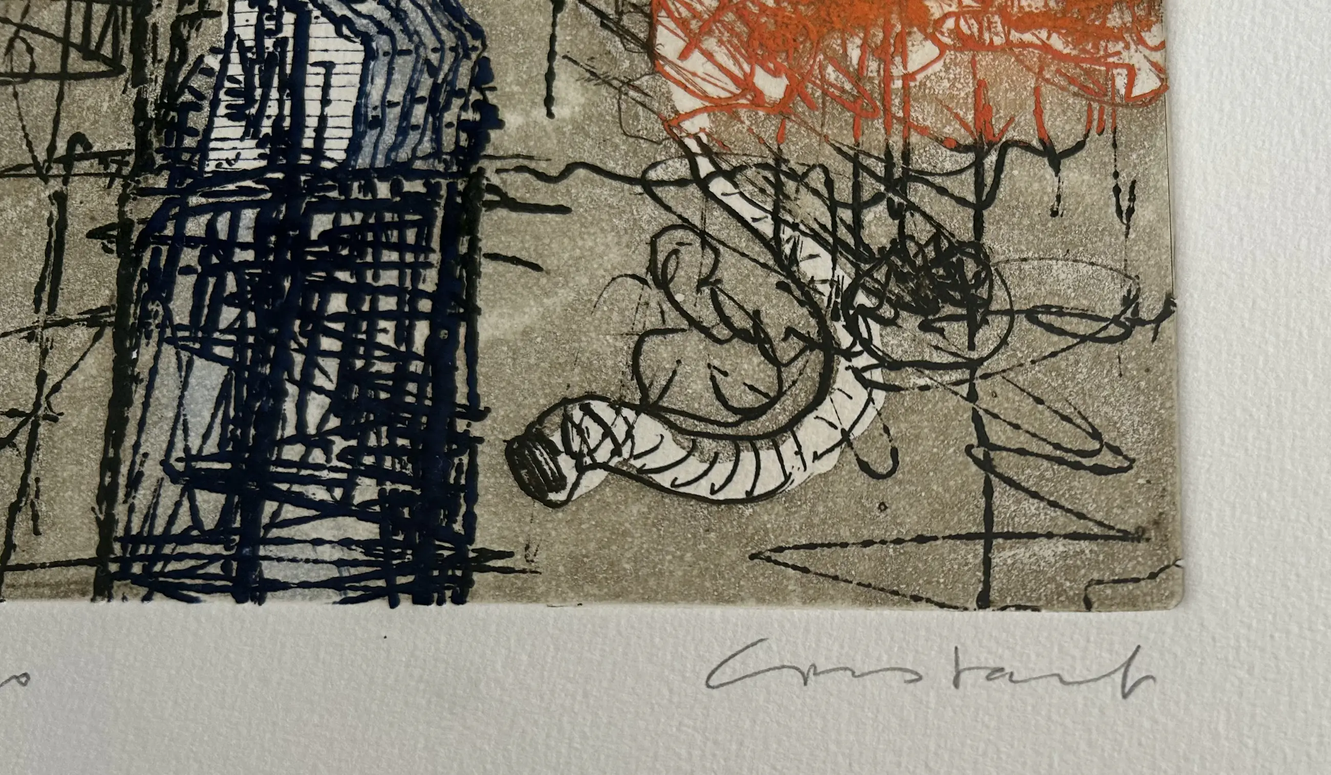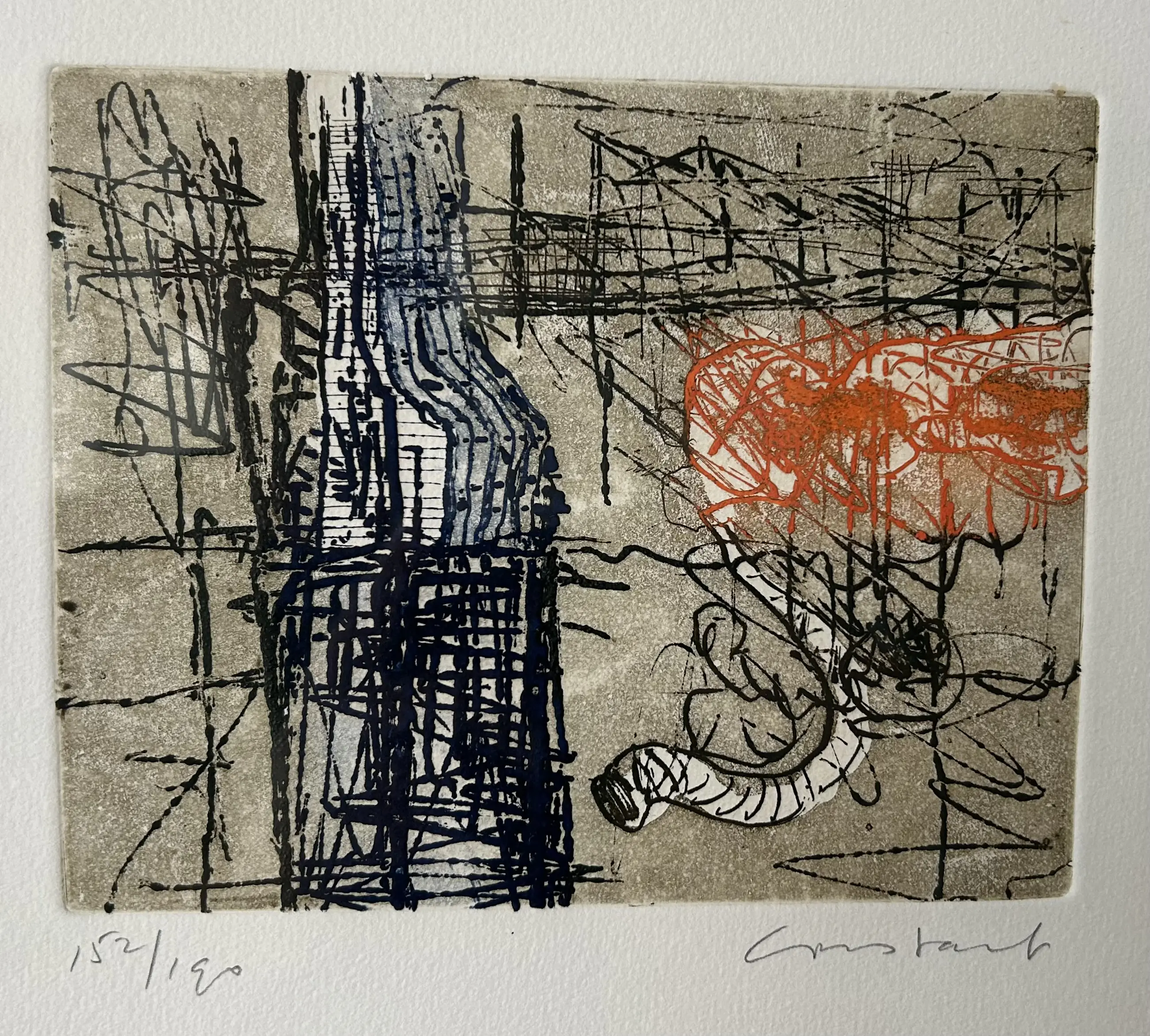 Prachtige ets met aquatint van de beroemde Cobra kunstenaar Constant Nieuwenhuijs op handgeschept papier.