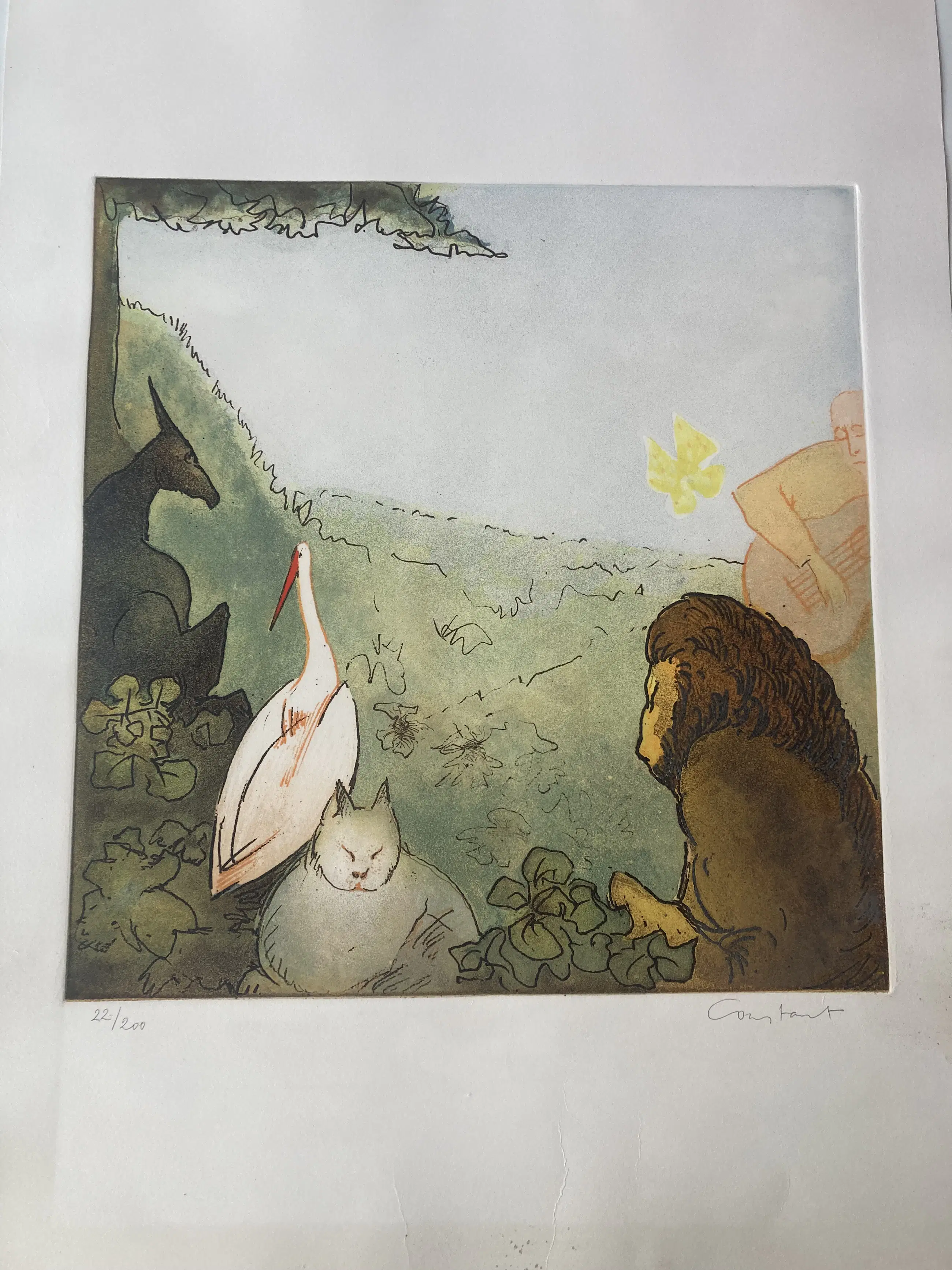 Zeefdruk 22/200, r.o. Gesigneerd, uit de map “20 Nederlandse Hedendaagse Kunstenaars” Uitgegeven door G.I.N. Gallery in Amsterdam 1982, gedrukt door Alberto Serighelli, papier heeft hele lichte vochtschade onderkant.