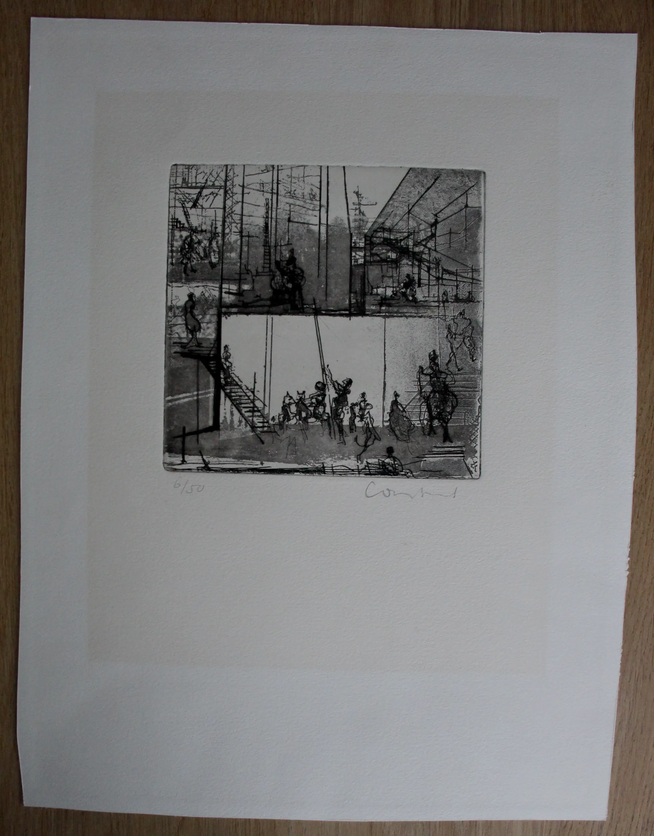 Ets van Constant Anton Nieuwenhuys. Titel: Constructie van een labyrint. Jaar: 1972. Oplage: 6/50. Afmetingen blad: H42 x b32cm. Afmetingen ets: H16 x b16cm. Het werk is rechts onder gesigneerd door de kunstenaar. De authenticiteit van het aangeboden werk wordt volledig gegarandeerd. Een certificaat van echtheid kan, op aanvraag worden gemaild.