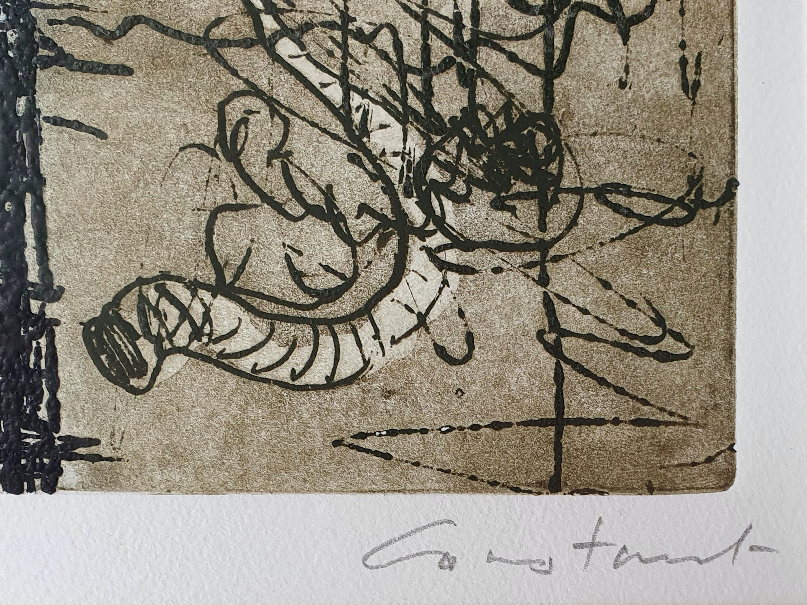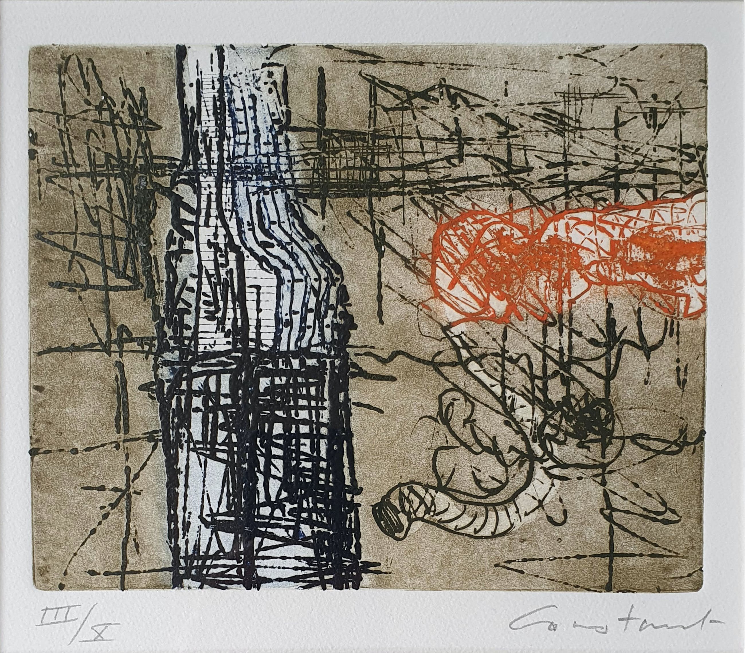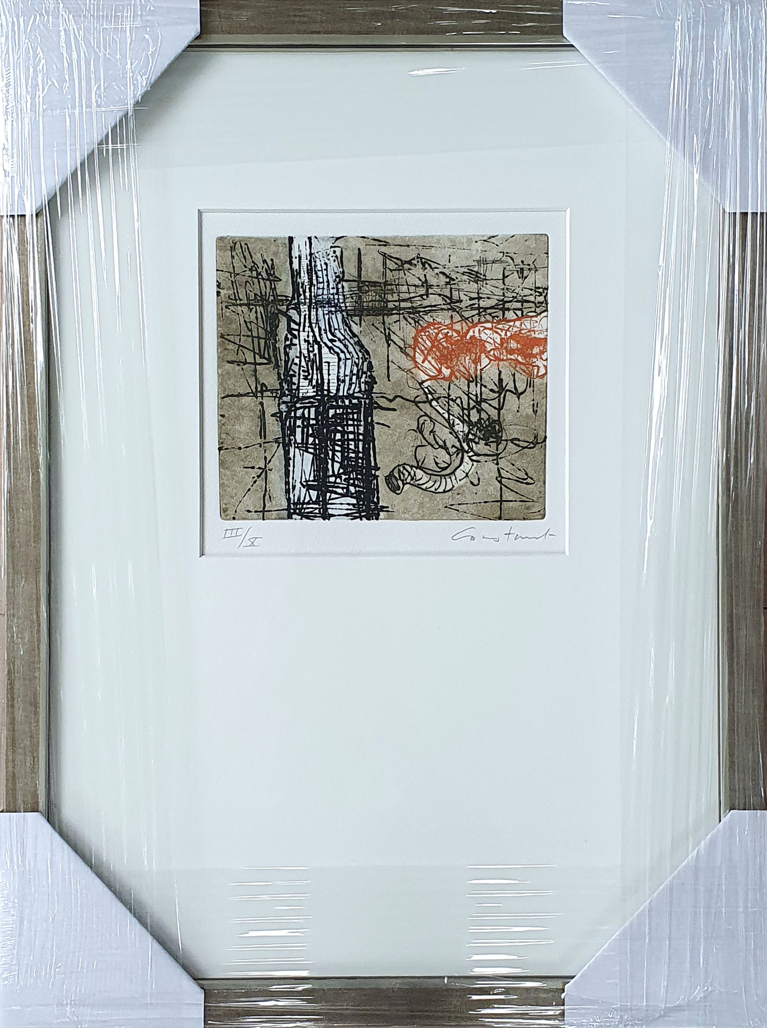 Prachtige ets met aquatint van de beroemde Cobra kunstenaar Constant Nieuwenhuijs op handgeschept papier.