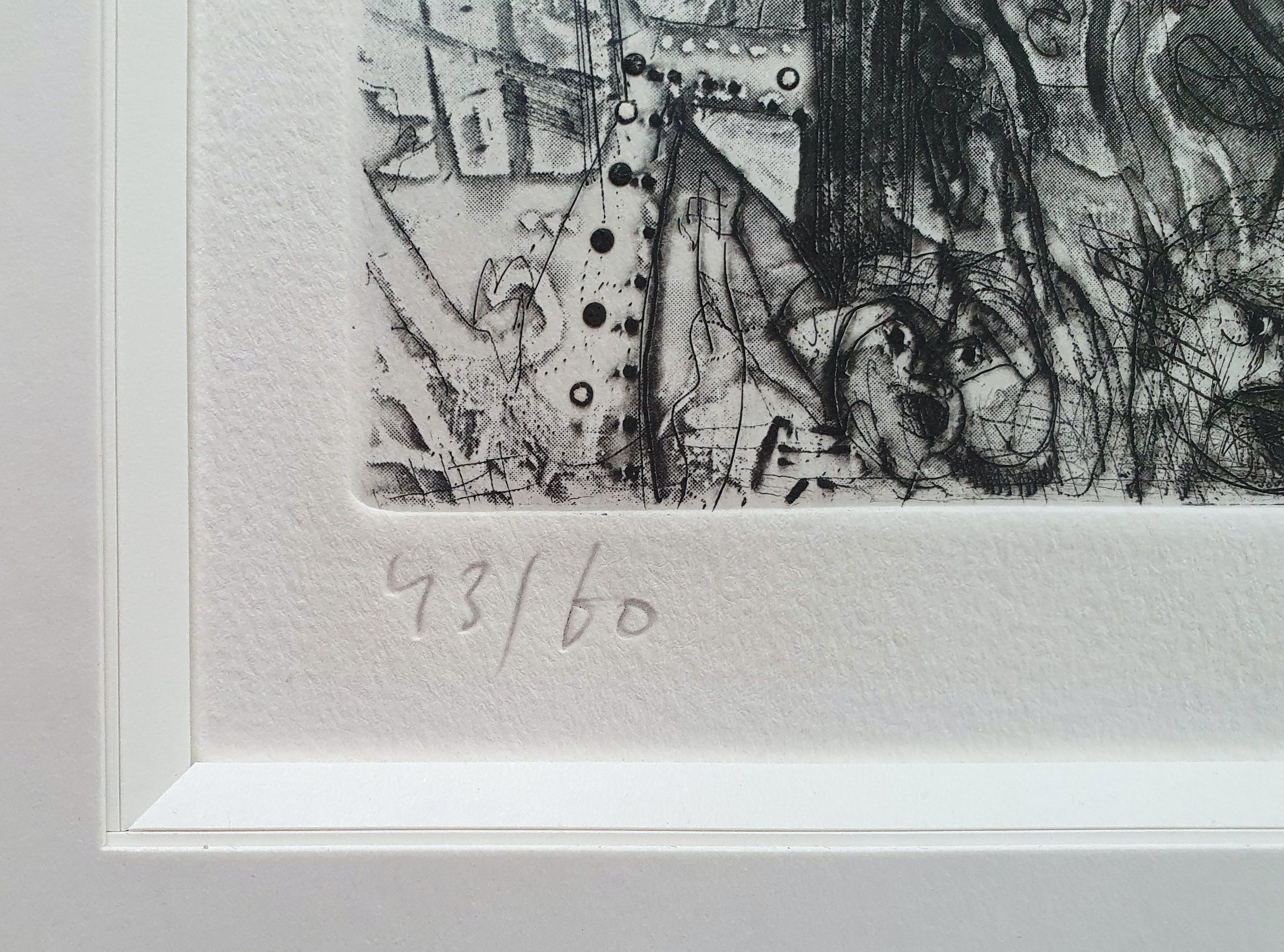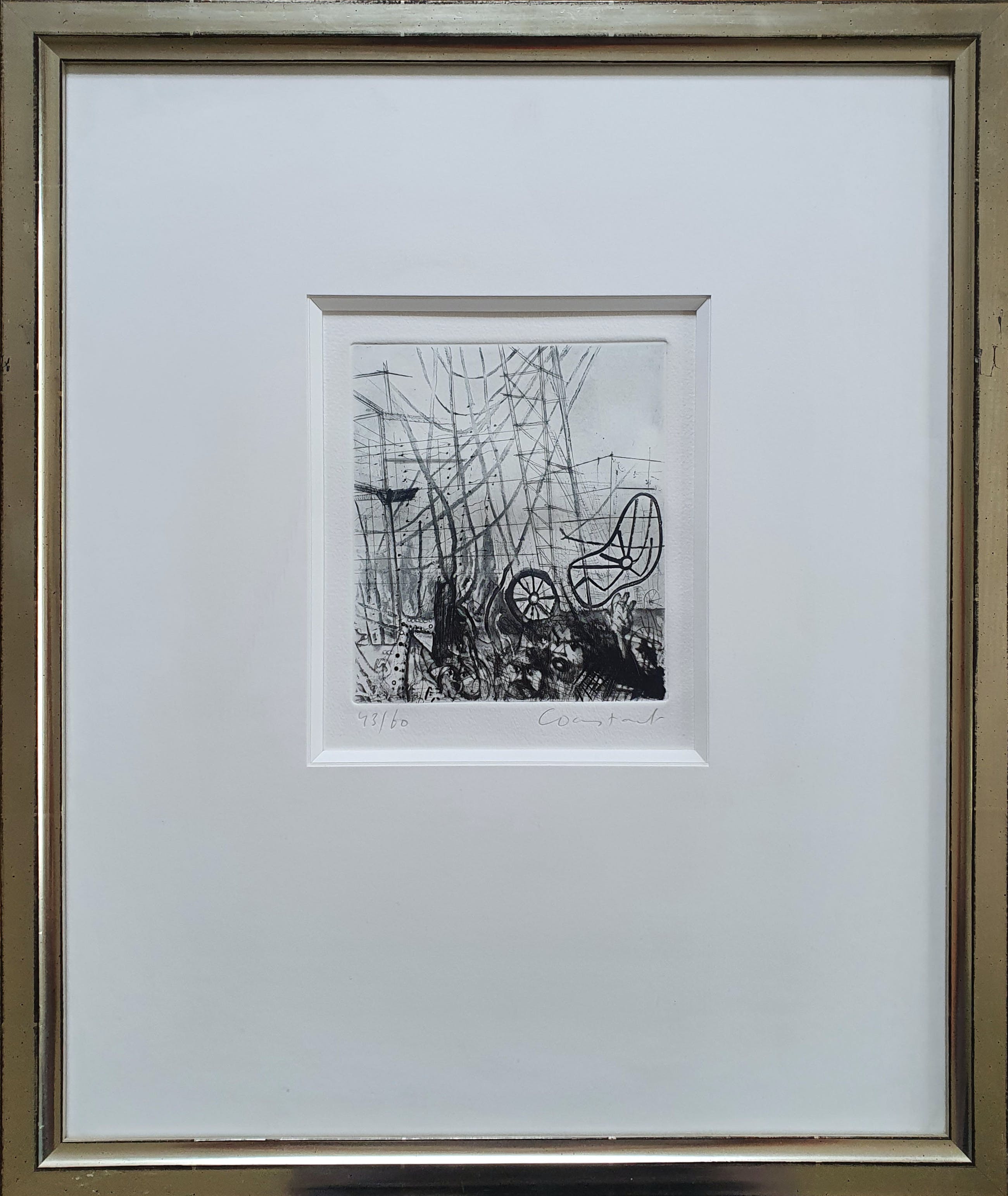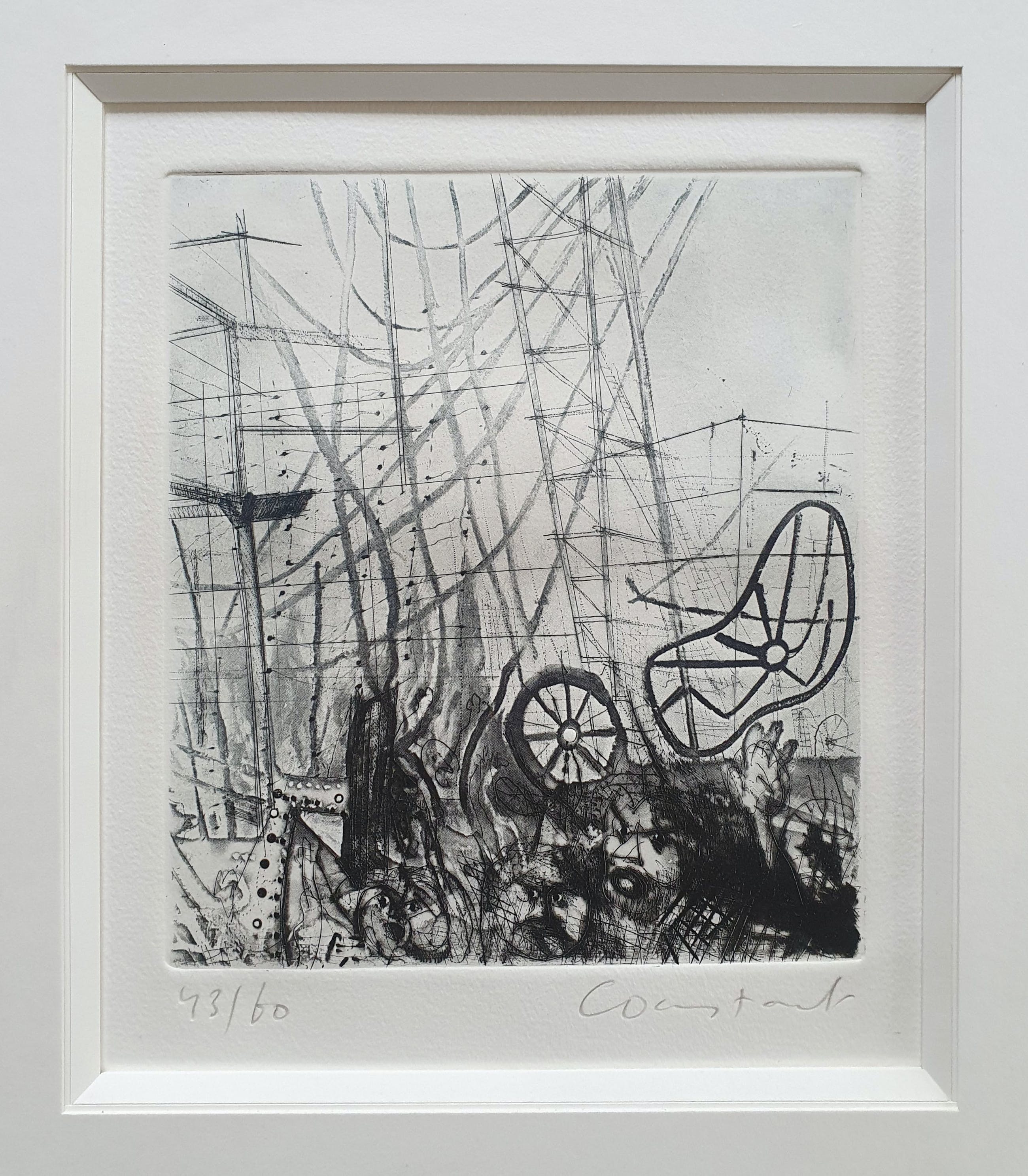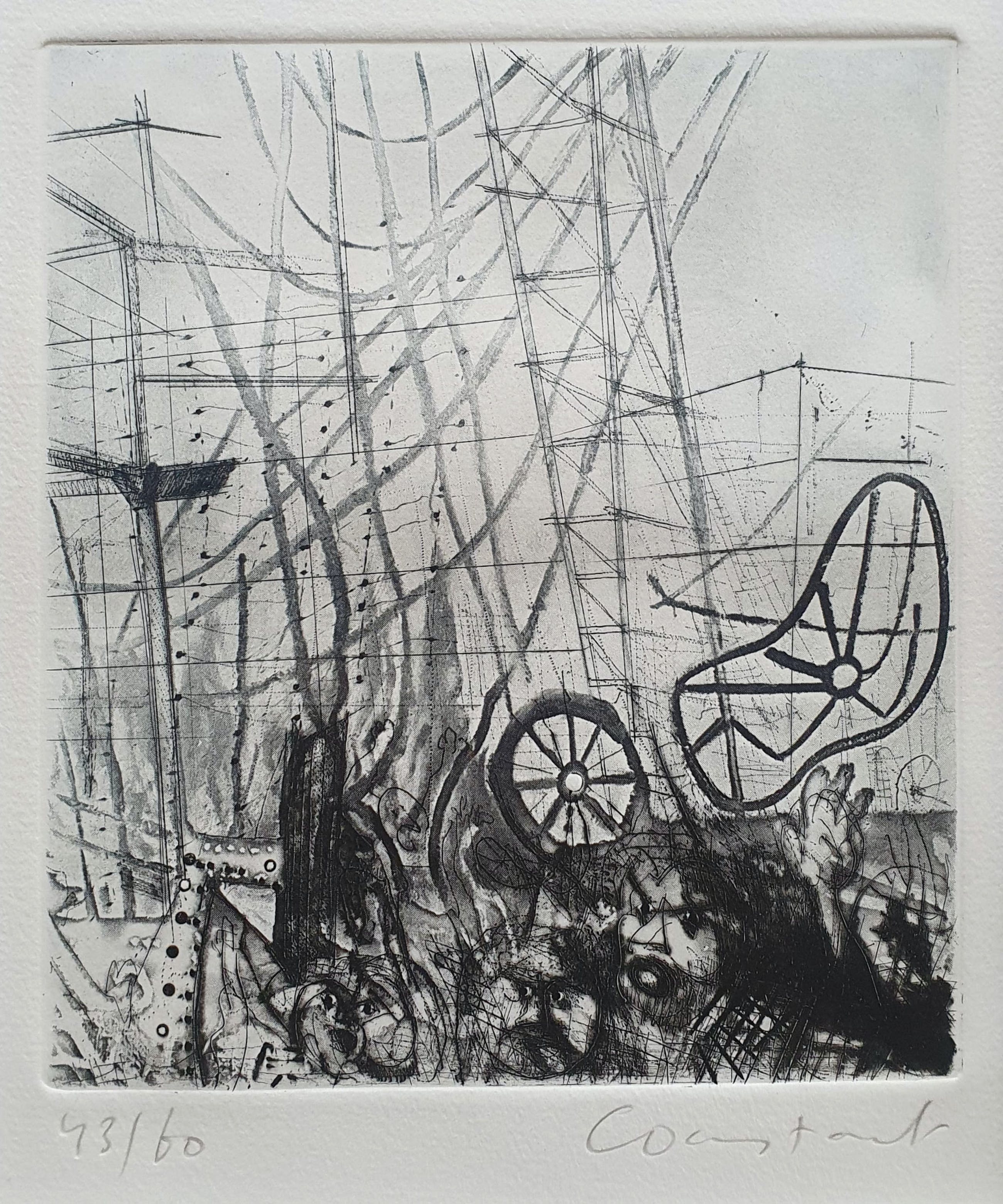 Prachtige droge naald ets met van de beroemde Cobra kunstenaar Constant Nieuwenhuijs op handgeschept papier. De ets komt uit een kleine oplage van 60 stuks. Dit is nummer 43.