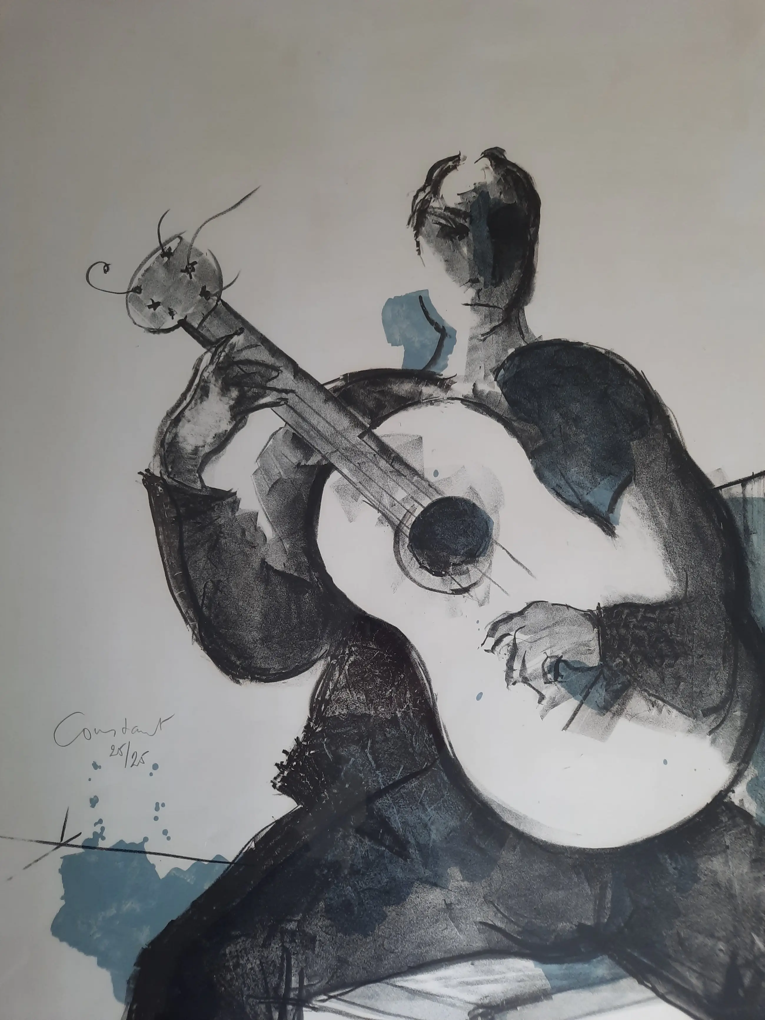 Mooie litho van Constant. Afgebeeld de flamenco gitarist Niño Ricardo. Hij speelde een belangrijke rol in de ontwikkeling van de flamencogitaar.