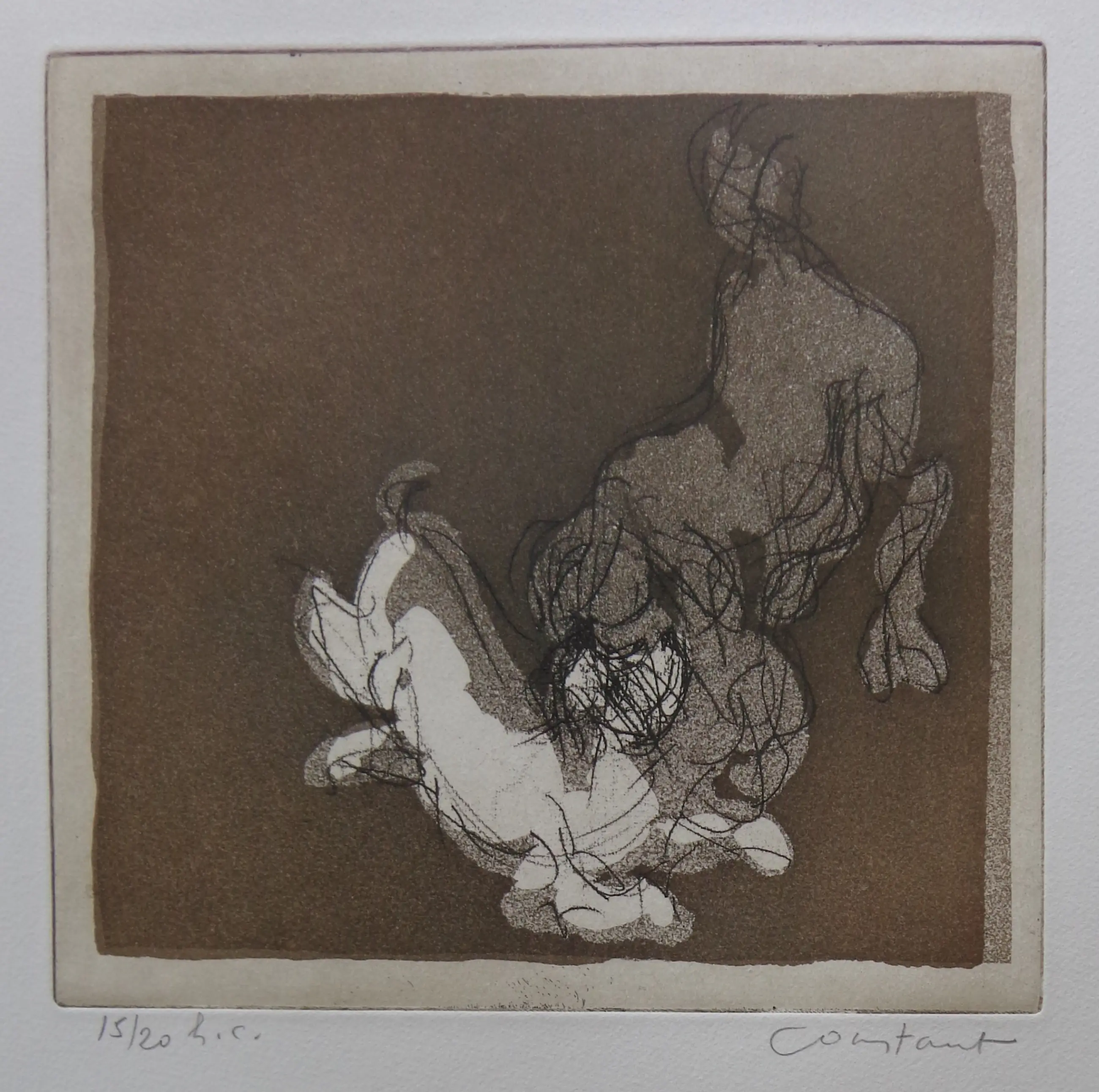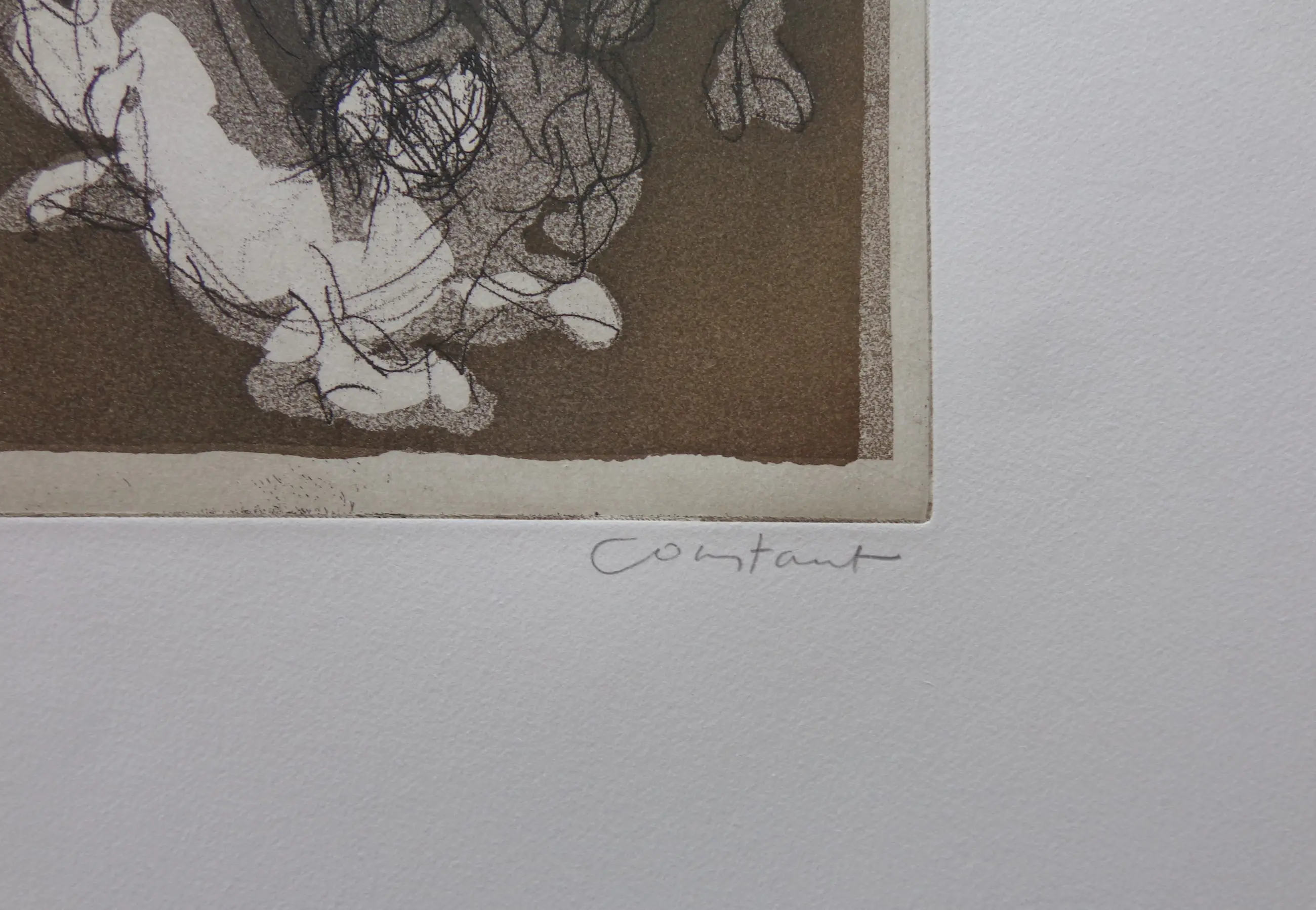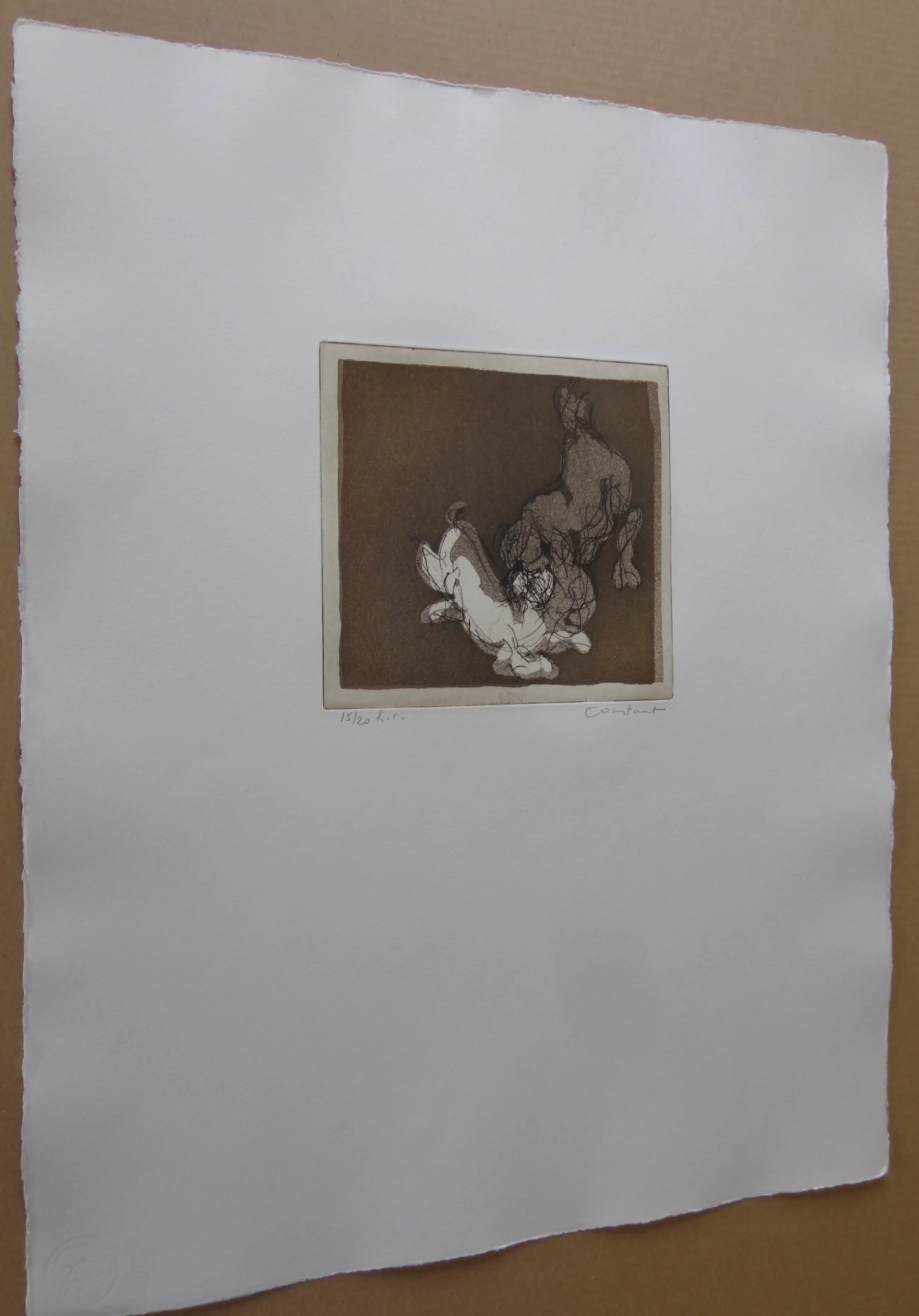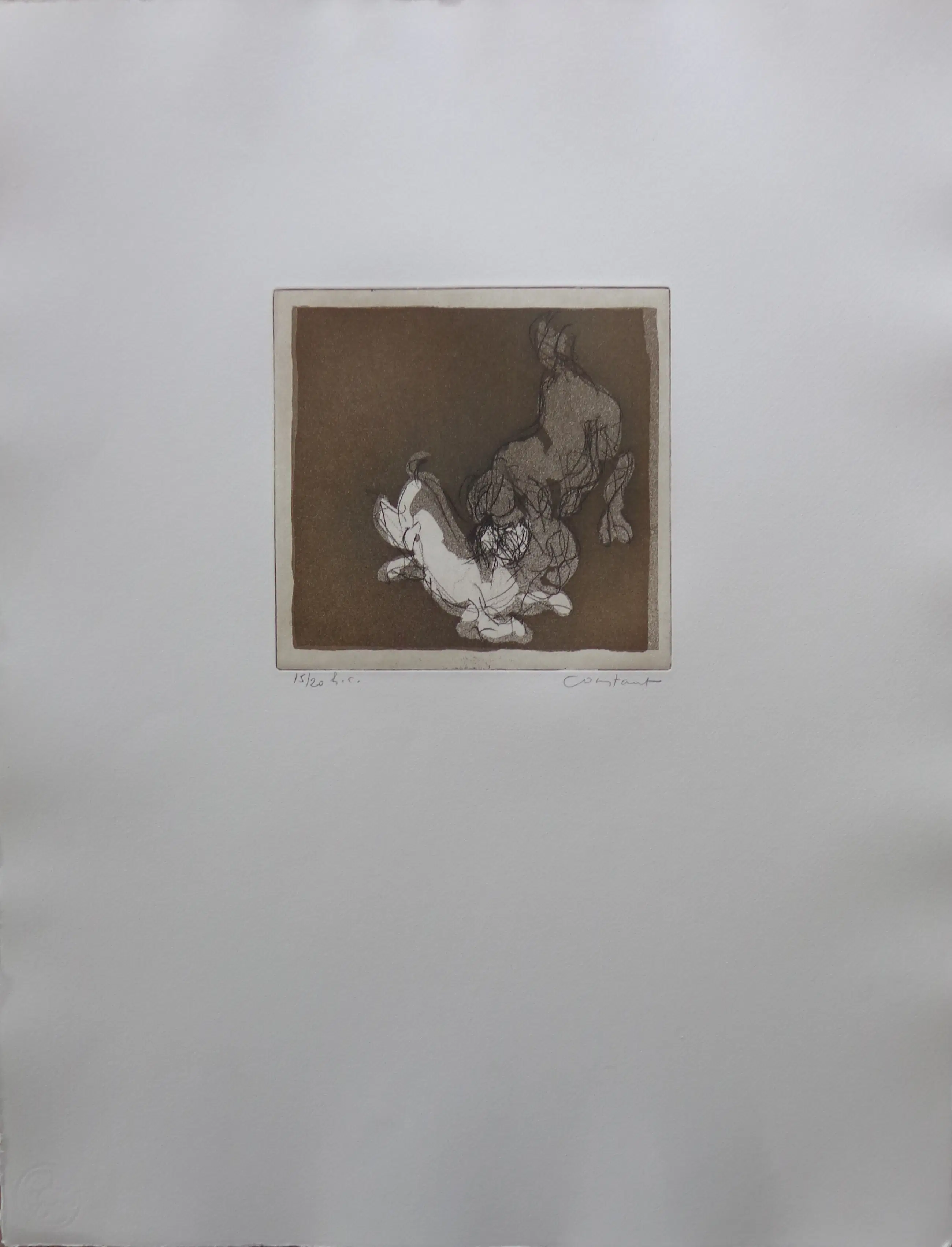 Constant (1920-2005). Honden. Kleurets op papier. Gesigneerd met potlood. Ex.nr. h.c. 15/20 (hors commerce op 20 ex.). Blad: 65x50cm. Zeer goede staat.