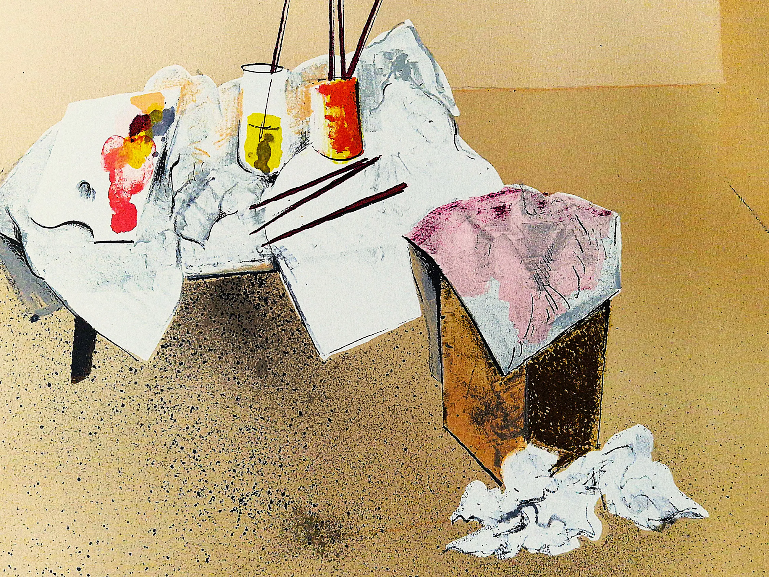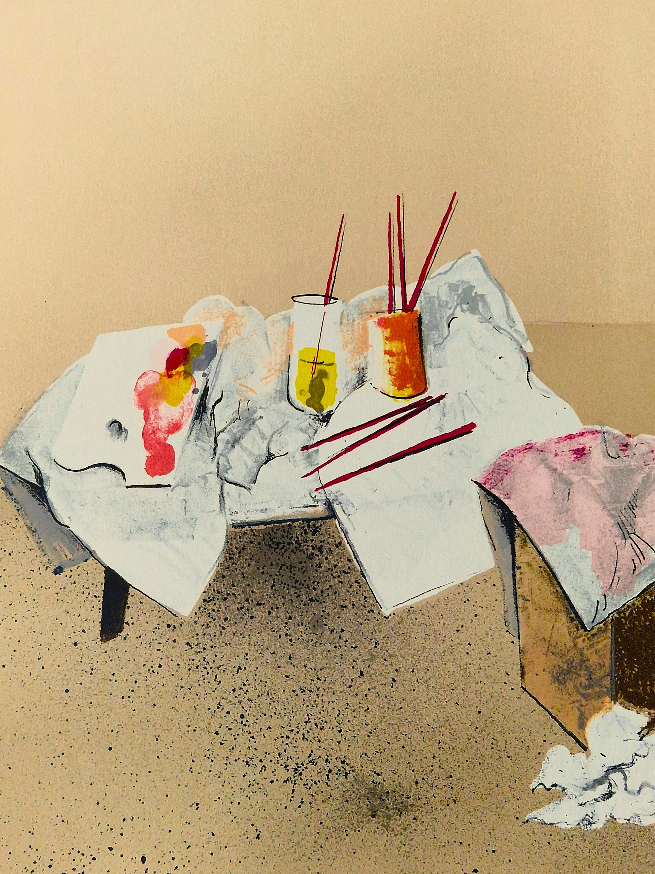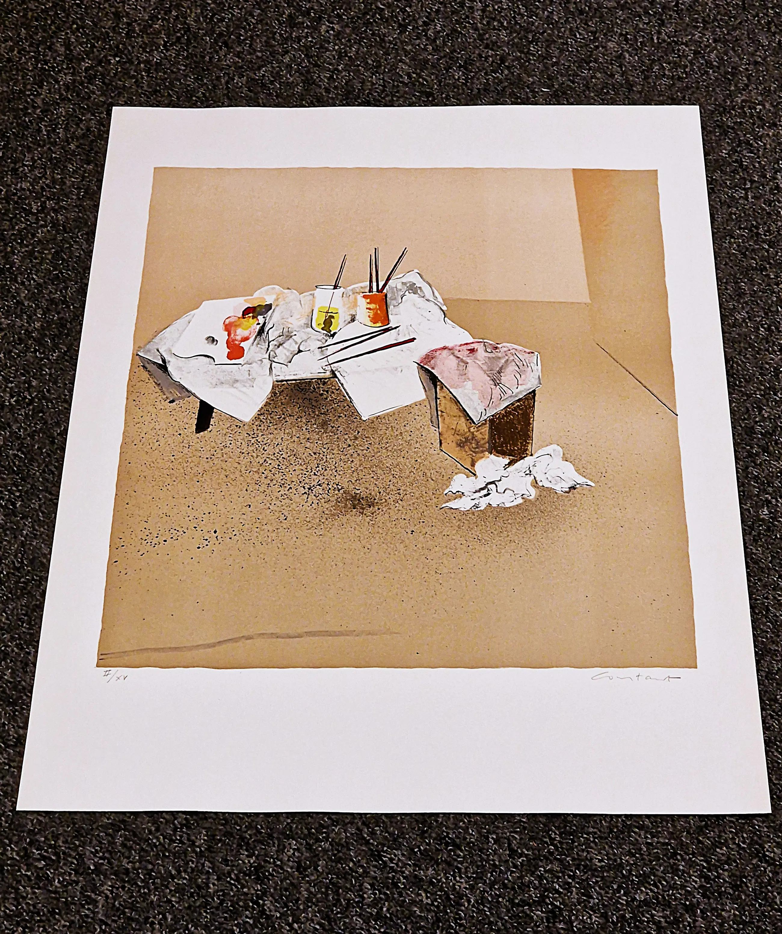 - Dit bijzonder fraaie kleurenlitho was in 1982 onderdeel van het portfolio "Stillevens" (uitgeverij Polychrome) die in een voor-oplage van slechts 15 exemplaren aan de meewerkende kunstenaars door de drukker beschikbaar werd gesteld.