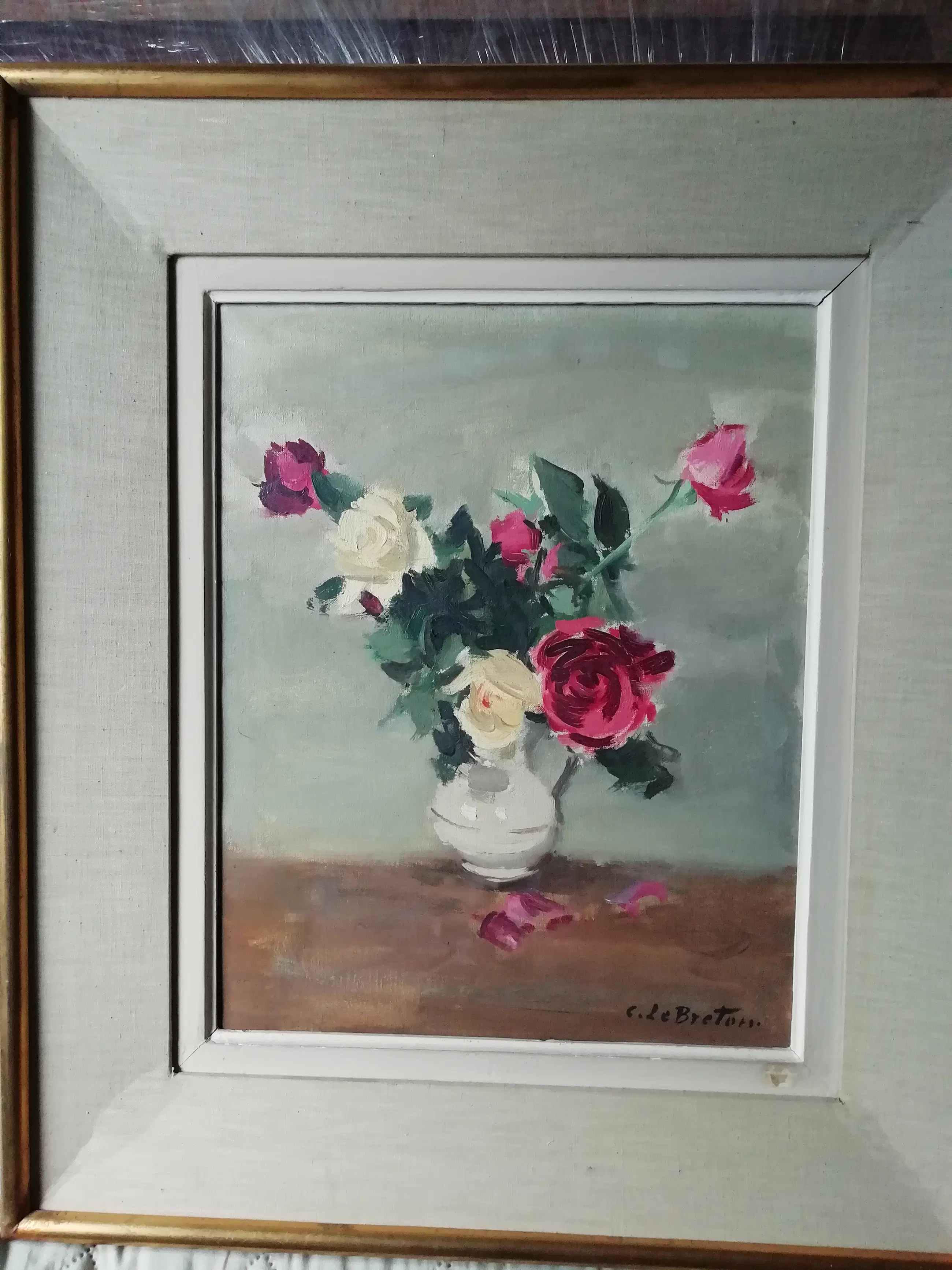 De afmetingen van 62x52 cm zijn inclusief lijst. Zonder lijst is het ongeveer 45x35 cm. Olieverf op doek Achterkant van de sticker Galerij Keulen De kunstenaar leefde van 1895 tot 1985. De datum waarop het schilderij is gemaakt, is onbekend.