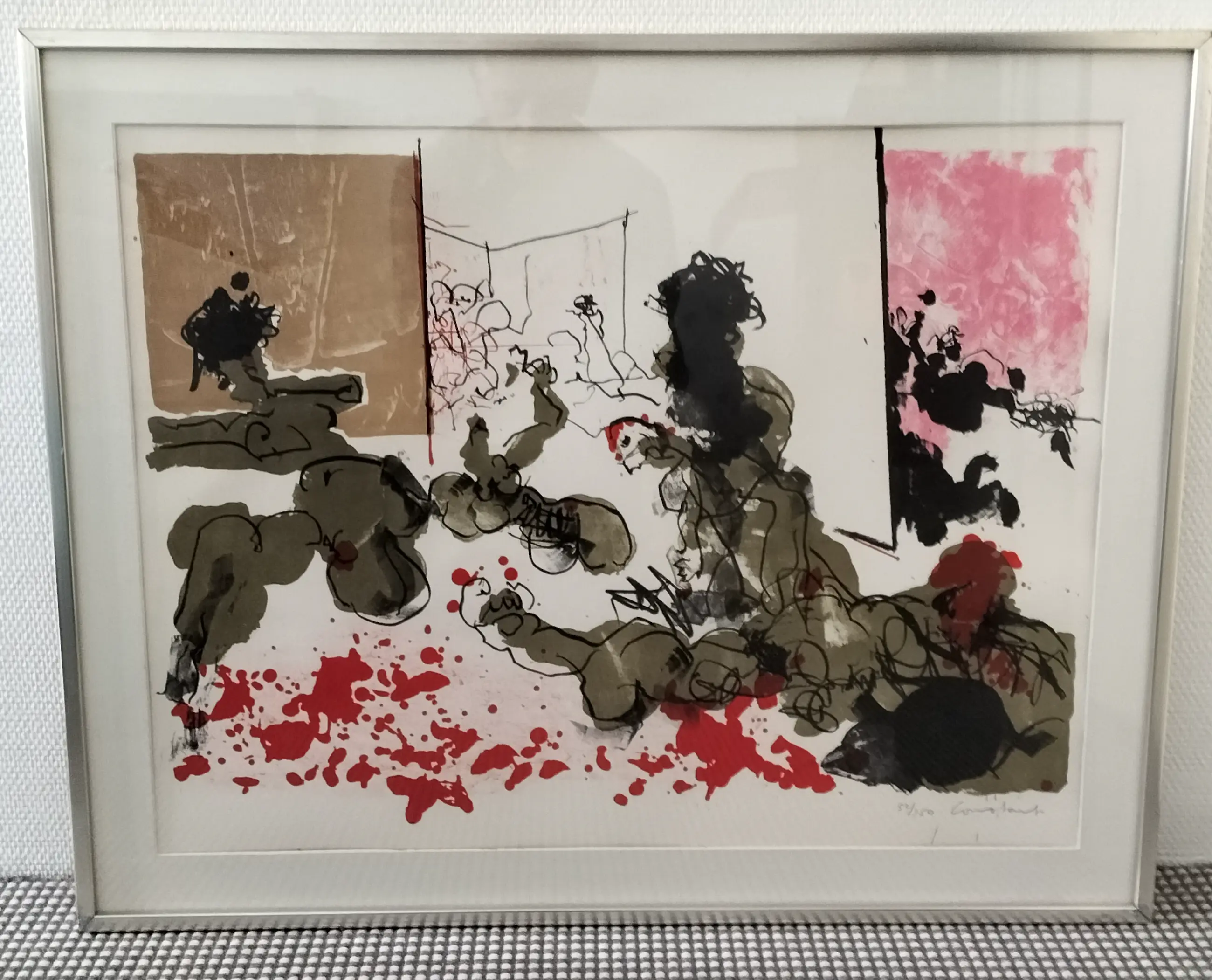 Grote litho. Handgesigneerd en genummerd. In oorspronkelijke inlijsting.