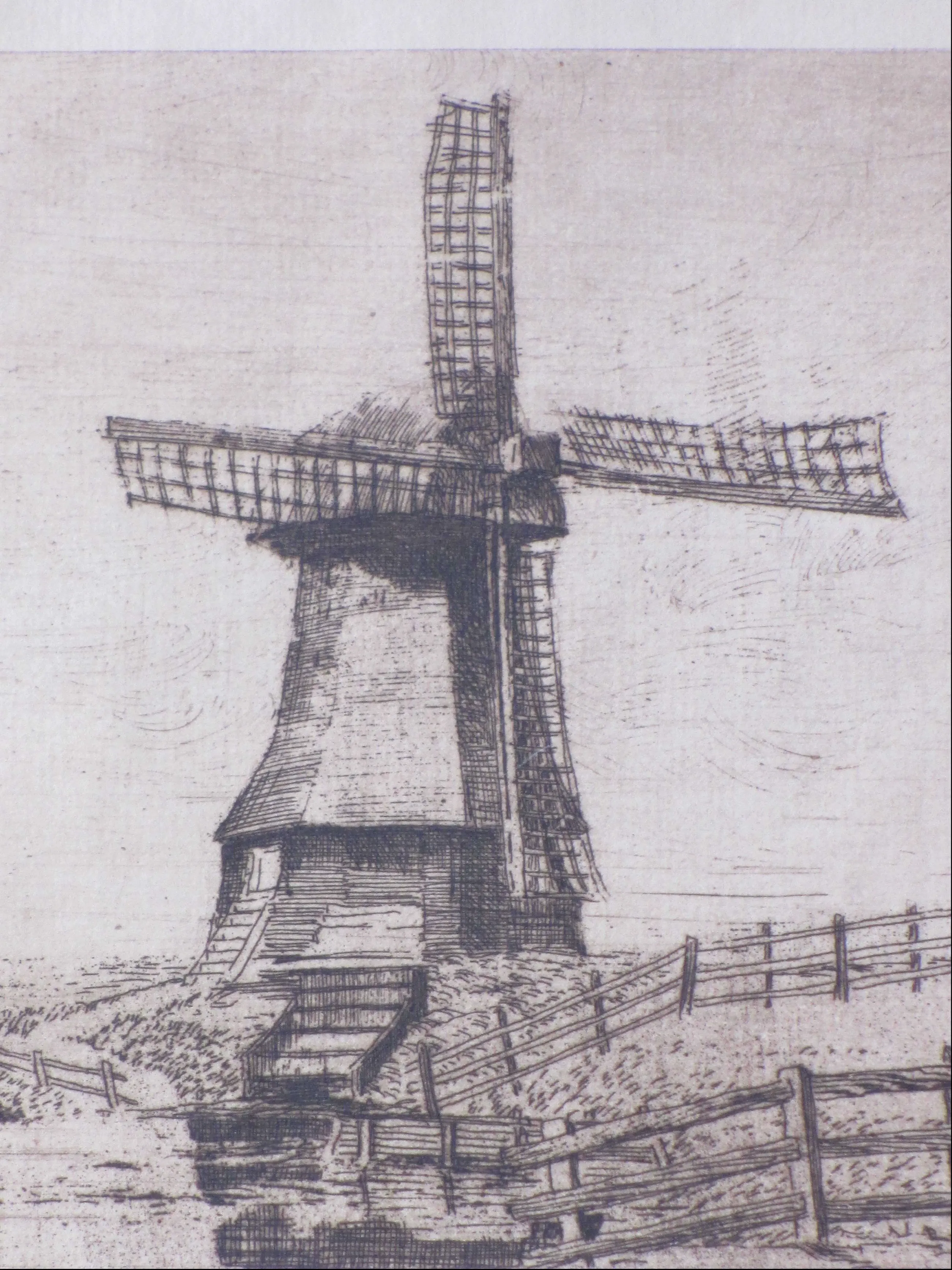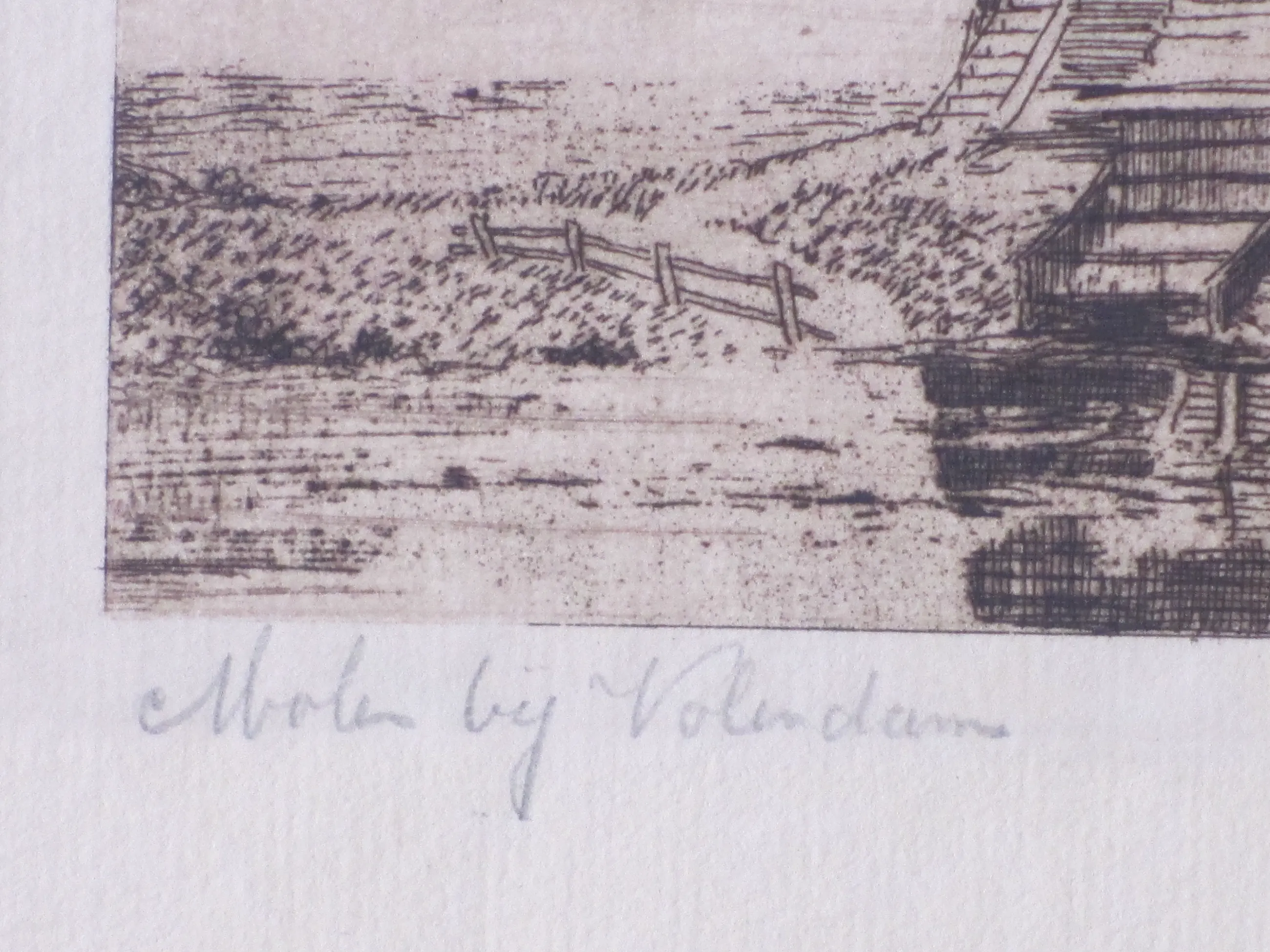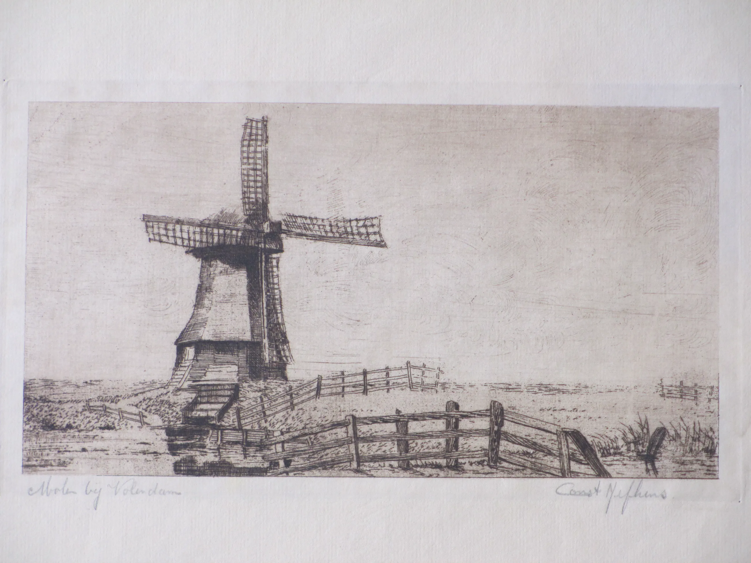 Ets door Constant Nefkens Voorstelling van een molen bij Volendam Losbladig, beeldmaat 15x27.5, bladmaat 26x41 Gesigneerd in potlood r.o.: 'Const Nefkens' Getiteld in potlood l.o.: 'Molen bij Volendam' Authenticiteit volledig gegarandeerd