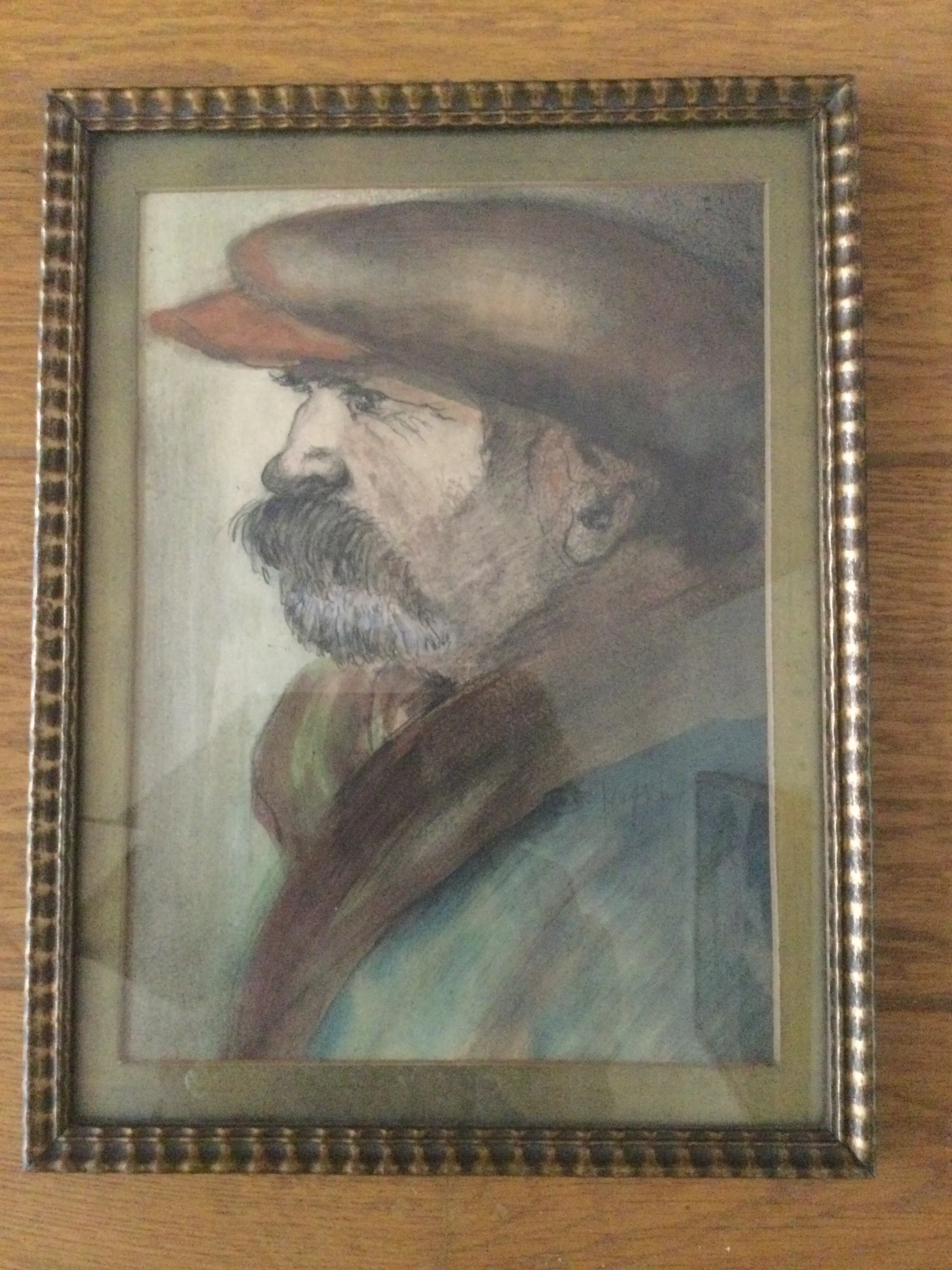 Aquarel met potlood. Fraai, stoer portret. Constant Nefkens leefde van 1887-1929. Hij werkte en woonde veel in Brabant, de afbeelding lijkt het portret van een buitenman. Het werk is mooi van kleur.
