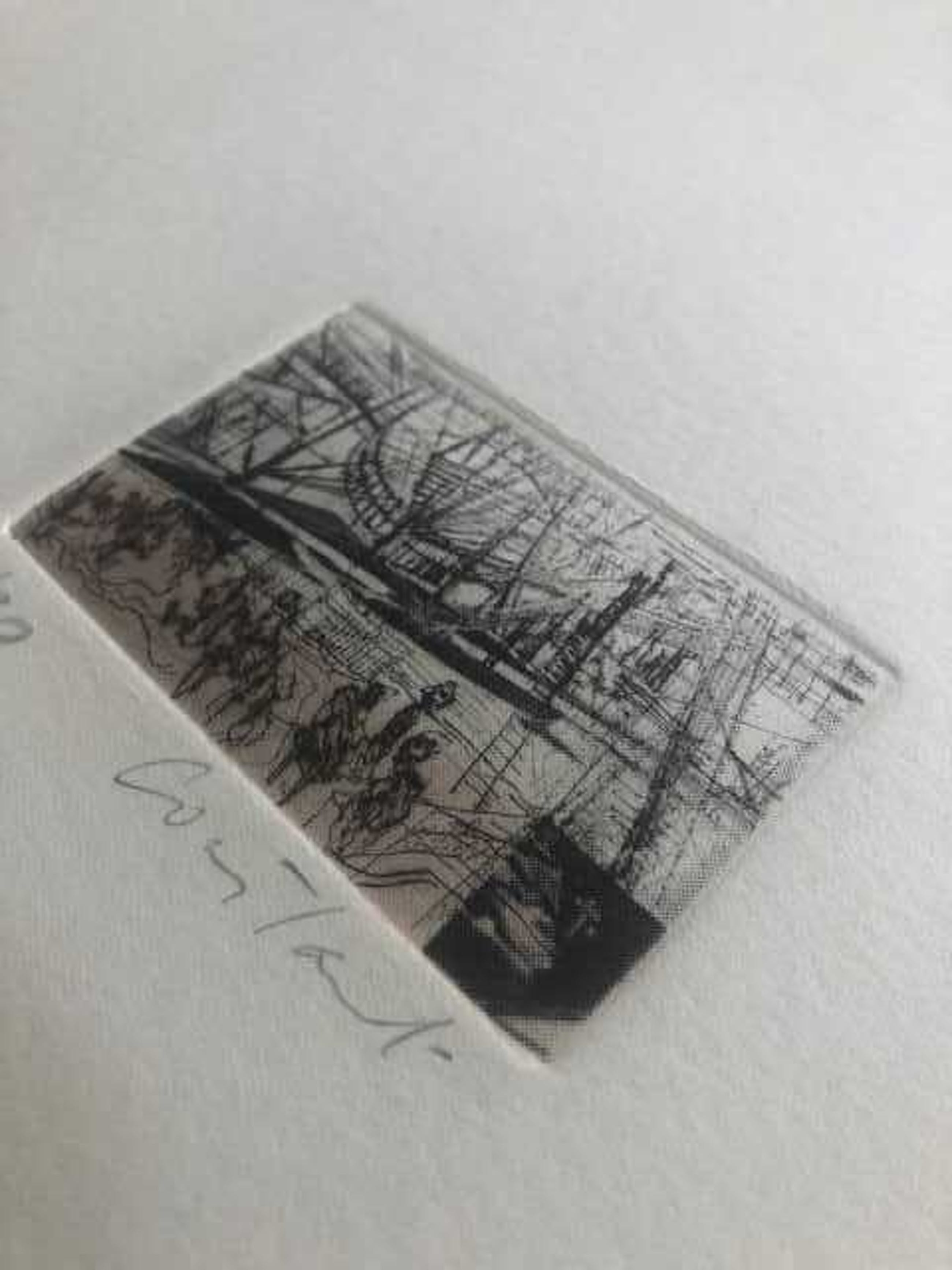Constant - Ruimtecircus - 1970 Ets en droge naald over clichéplaat Maten blad: 54 x 36 cm Maten ets: 8,1 x 5,1 cm Oplage: 50 Dit item: 41/50 Conditie: goed. Groot blad met ruime marges. Vlek op het blad in de marge. Afbeelding goed. Referentie: " Constant Grafiek" nummer 76