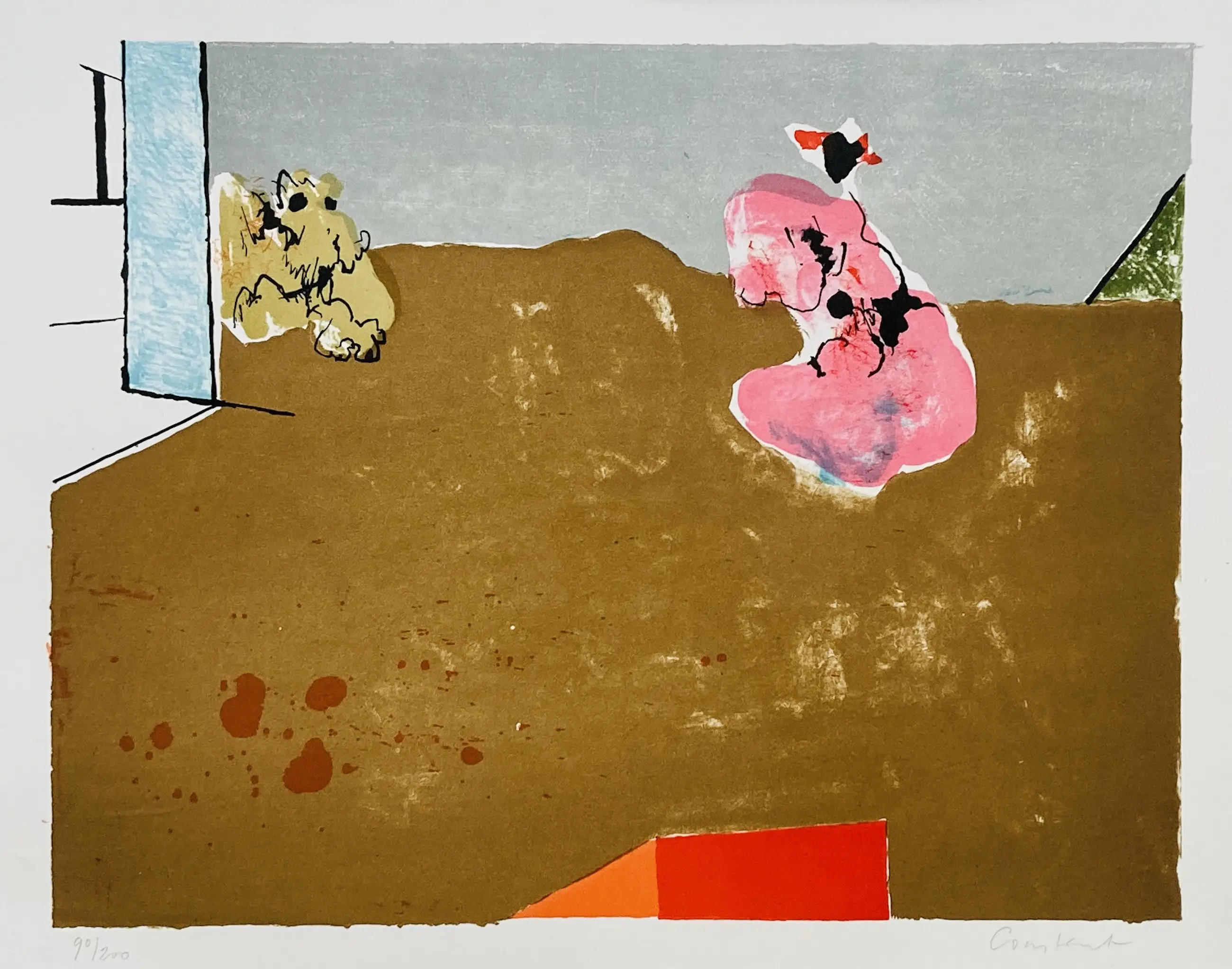 Een prachtige lithografie van de Nederlandse kunstenaar Constant (1920 - 2005). Het werk verkeert in uitstekende conditie en is handgesigneerd door de kunstenaar. De litho is ingelijst in een gebruikte lijst, met minimale beschadiging. Kan zo aan de muur.