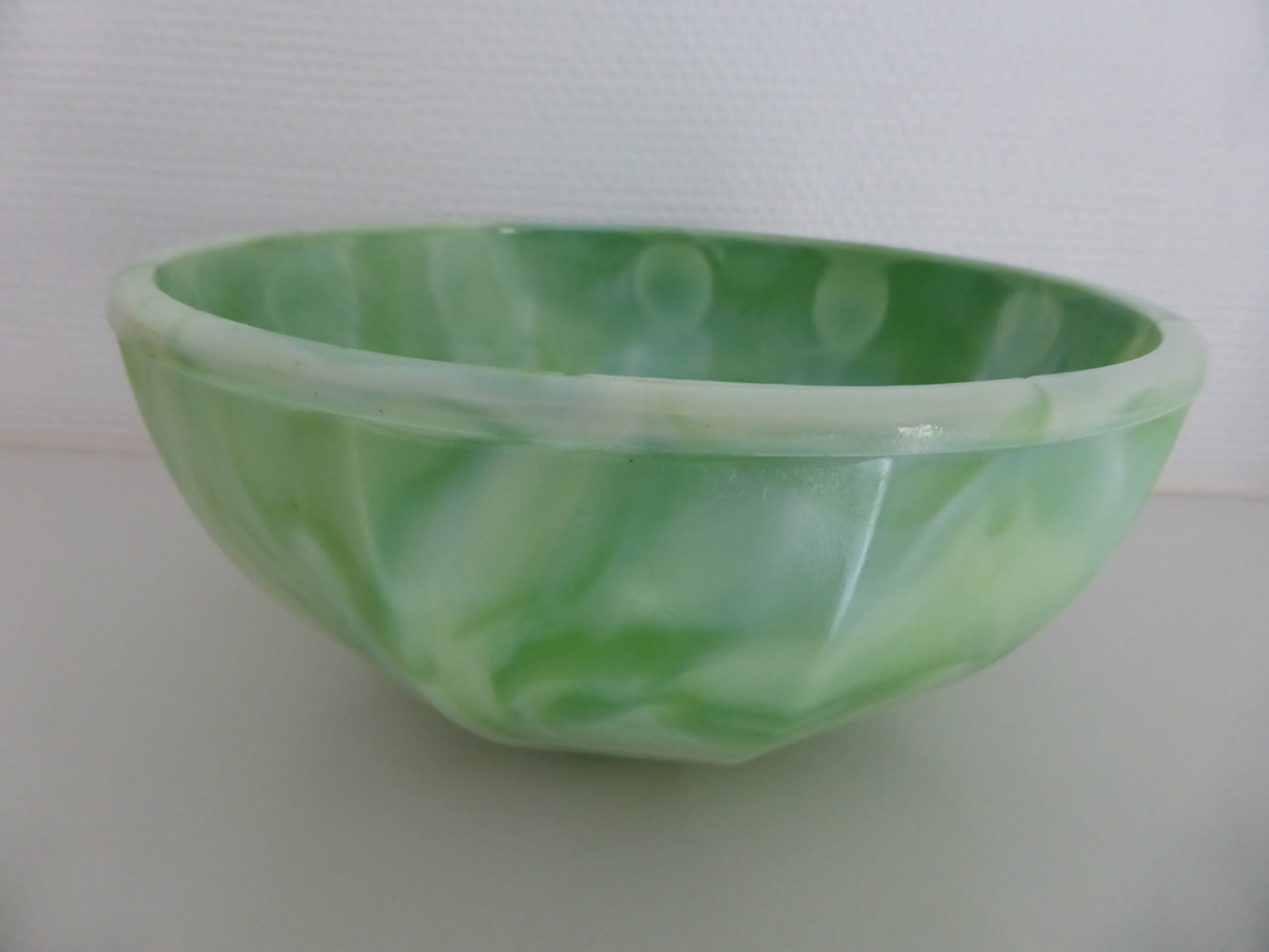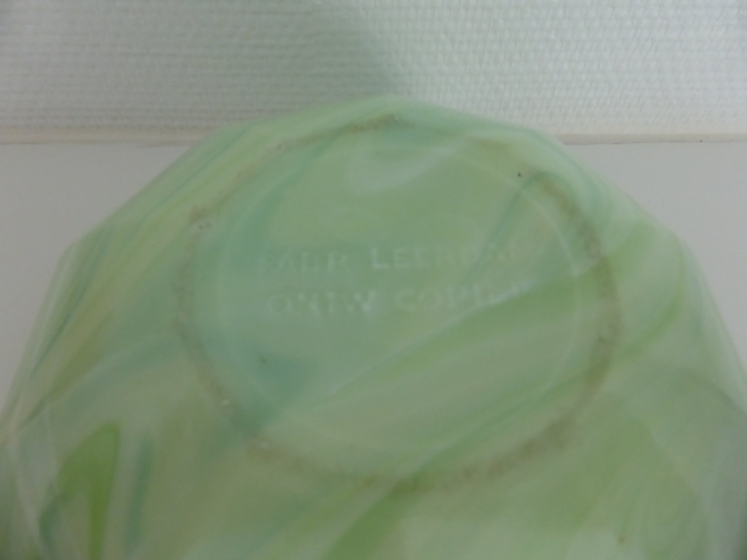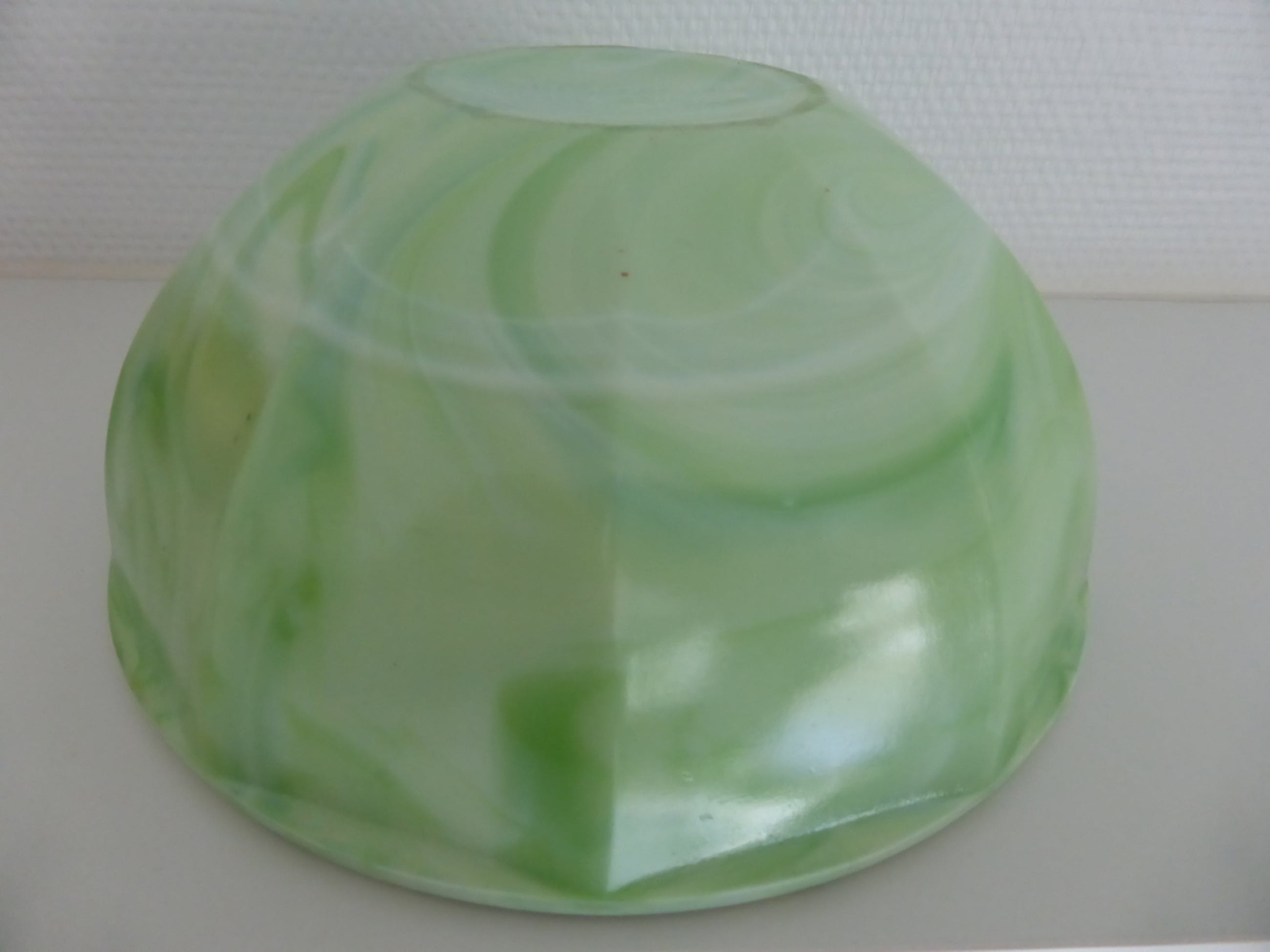 Mooie en bijzondere schaal, persglas marmer met ribben aan buitenzijde. gemerkt aan onderzijde