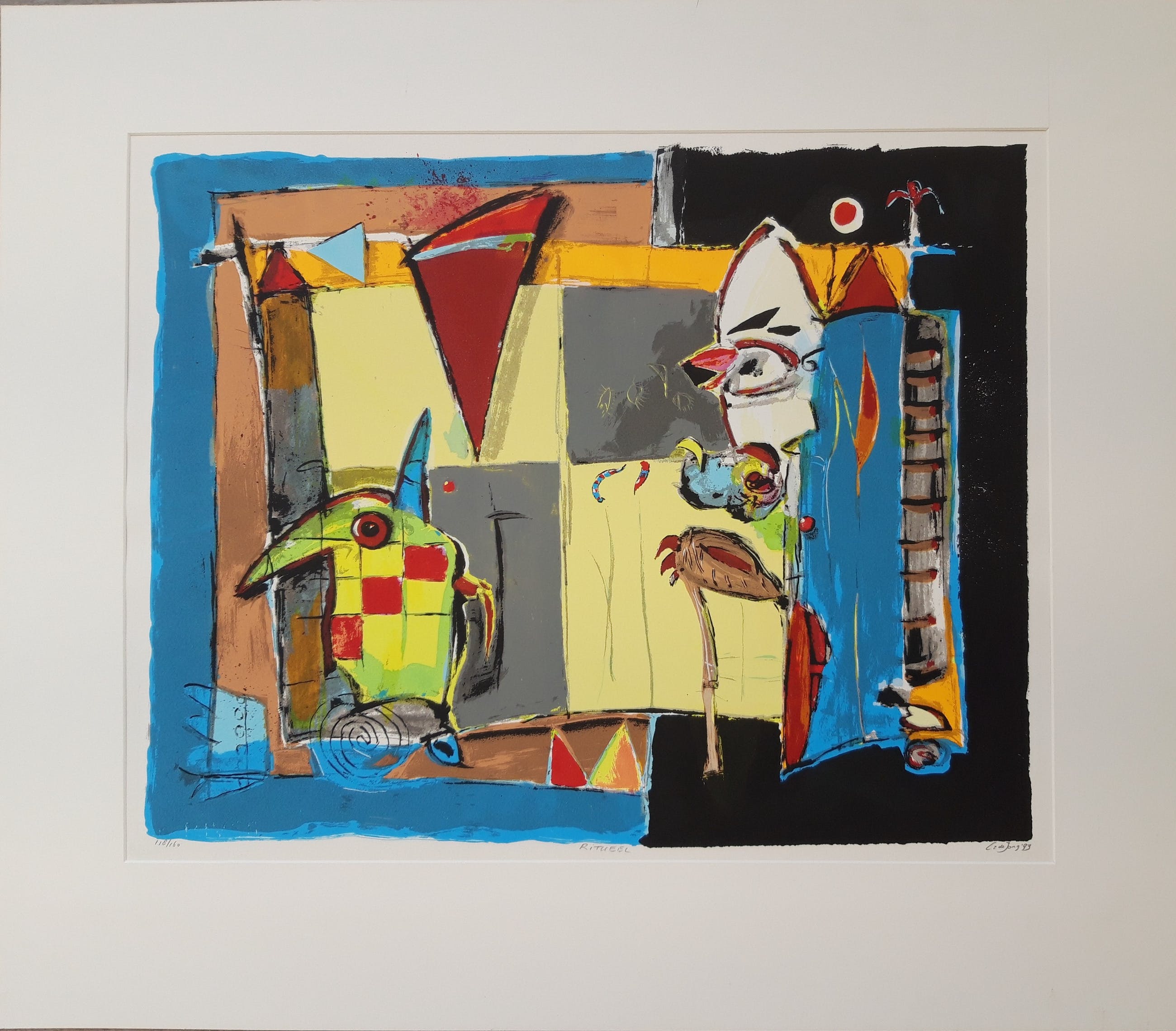 Wil je het passe-partout erbij dan graag ophalen. Zonder passe-partout wordt het kunstwerk in kartonnen koker verzonden.
