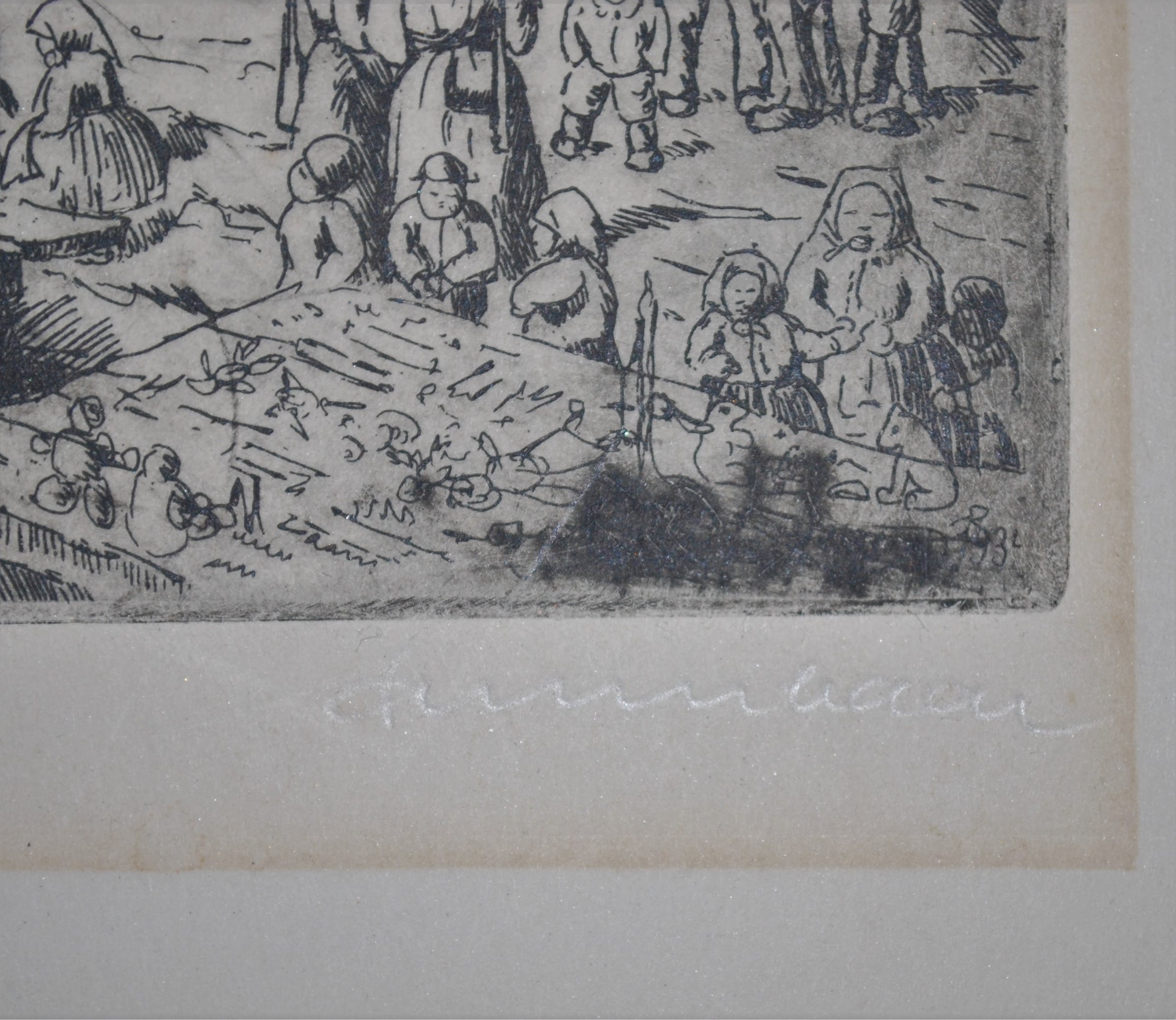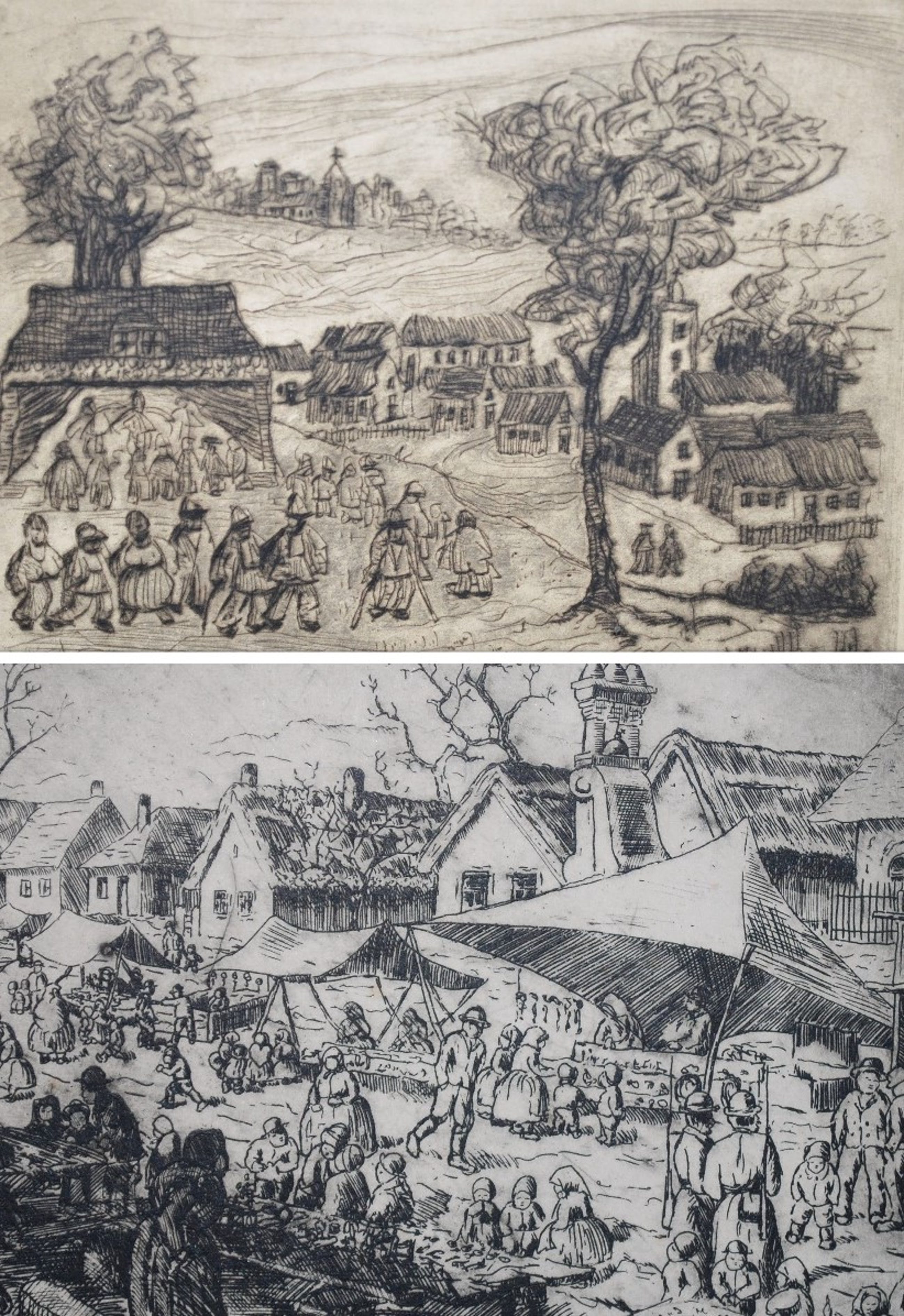 Daarbij een onbekend gesigneerde ets, mogelijk ook van de Wolff. Plaatrand 13x17.5 cm, los blad: 23x25 cm. In goede gebruikte staat.