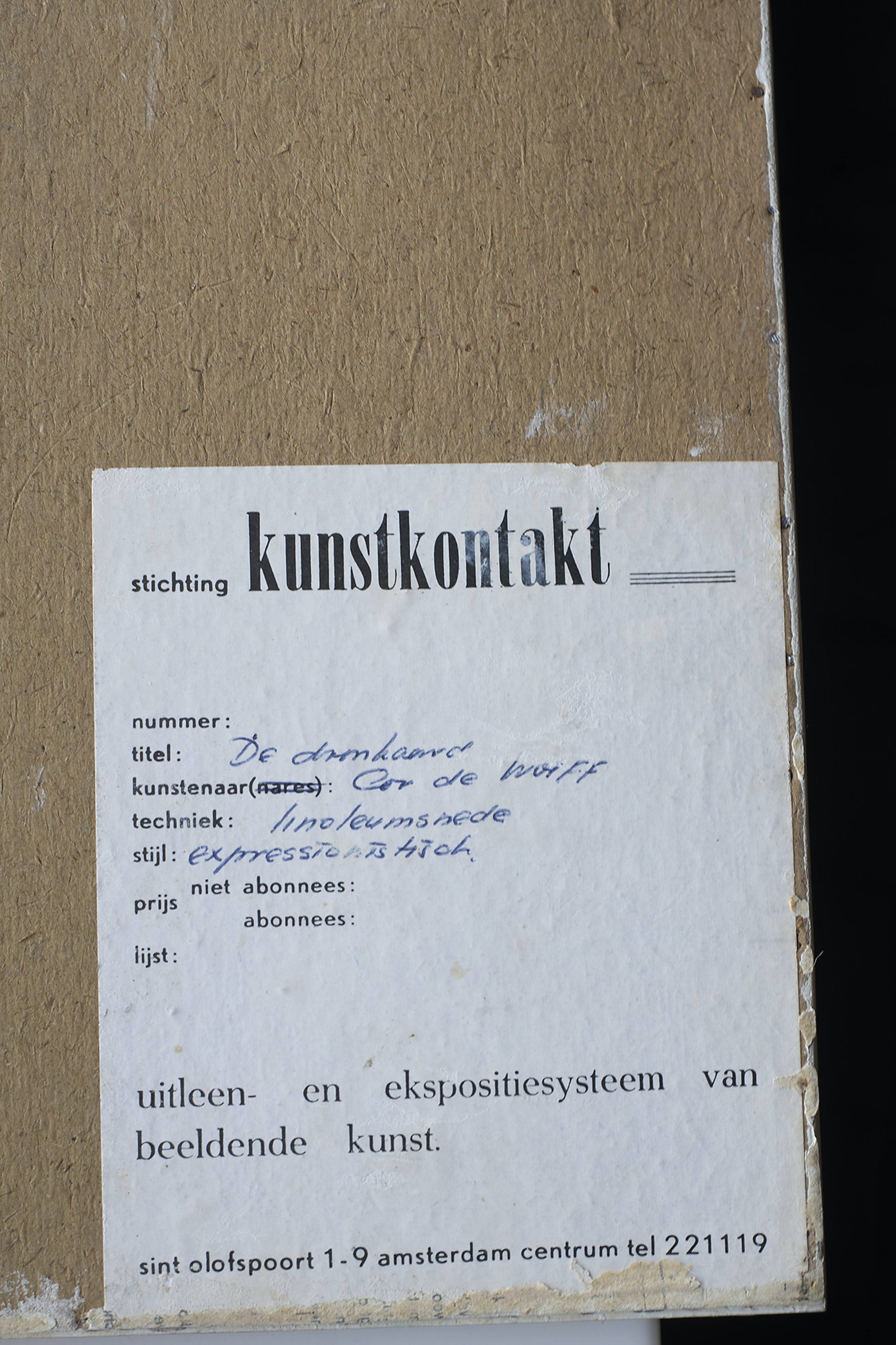 Het werk is af te halen op locatie. Als koper dient u zelf verpakkingsmateriaal mee te nemen. De locatie is: Deventer, Nederland