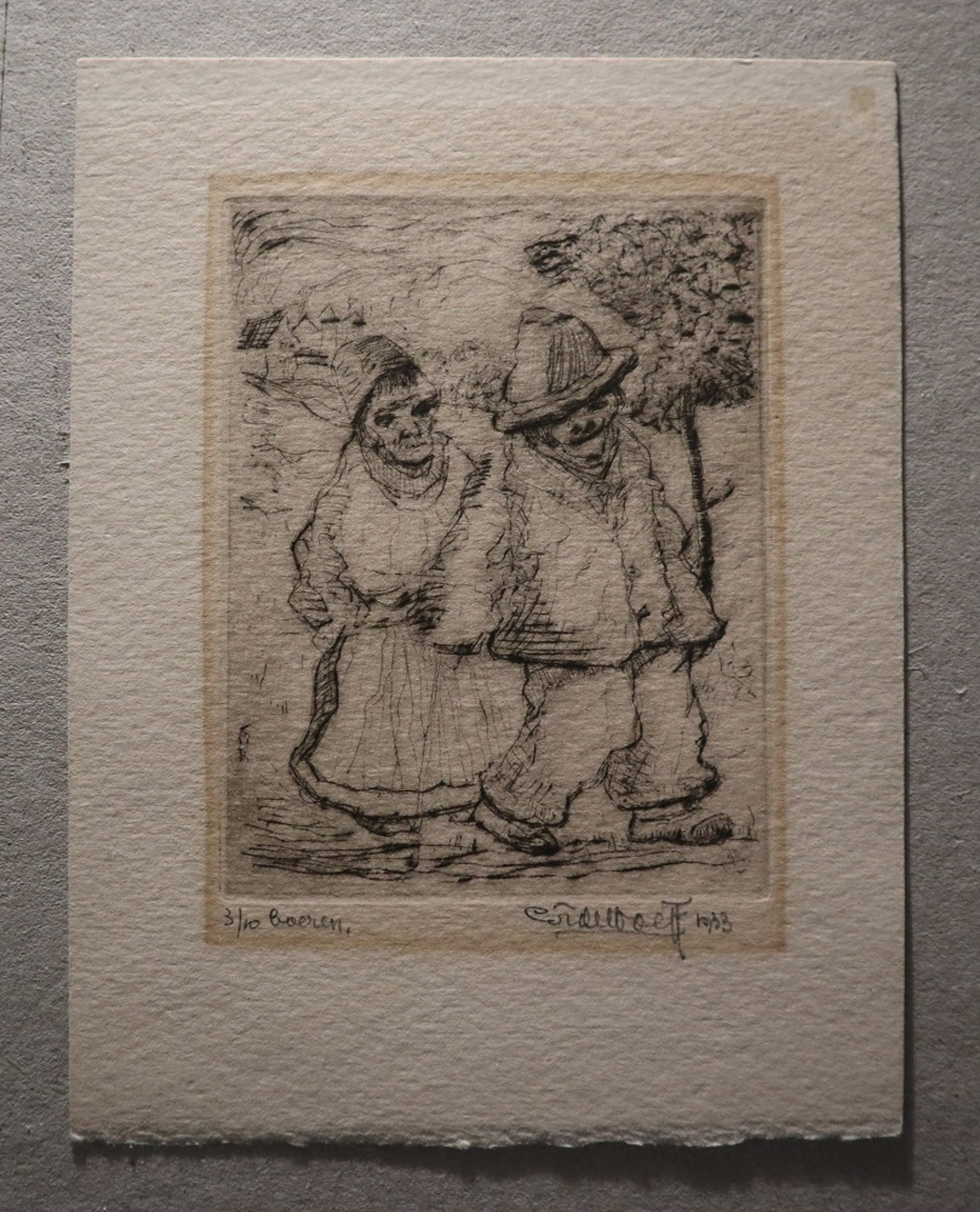 Mooie ets van de markante kunstenaar. Gesigneerd, genummerd en gedateerd in potlood.