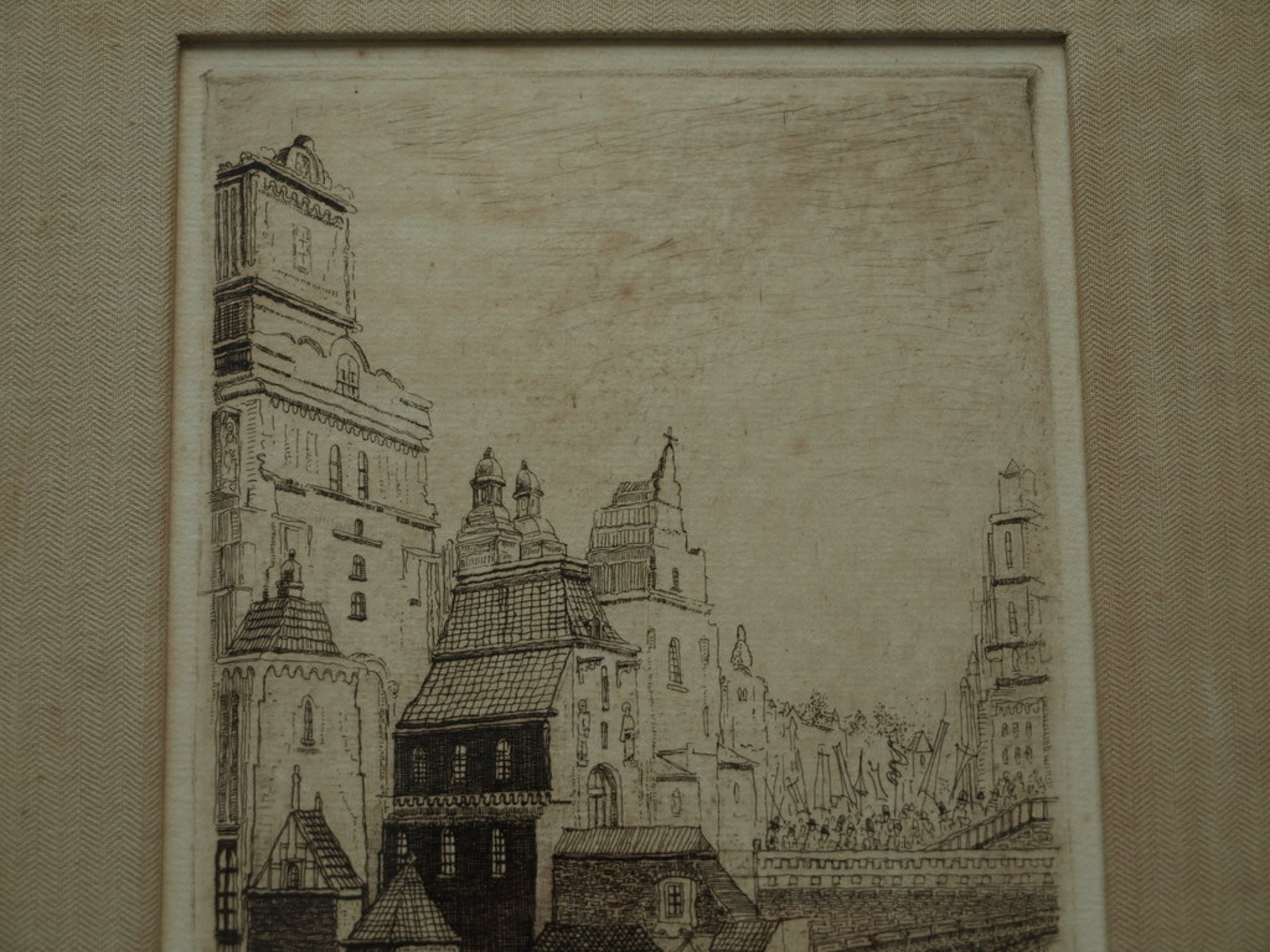 Conditie: Het papier van de ets en het passe-partout zijn ‘vergeeld’. De lijst heeft slijtplekjes.