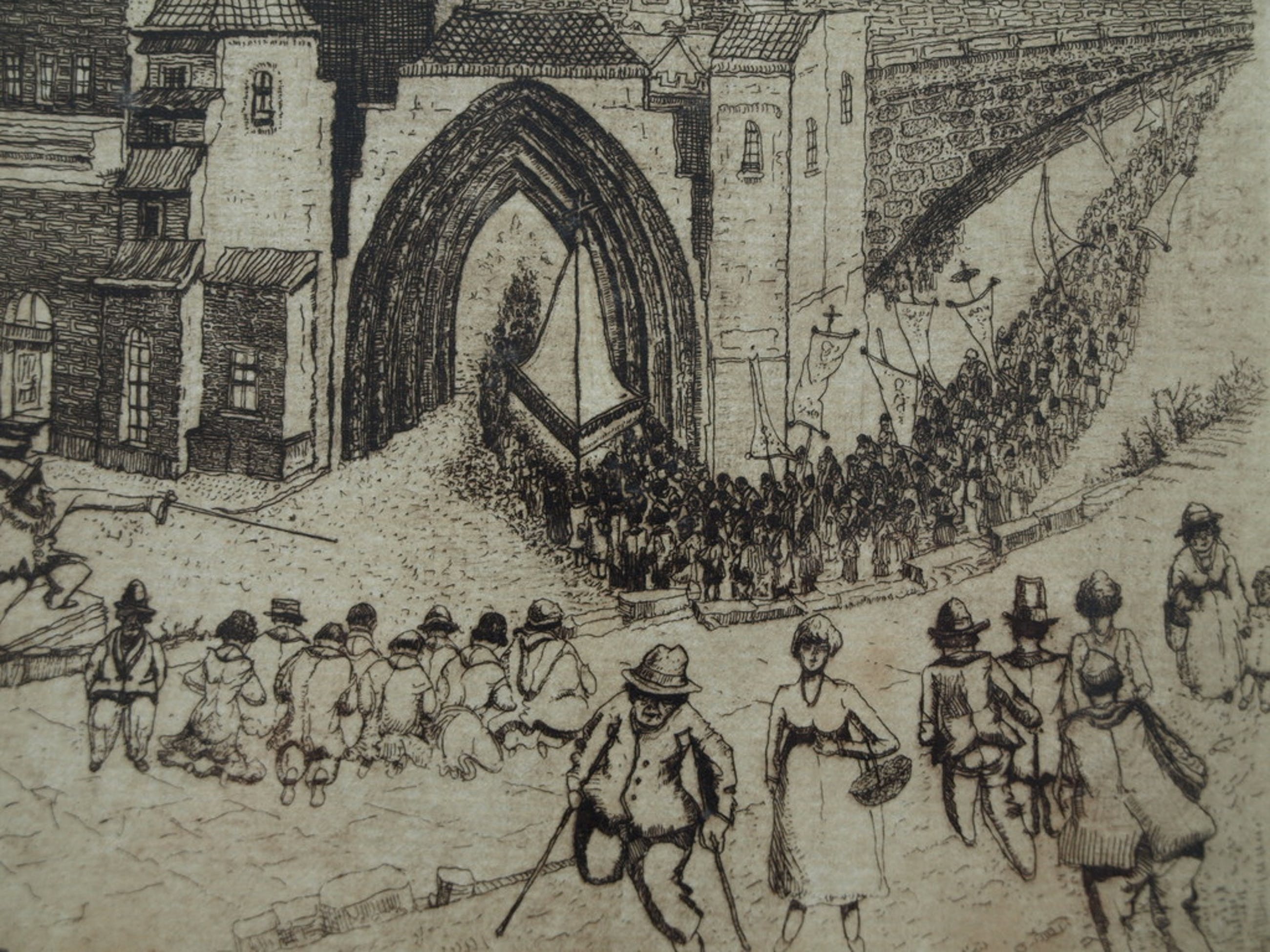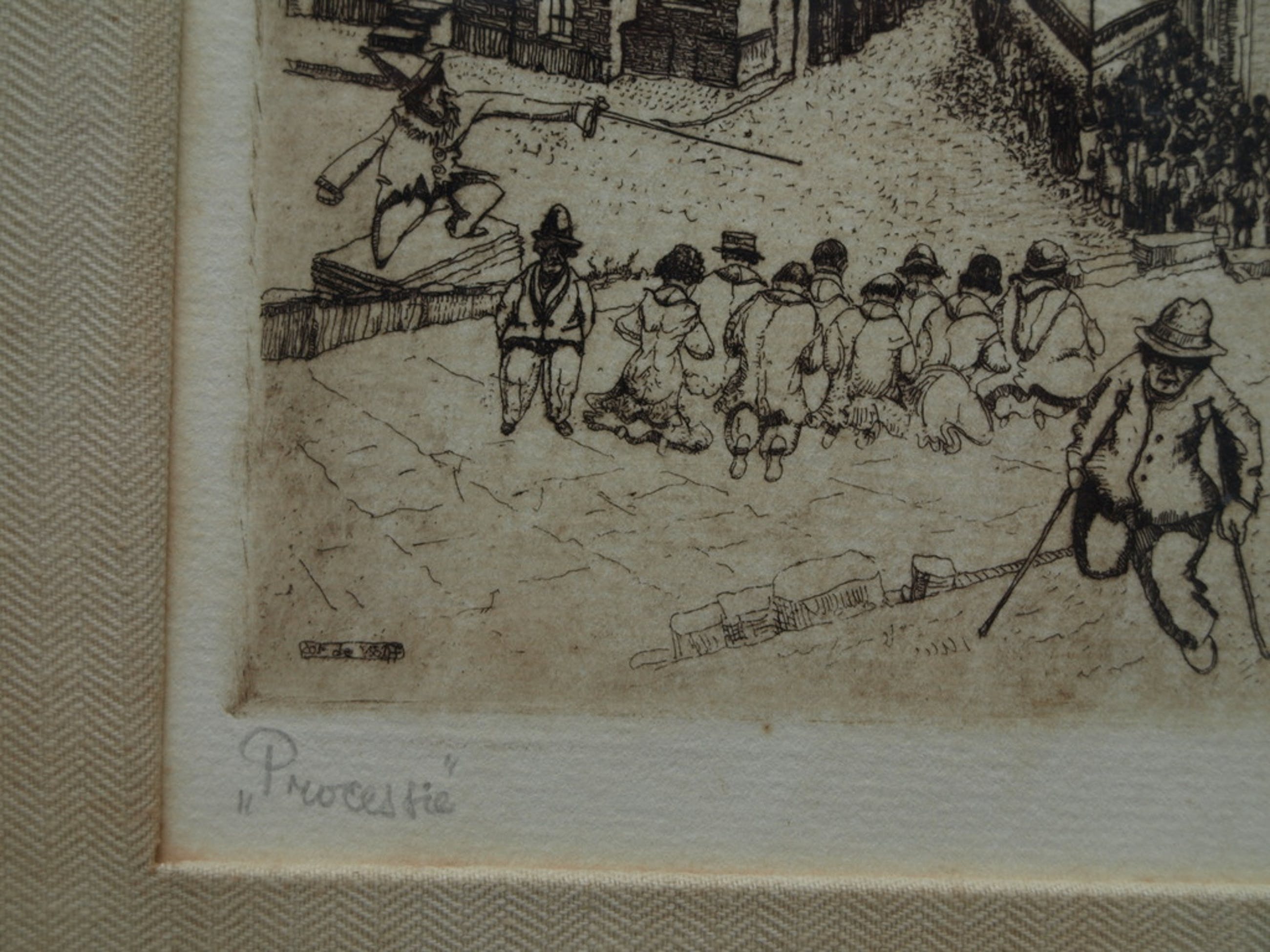 Een ets uit 1941 van de Nederlandse kunstenaar Cor de Wolff met een voorstelling van een processie. Mogelijk betreft het hier de processie van het katholieke St. Jans feest, de St. Jans processie.
