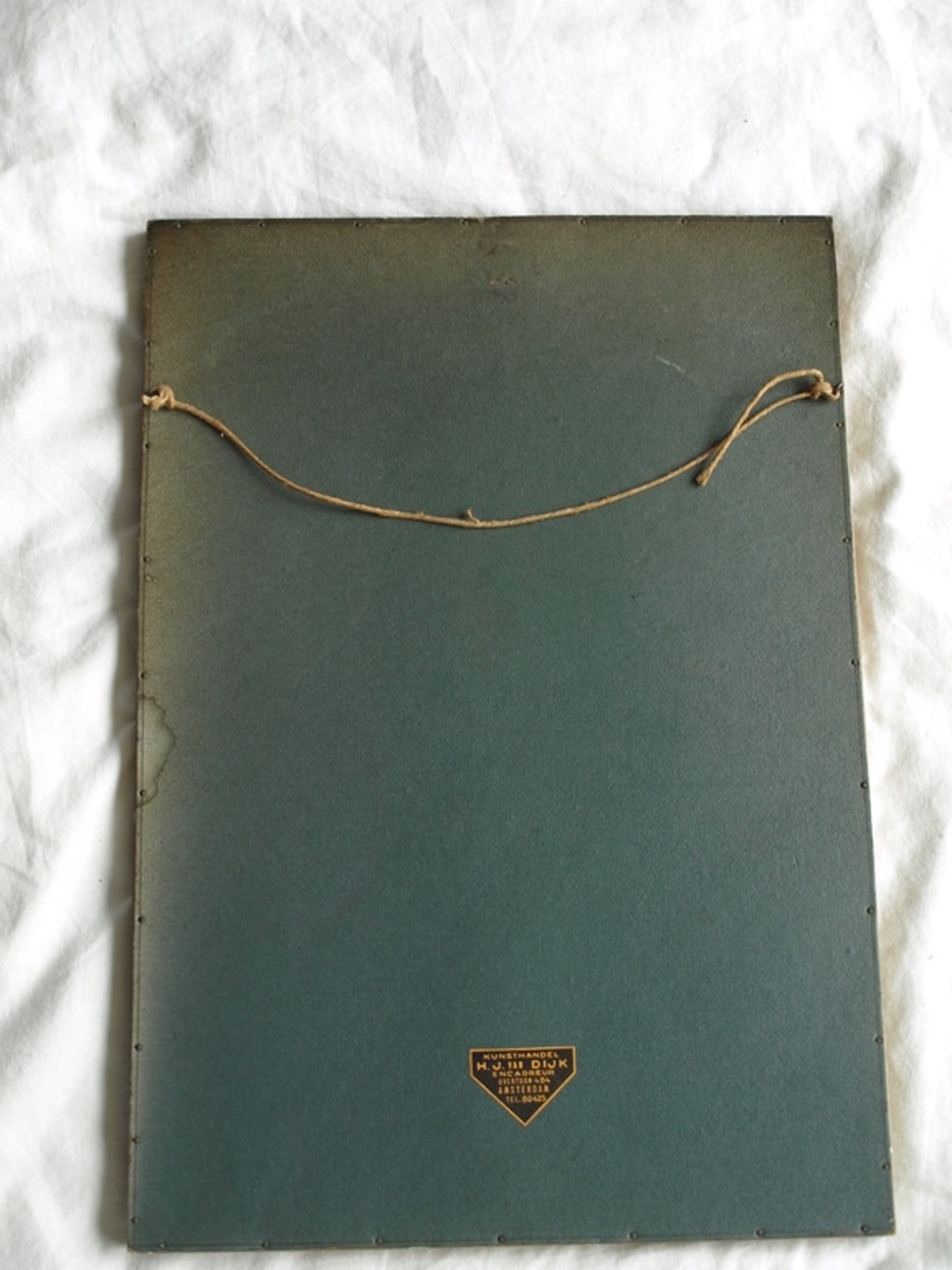 Ingelijst: Ingelijst in een houten lijst met een linnen passe-partout en glasplaat.