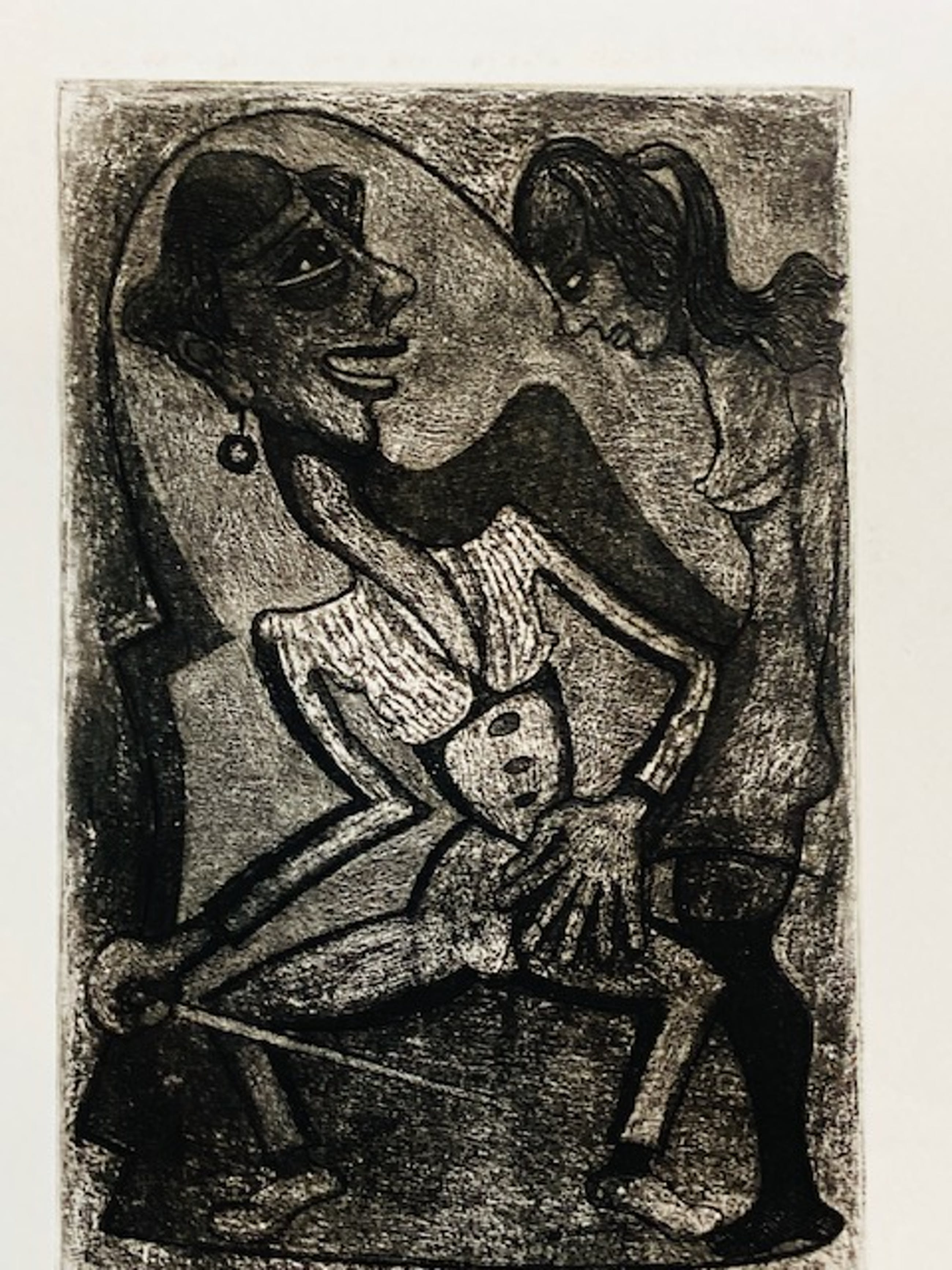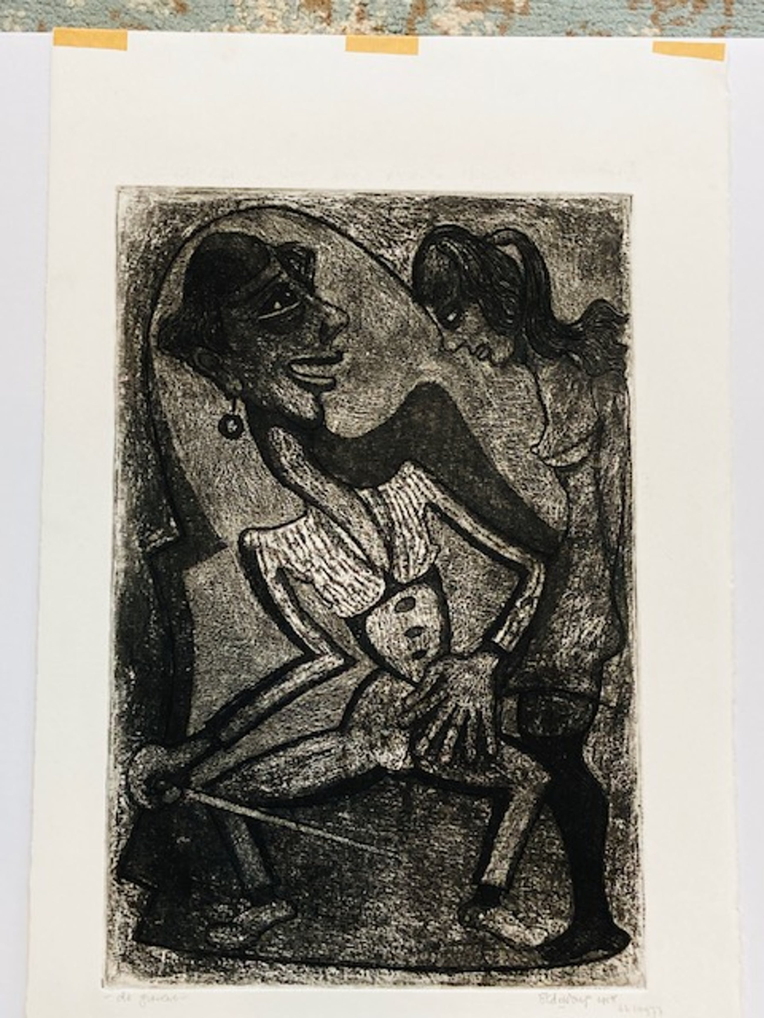 Prachtige late ets van Cor de Wolff. Gedrukt op zijn eigen pers in Amsterdam ( aldus de stempel aan de achterkant). Aan de uiterste bovenrand zijn wat tape resten in beeld van een vorige inlijsting. U kunt het werk vooraf komen beoordelen in de schatkamer van galerie Rotor in Gorcum. In overleg kunt u uw aankopen gratis laten opslaan in onze verwarmde opslagruimte en ze in een later stadium ophalen. Ook kunnen wij uw inlijstingen verzorgen.