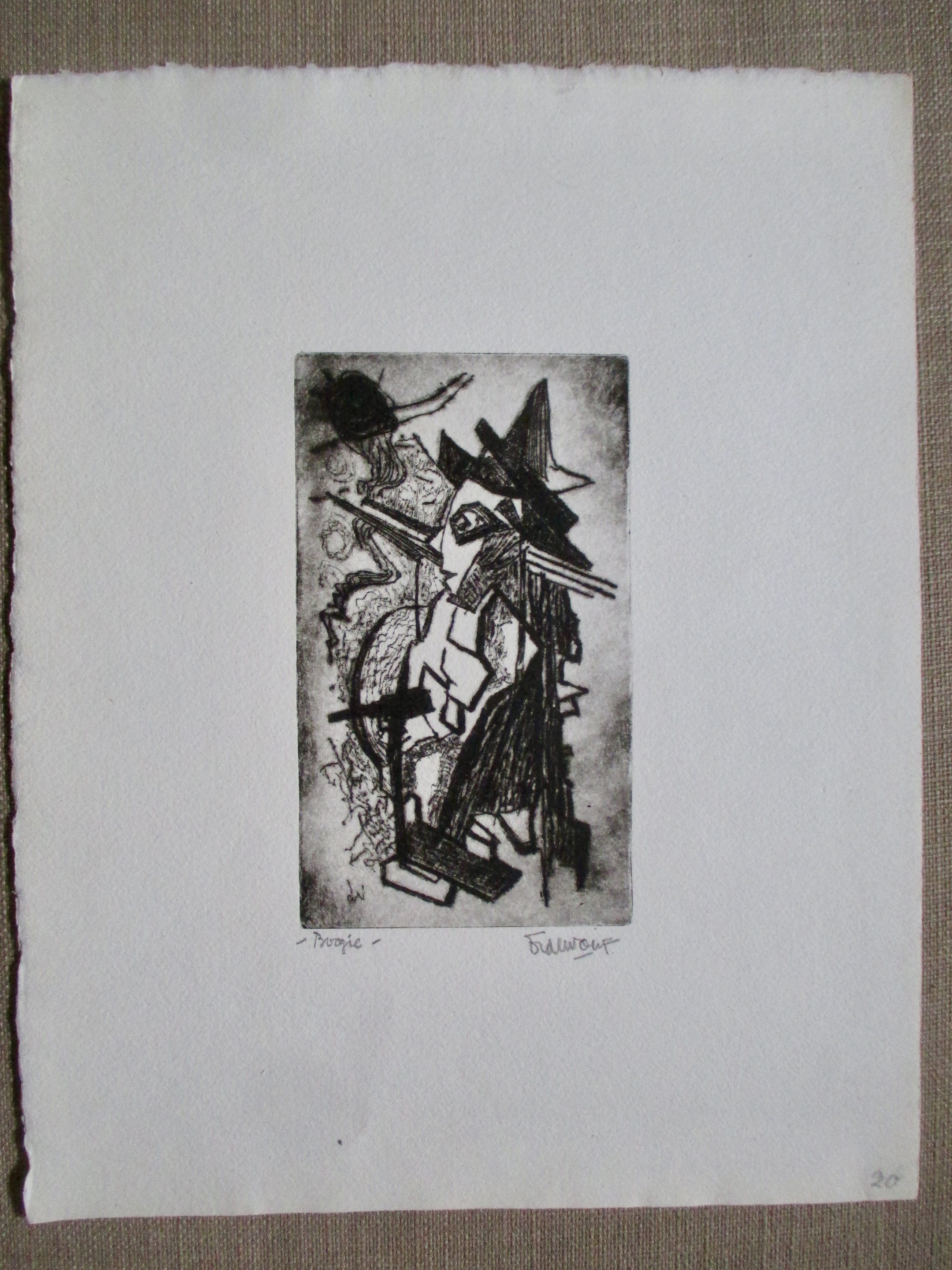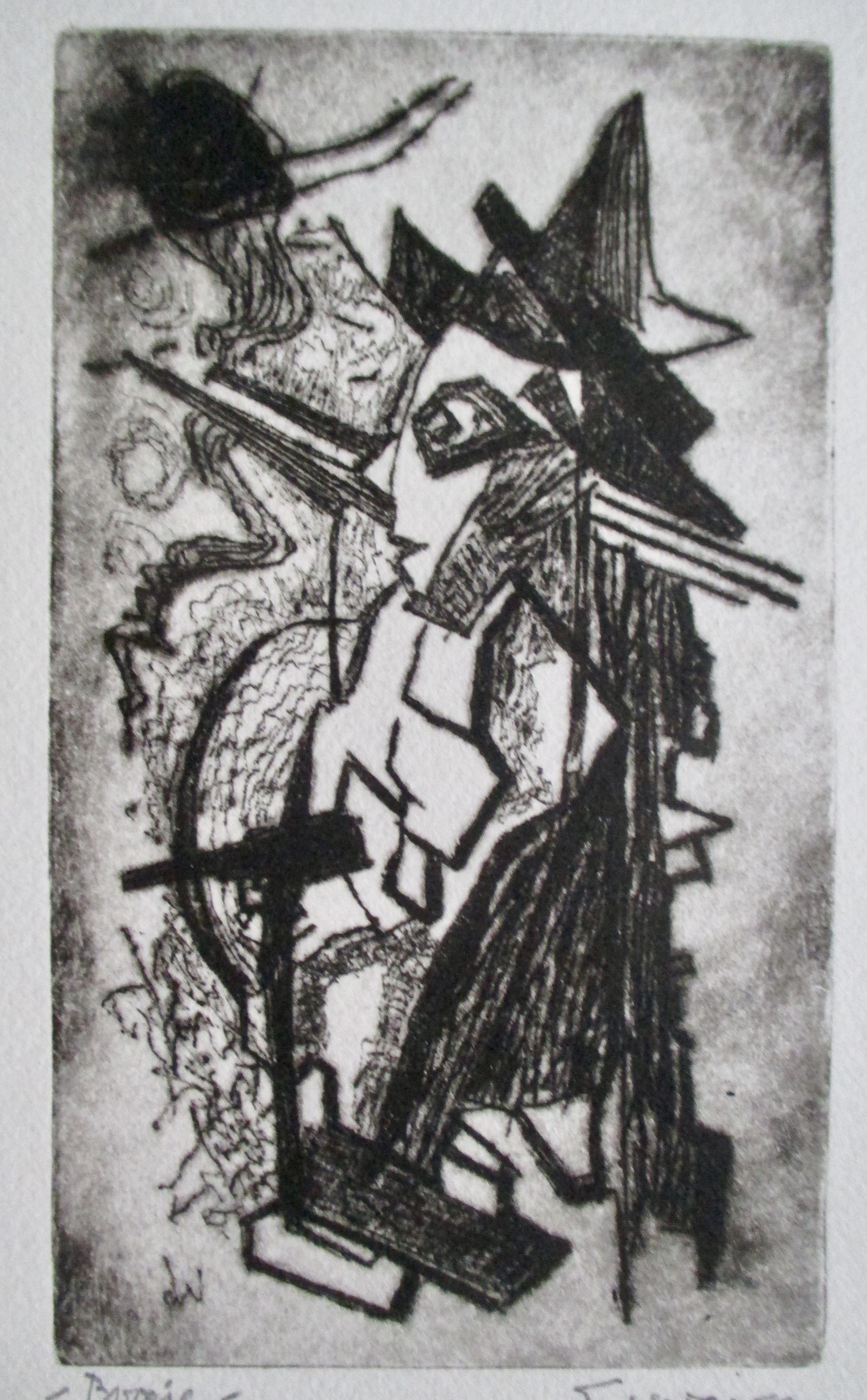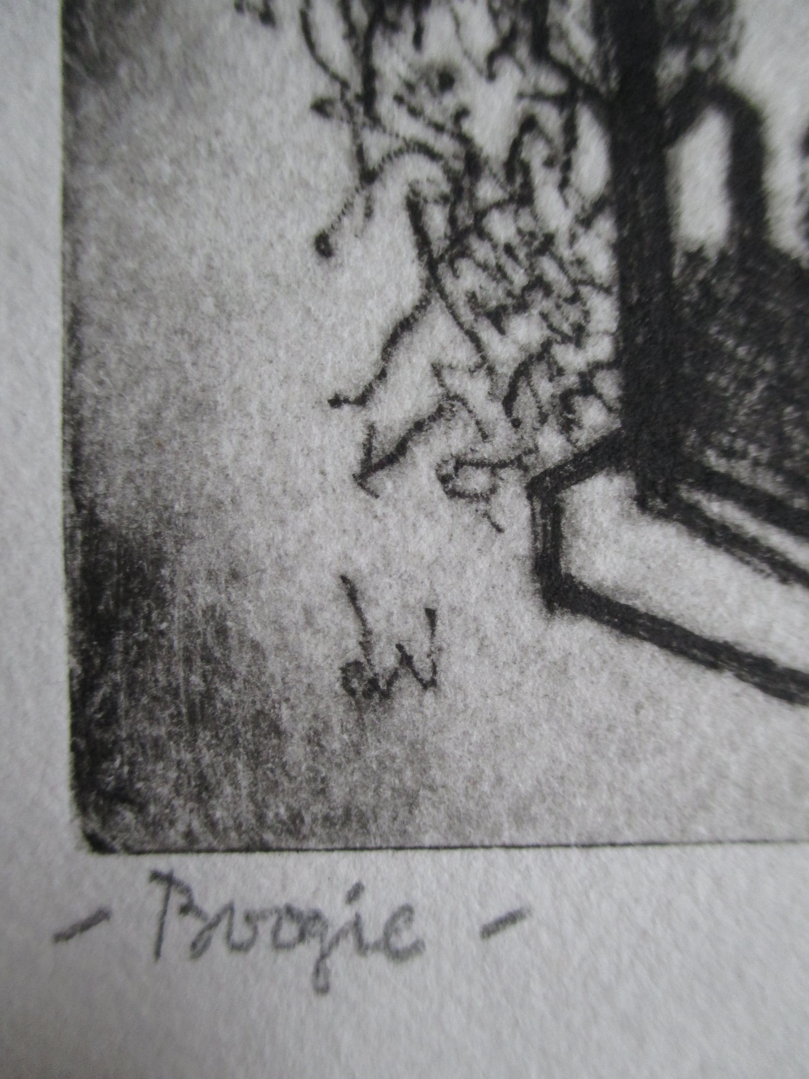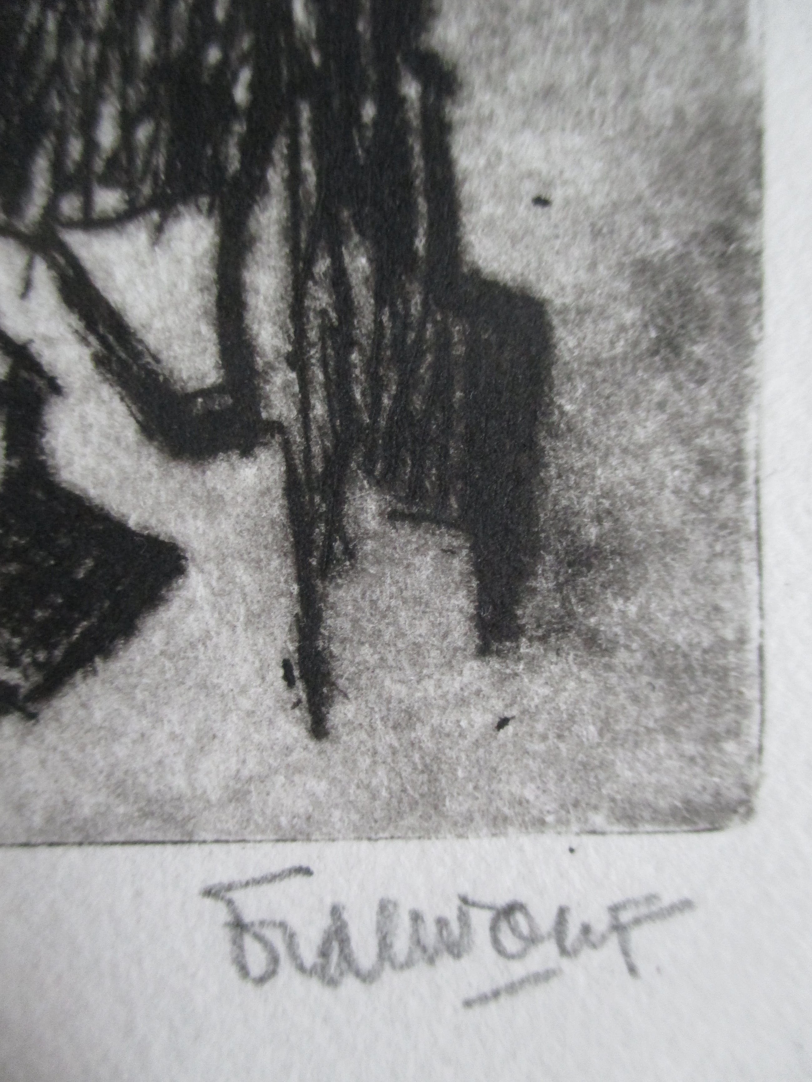 Etsje van Cor de Wolff, gesigneerd en getiteld in potlood. verzending tussen twee plaatjes, 5,10