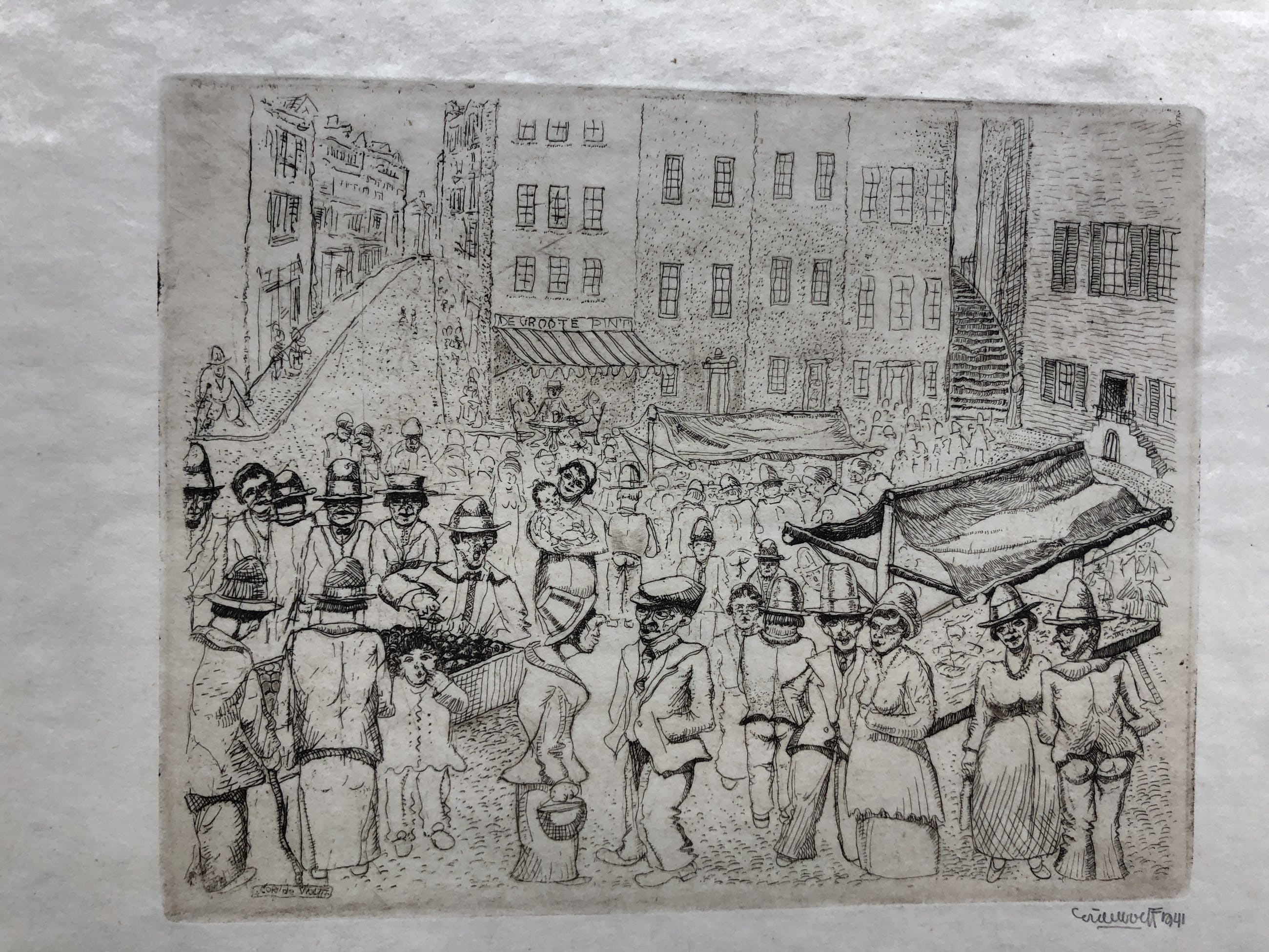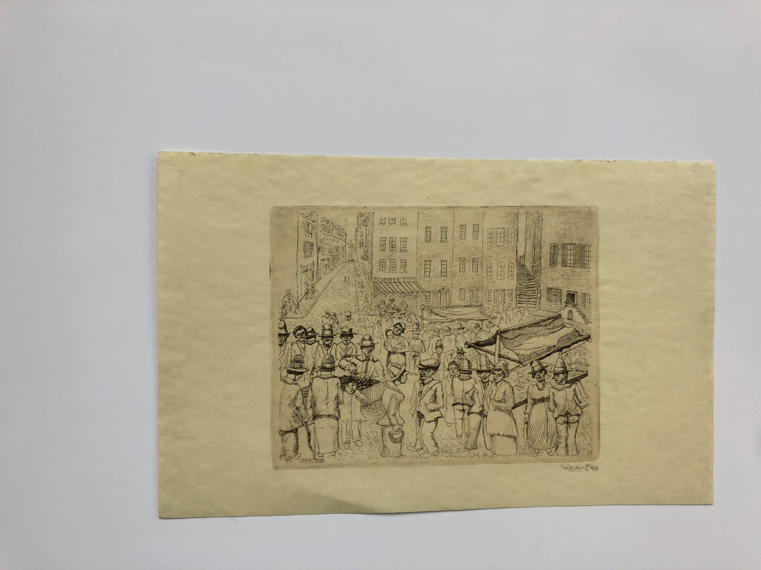 Mooi vroeg werk van Cor de Wolff, gesigneerd. De afbeelding zelf is ca 12 x 15 cm. Het papier is licht vergeeld.U kunt het werk vooraf komenbekijken in de schatkamer van galerie Rotor in Gorinchem.