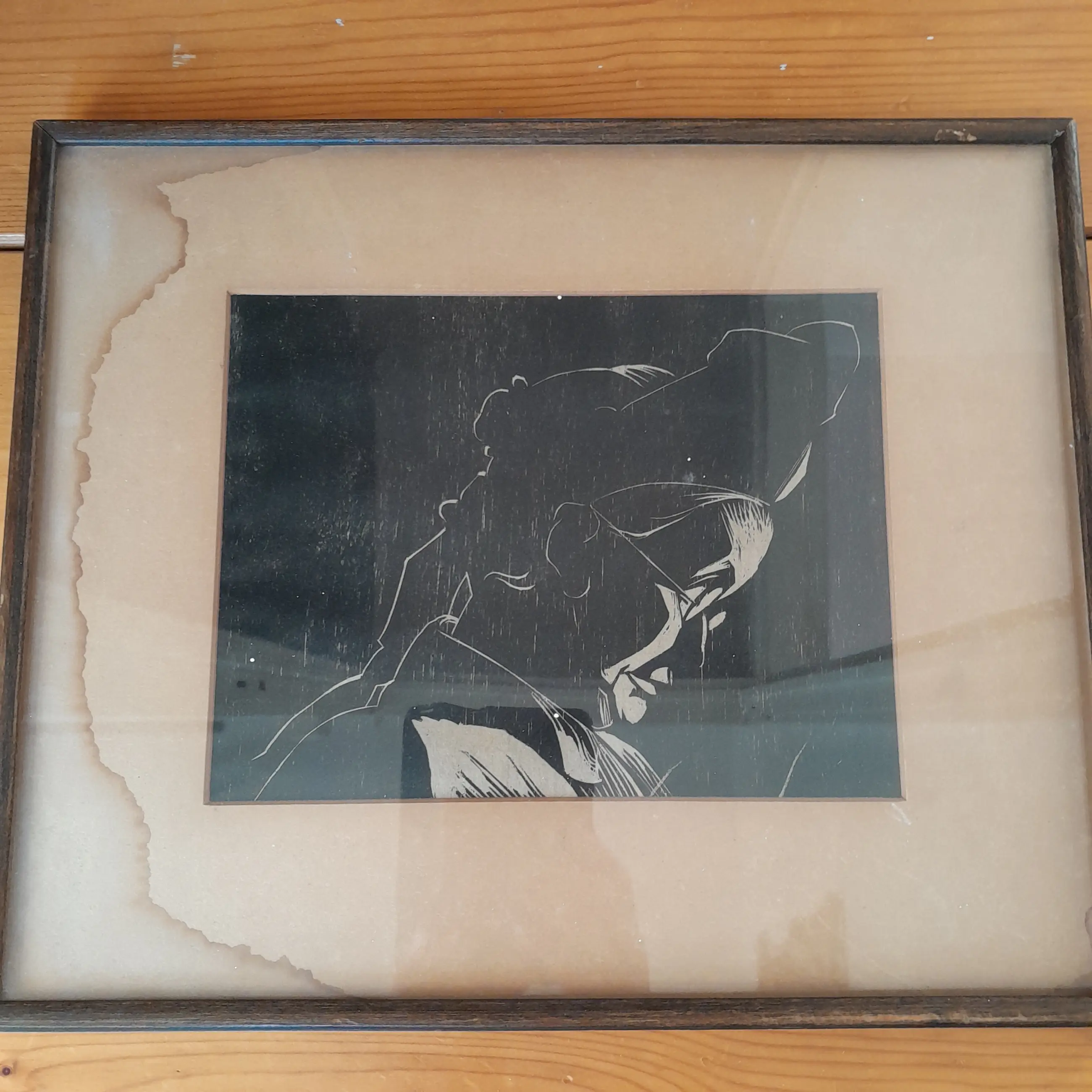 Het passe partout heeft waterschade en de lijst zit los.