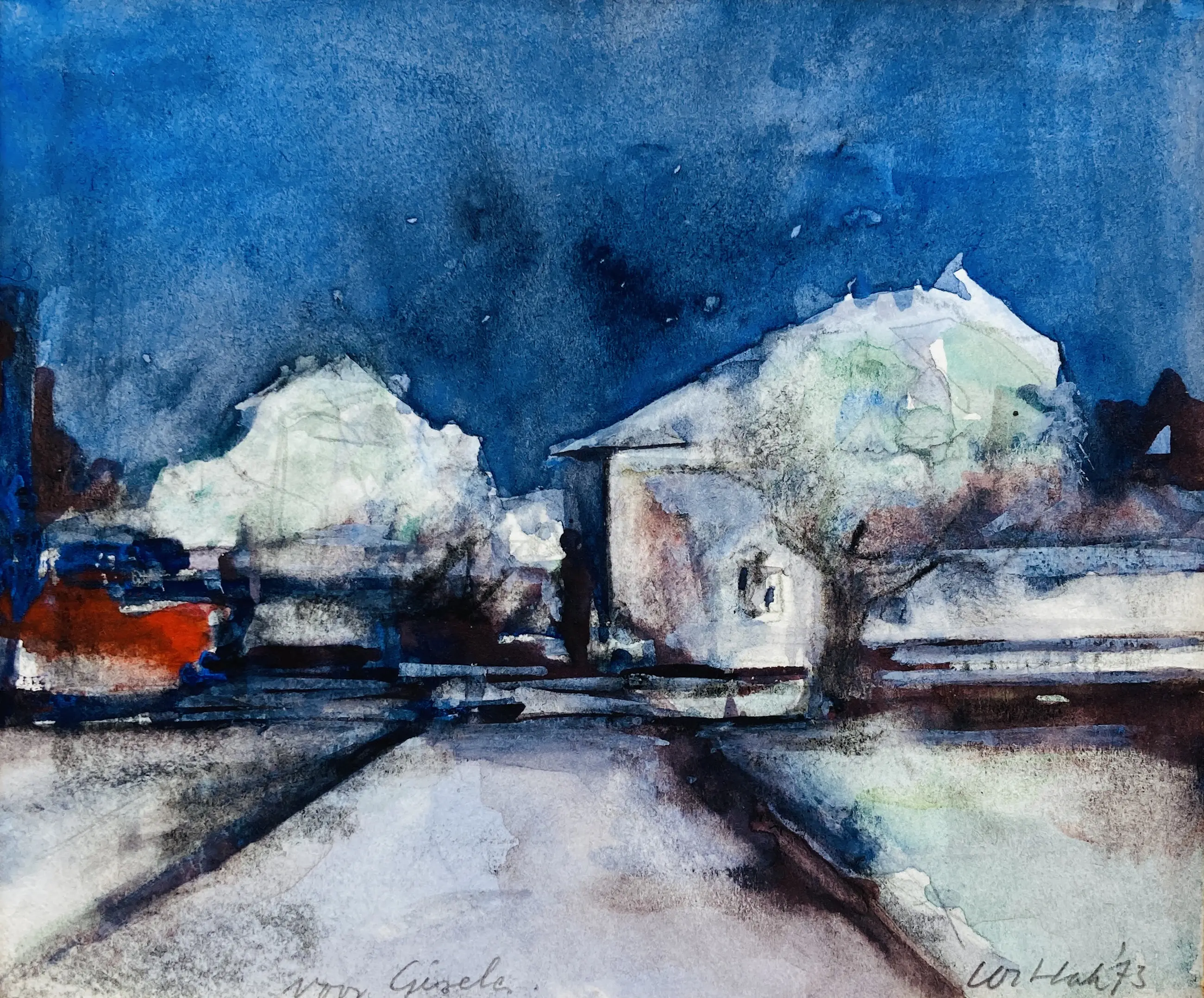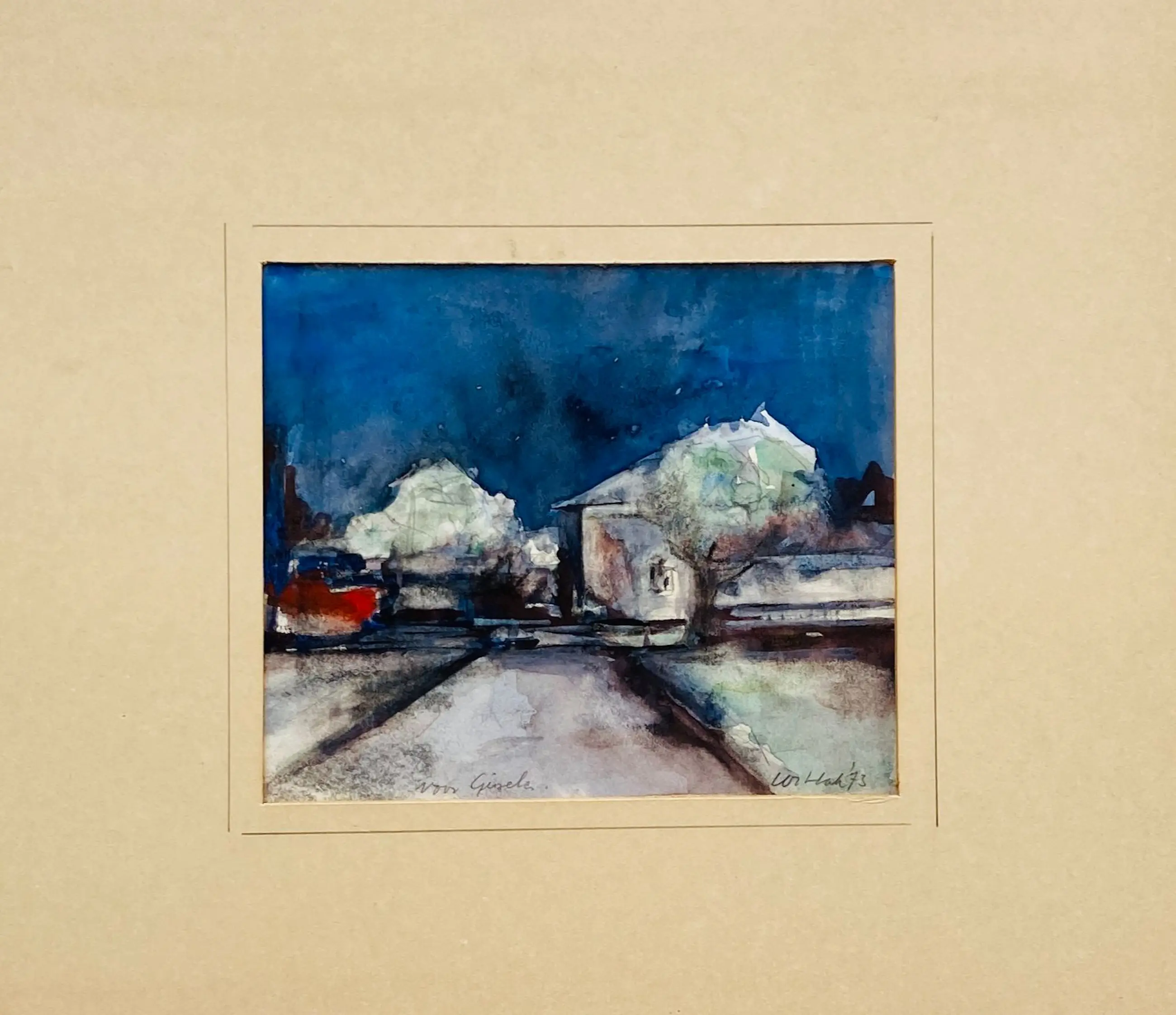 Kleurrijke aquarel van Cor Hak in goede staat.